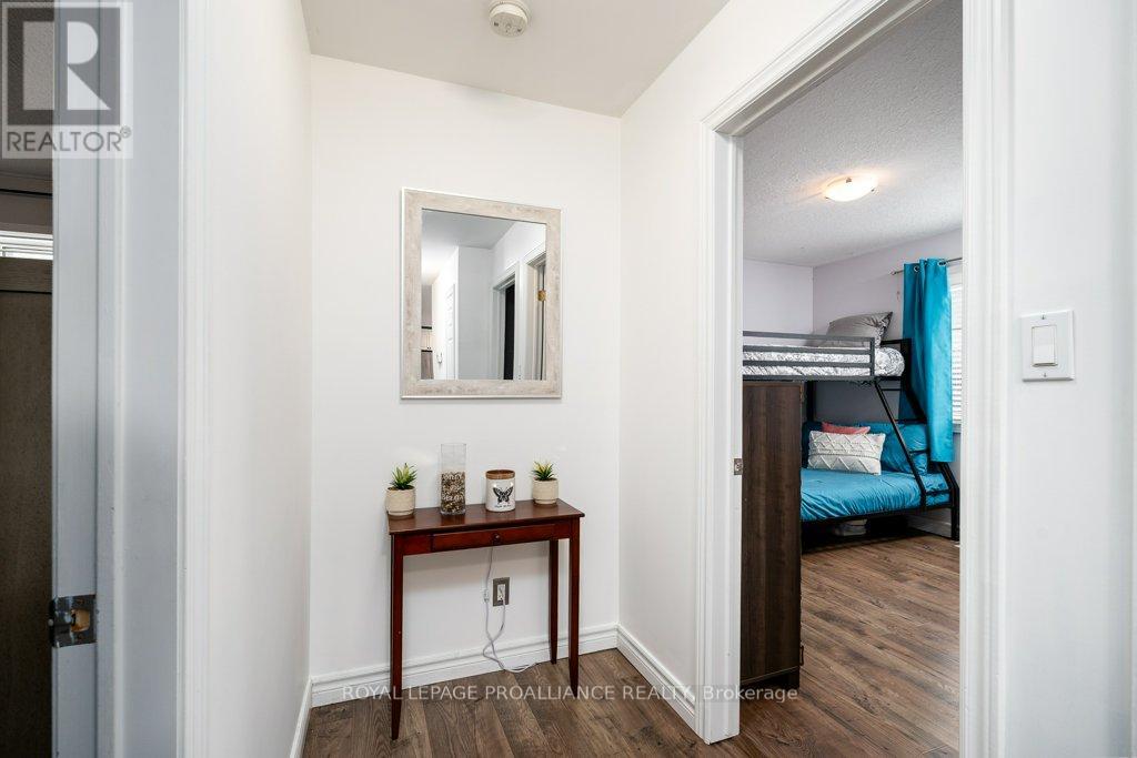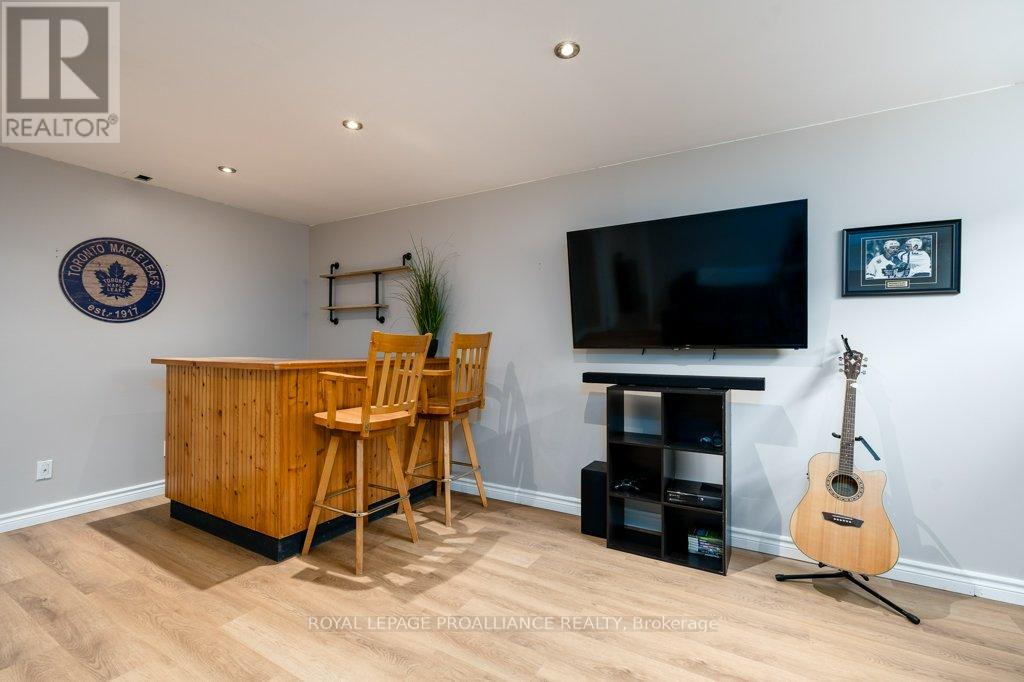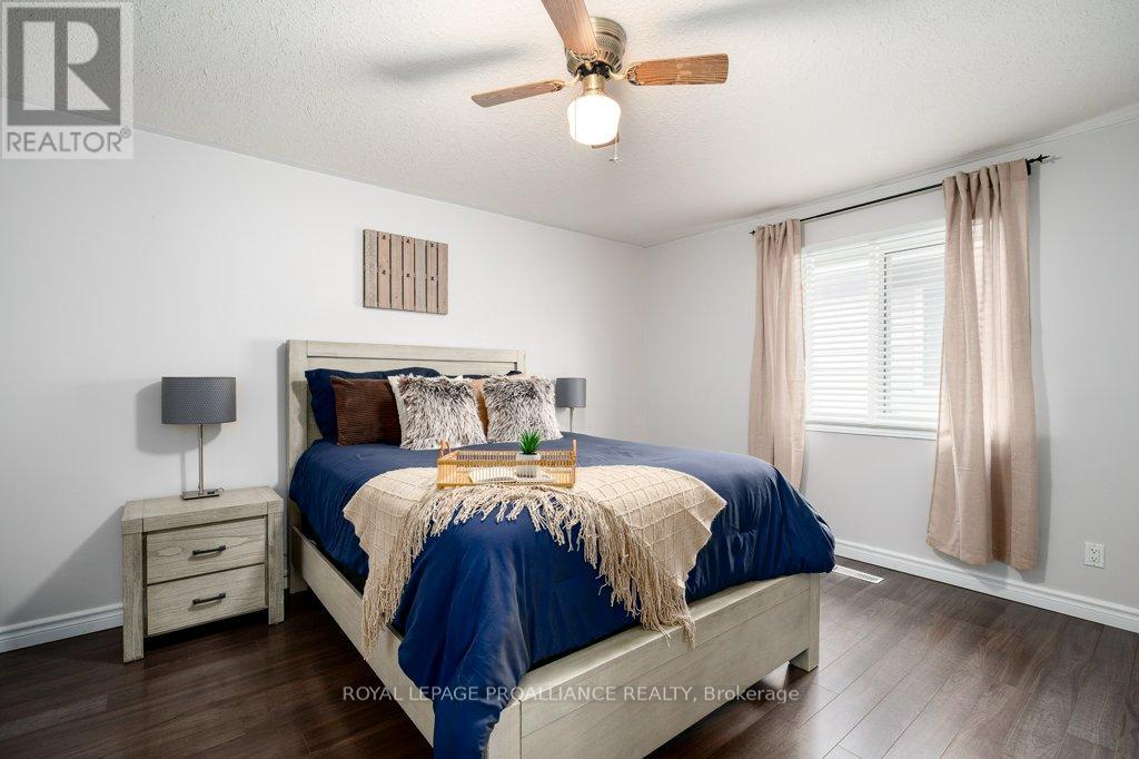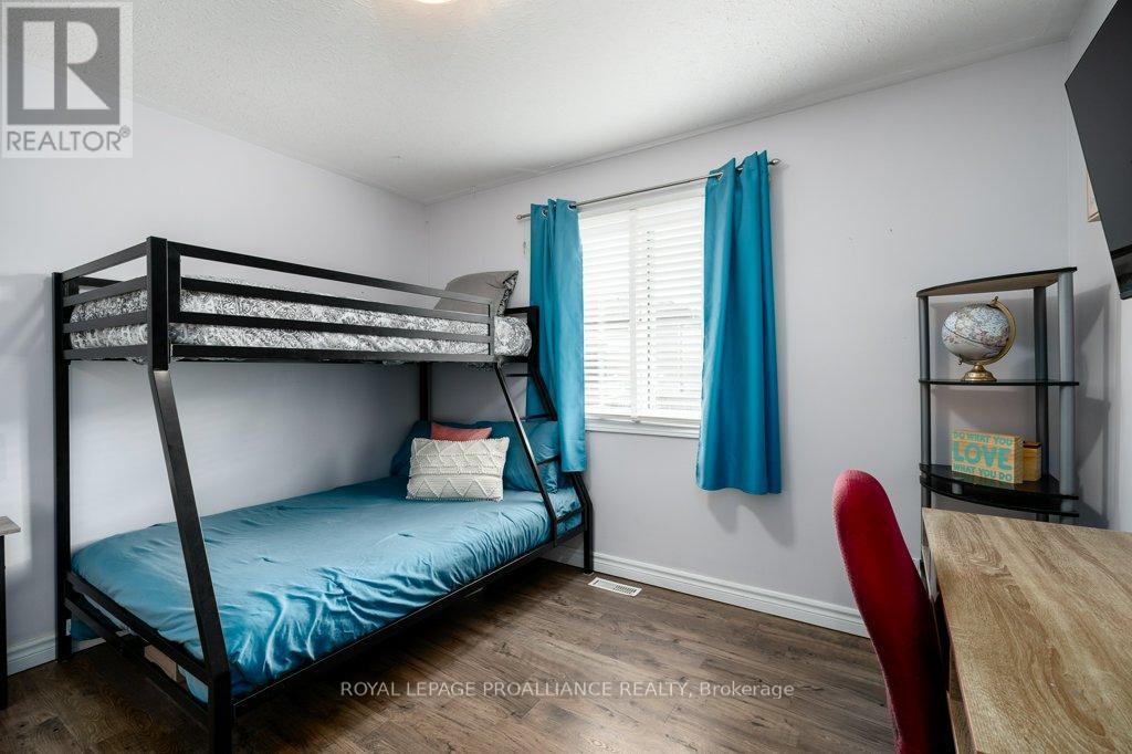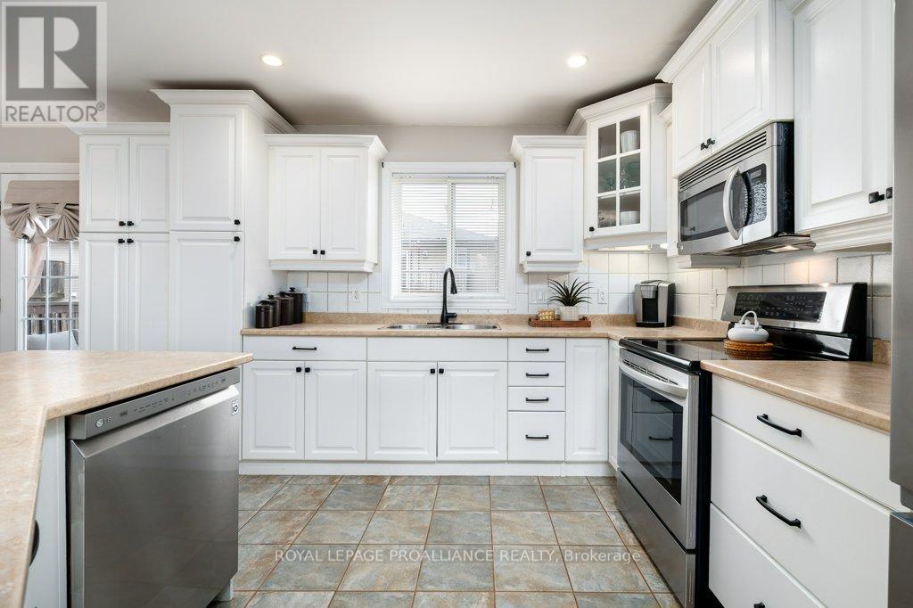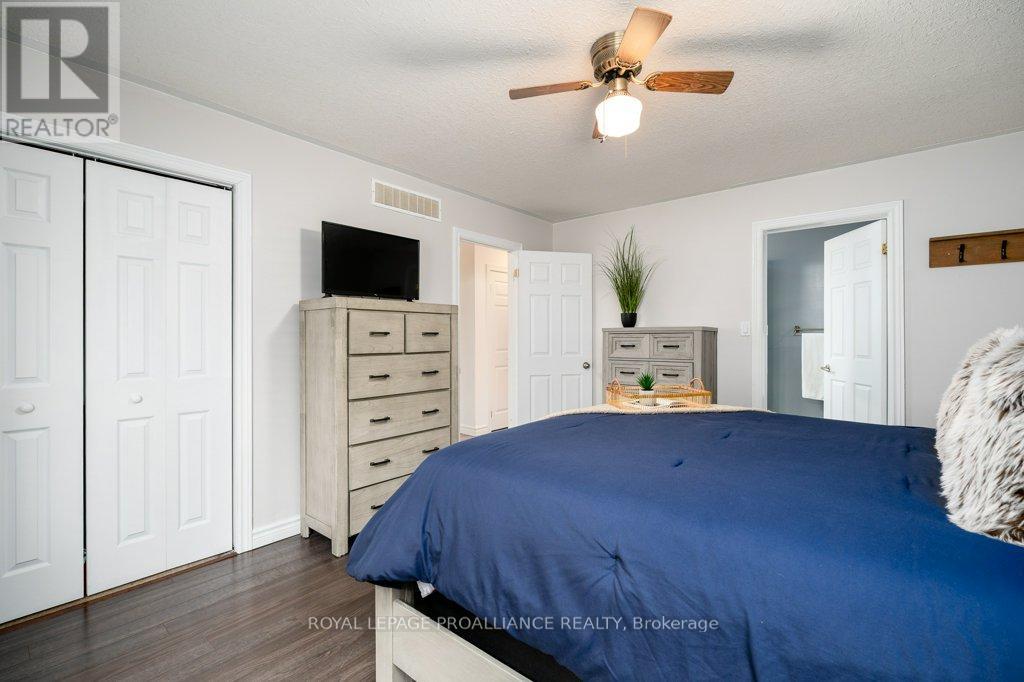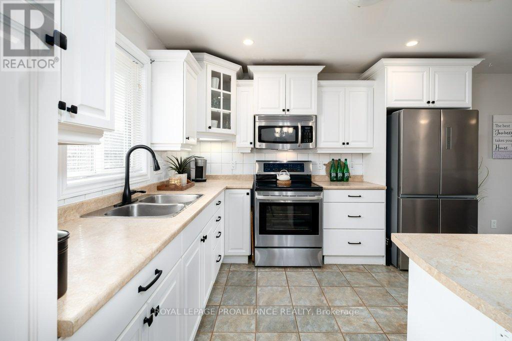 Welcome to this well-maintained and spacious home offering a versatile layout with 3 bedrooms on the main floor and 2 additional bedrooms plus a den on the lower level. The bright, open-concept main floor features a beautifully designed kitchen with crisp white cabinetry, stylish backsplash, under-valance lighting, pot lighting, and a large functional island, seamlessly flowing into the living and dining areas. The dining room provides direct access to a generous deck and fully fenced-in backyard, perfect for outdoor entertaining. The primary bedroom offers convenient cheater access to the main bathroom, and main floor laundry adds to the home's functionality. The main floor is enhanced by stunning high-end laminate flooring throughout, completing this move-in ready home designed for comfortable family living. Downstairs, the fully finished lower level showcases a welcoming rec room with newly installed luxury vinyl plank flooring, along with two additional very large bedrooms (a 2nd cheater ensuite), a full bathroom, and a versatile den ideal for a home office or gym. Shingles: 2022. Fresh paint throughout the majority of the home. Located just steps from a beautiful 1.5-acre park with a play structure and mature trees, this property is within walking distance to the Trent River, trails, a splash pad, parks, and downtown Frankford amenities. Conveniently situated under 10 mins to Highway 401 and only 15 mins to CFB Trenton and Belleville's Quinte Mall. Set in a sought-after community of families, professionals, and retirees, this turn-key home offers the perfect blend of comfort, style, and location. (id:64974)