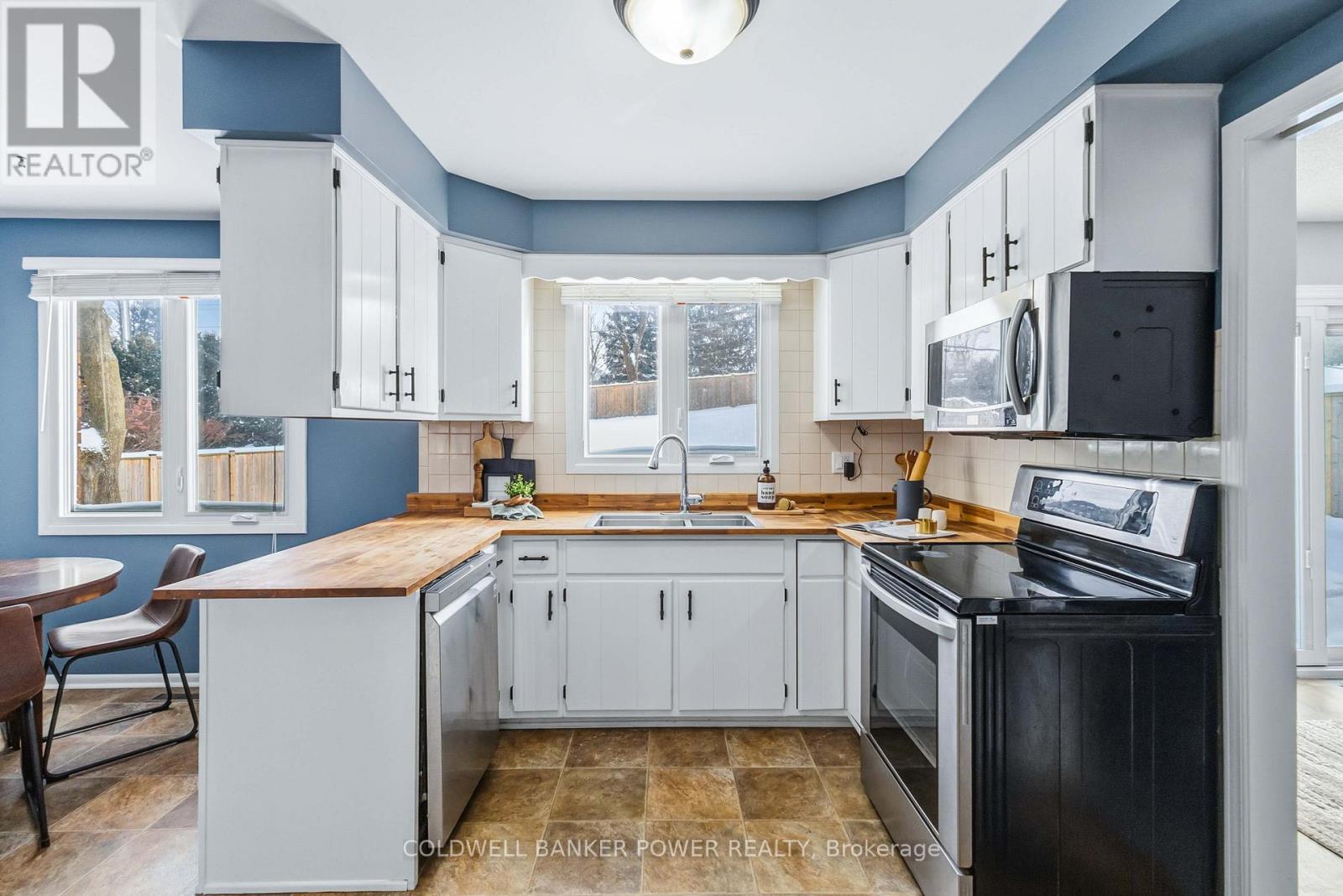Much sought after MATURE BYRON NEIGHBOURHOOD. This 4+1 bedroom is situated on a fully fenced 150 foot lot. Spacious oversized floor plan with separate living room, formal dining room, main floor family room with wood burning fireplace, large eat-in kitchen, and main floor laundry as well as open concept finished lower level. Huge primary bedroom with spacious closet space and full ensuite bath. Professionally painted throughout, updates to bathrooms, massive 64 foot deck in rear yard, new fencing in 2021, all windows and doors have been replaced at various times except for manual garage door, Newer luxury vinyl flooring, newer carpeting. Most appliances newer and include Fridge, stove, dishwasher, washer, dryer, and microwave. Rare opportunity.... and just minutes to excellent schools, sports complex, shopping and walking trails. (id:64974)