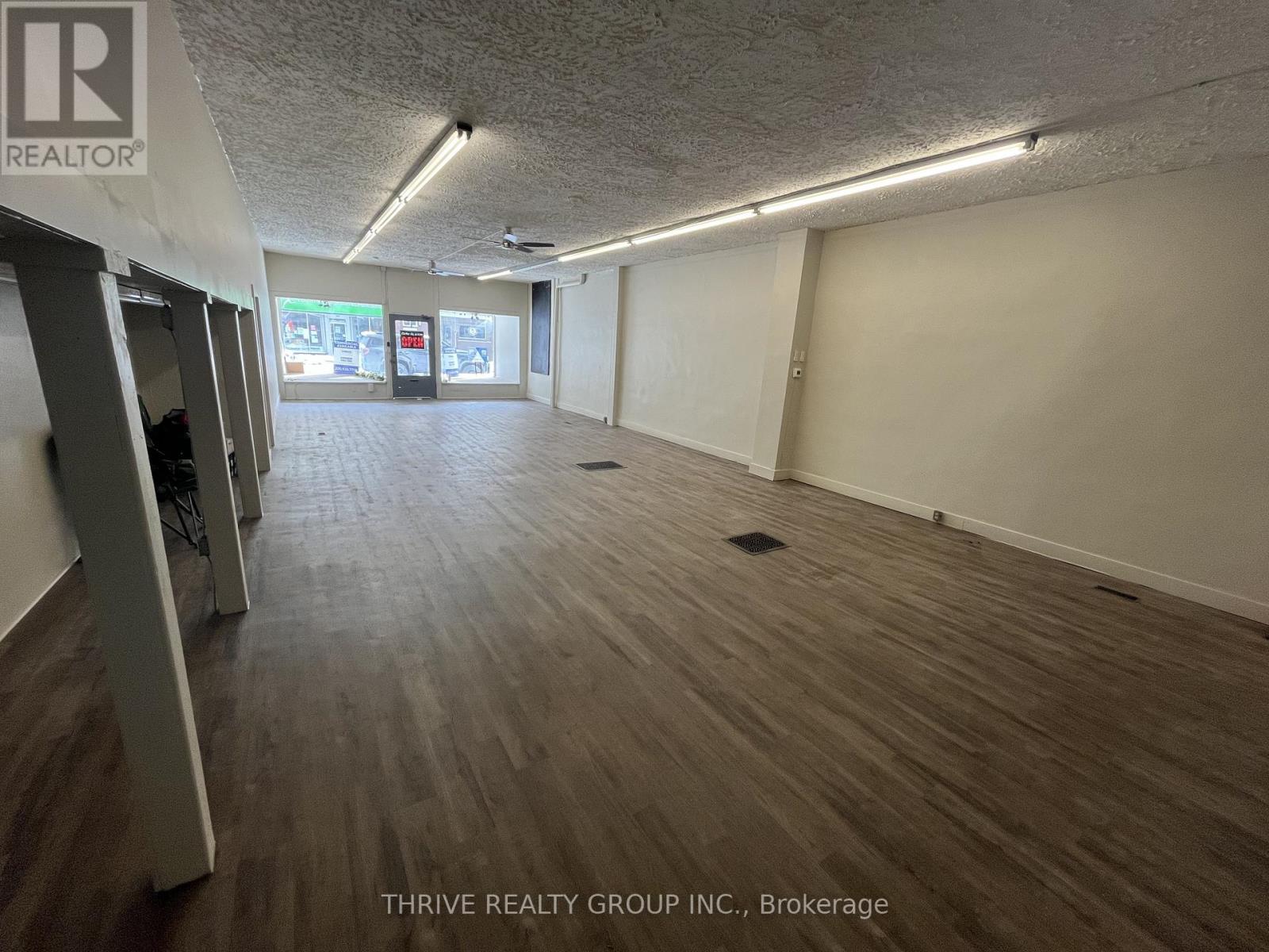 1,700 Sq Ft of newly renovated commercial retail space in the heart of downtown Strathroy. The unit includes a bright, large, and renovated open concept main room, a beautifully renovated office/treatment area located at the rear and a large basement for excess storage. This unit includes both downtown street parking at the front and a parking lot for customers and staff located at the rear. C1 zoning permits a wide range of uses. The space is being offered at $2,400/month + HST and utilities. (id:64974)