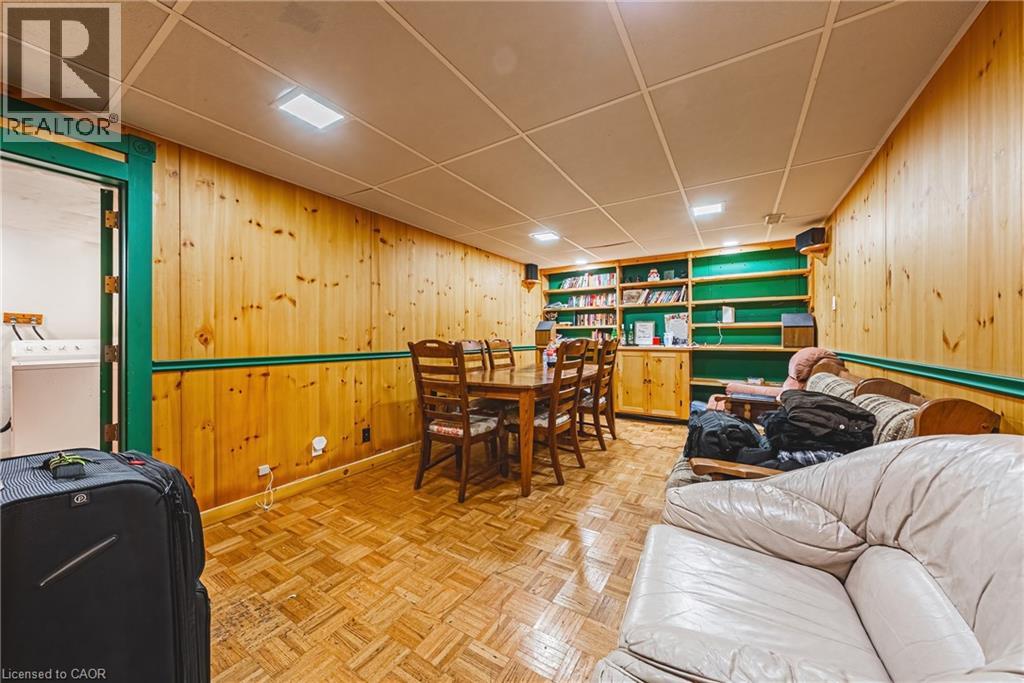 Located on the Hamilton Mountain, this detached two-storey home sits on a generous corner lot in a well-established neighbourhood close to schools, parks, shopping, transit, and highway access. The property features three bedrooms and two bathrooms, a functional main floor layout with living, dining, and kitchen spaces, and a fully finished basement offering additional living space. A detached garage, double-wide private driveway, and parking for up to five vehicles add everyday convenience. (id:64974)