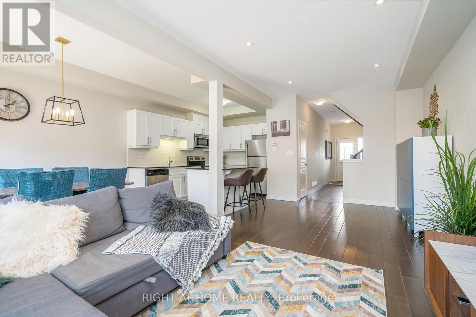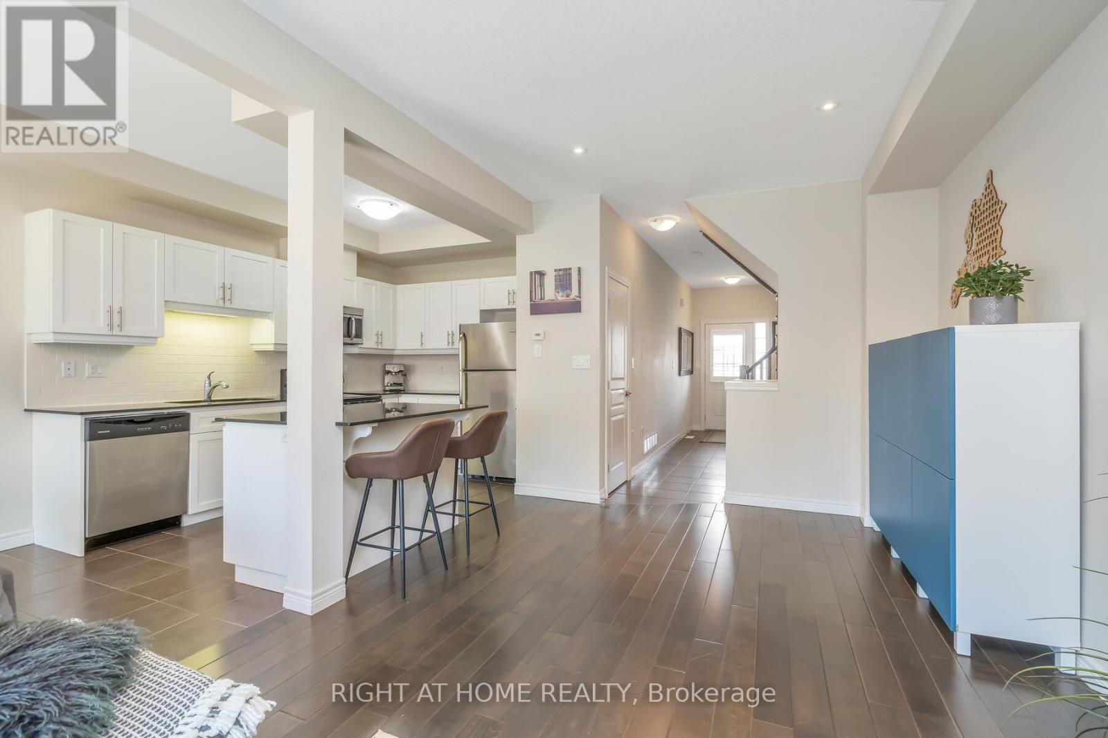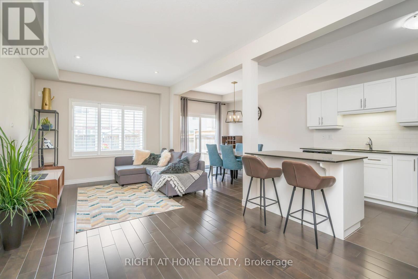Arguably the best deal in Binbrook! Fully renovated freehold property on a quiet street. This 3 bed townhome offers an open concept main floor with 9" ceilings, California shutters, pot lights. Main floor featuring ceramic tile & rich hardwood floors through the living room & eat-in kitchen. Modern white kitchen cabinets, 4 stainless steel appliances & granite counters. Large kitchen island includes a breakfast bar overlooking the living room & loads of storage. The upper level offers new laminate flooring throughout with a spacious master bedroom with walk-in closet, a 4-pc ensuite bath with separate shower. Two other good size bedrooms. Another 4-pc bath & laundry. The untouched basement is ready to be finished and includes a rough-in for a 3-pc bath. Fully fenced backyard is ready for your personalized landscaping. The growing community of Binbrook offers a relaxed lifestyle with easy access to parks, conservation & recreational facilities, as well as providing all the conveniences & amenities such as grocery, restaurants & more. Note some photos are computer-modified. No Road Fees. (id:64974)