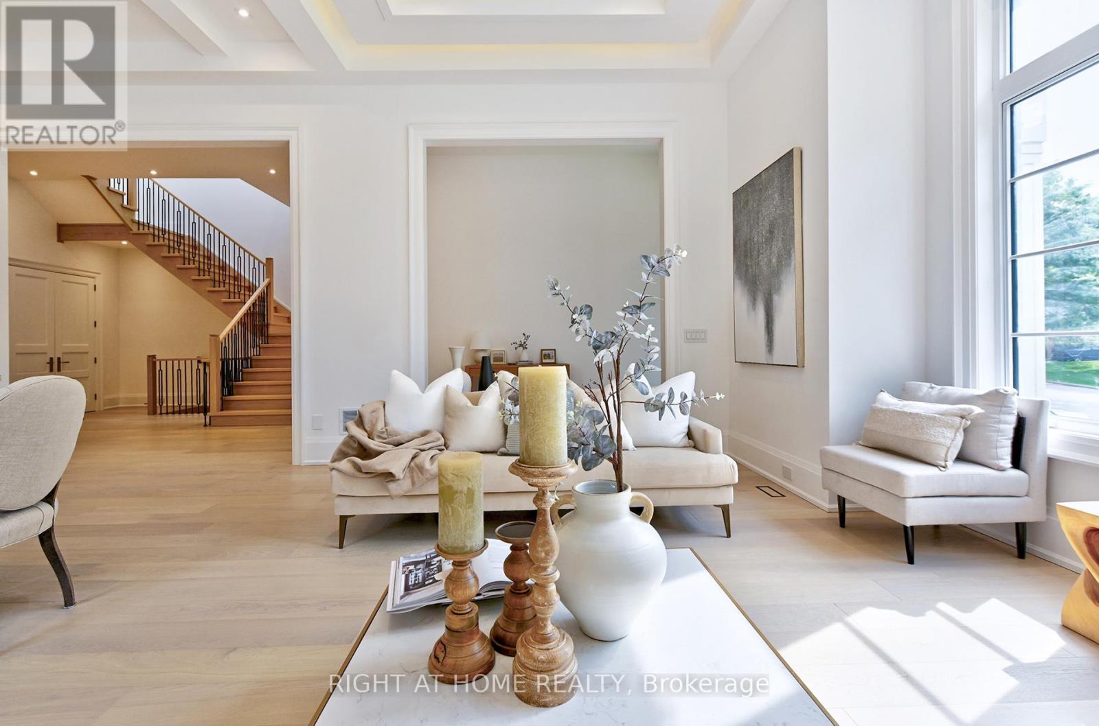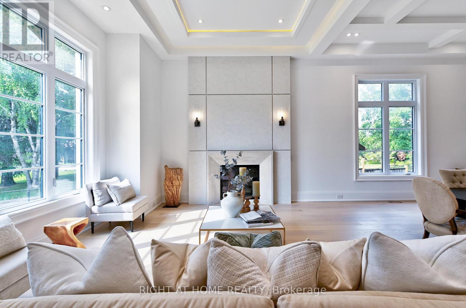 Brand new, never lived in luxury family home in a desirable neighbourhood! Rare opportunity to own a 5,381 sq ft luxury home (+2,086 sq ft finished basement), 7,467 total living space, on a 13,928 sq. ft. lot with mature trees in one of the city's most prestigious, family-oriented neighbourhoods. Highly sought-after DENLOW PUBLIC SCHOOL, St. Andrews MS, Windfields MS & York Mills CI catchment. Ideal for families with young children. Designed with exceptional attention to detail, combines comfort and elegance with modern sophistication, offering expansive living spaces and soaring ceilings. Features a massive gourmet chef's kitchen for family & entertaining, featuring double islands, premium integrated appliances, and elegant custom cabinets, an adjoining prep kitchen, and a servery. A large main-floor office with a separate entrance (ideal for professionals or in-laws), with a versatile den that can serve as a sixth bedroom & a full bath. 5 spacious bedrooms with full baths, a main-floor office with a private entrance, and a large den (6th bedroom option) with a full bath. An oversized, serene primary suite with a boutique-style walk-in closet and a spa-like en-suite. Heated floors throughout the basement. Tandem 3-car garage plus parking for six more on the driveway (total 9). The expansive backyard offers incredible potential to add a swimming pool, a private tennis court, or a fully detached accessory dwelling unit - subject to city approvals. Mature trees provide privacy. (id:64974)