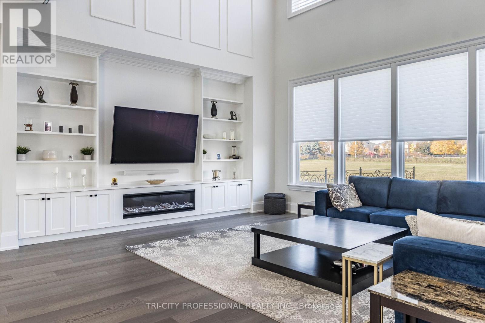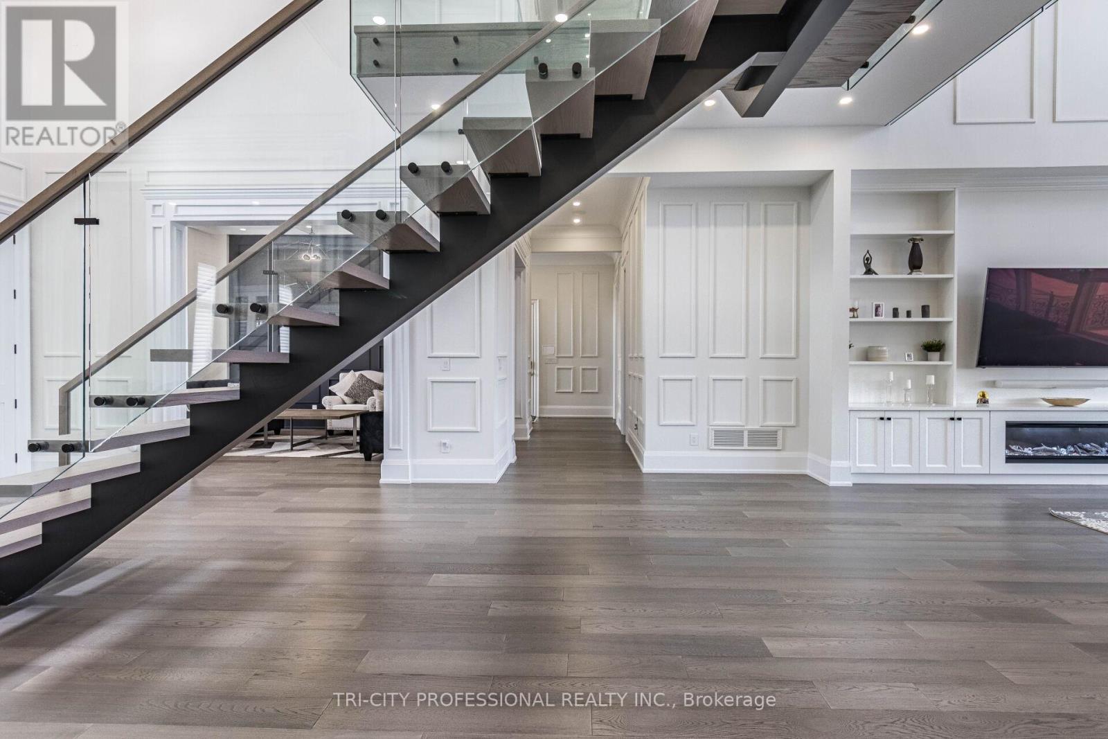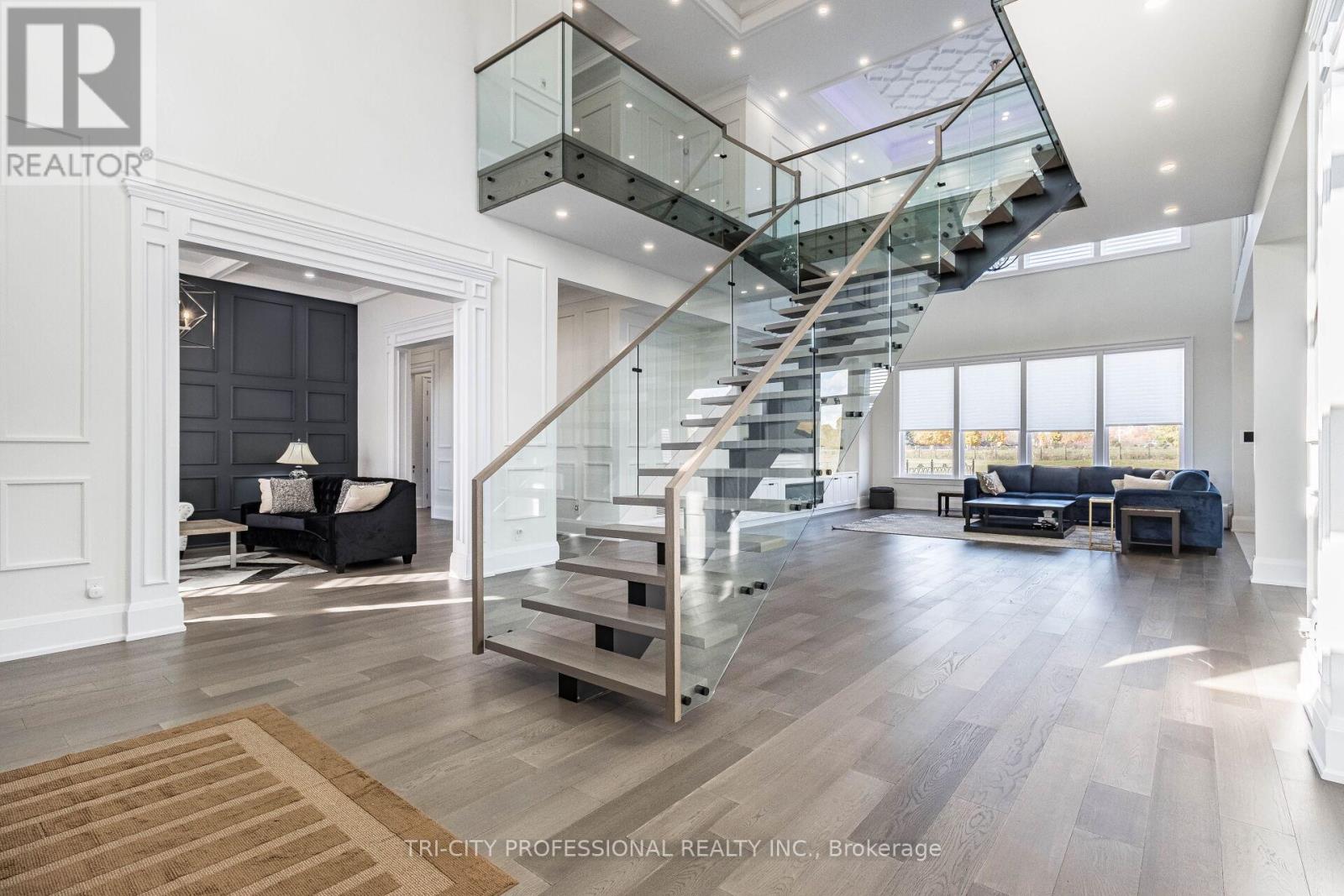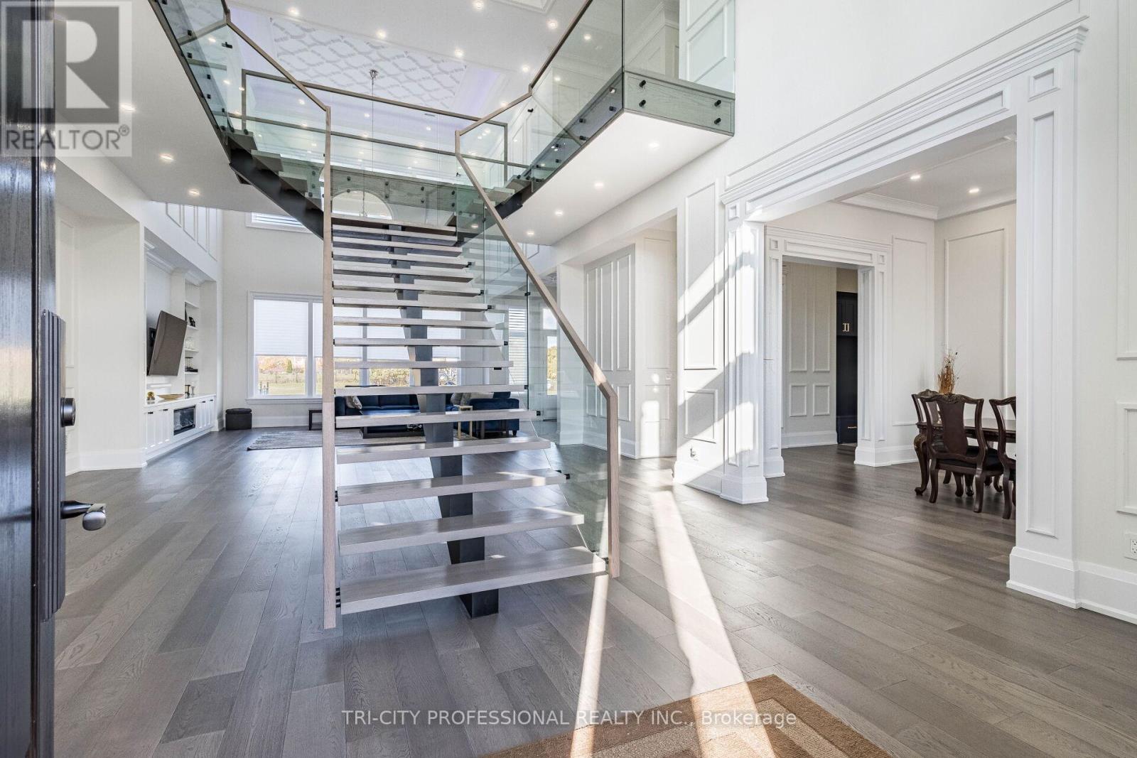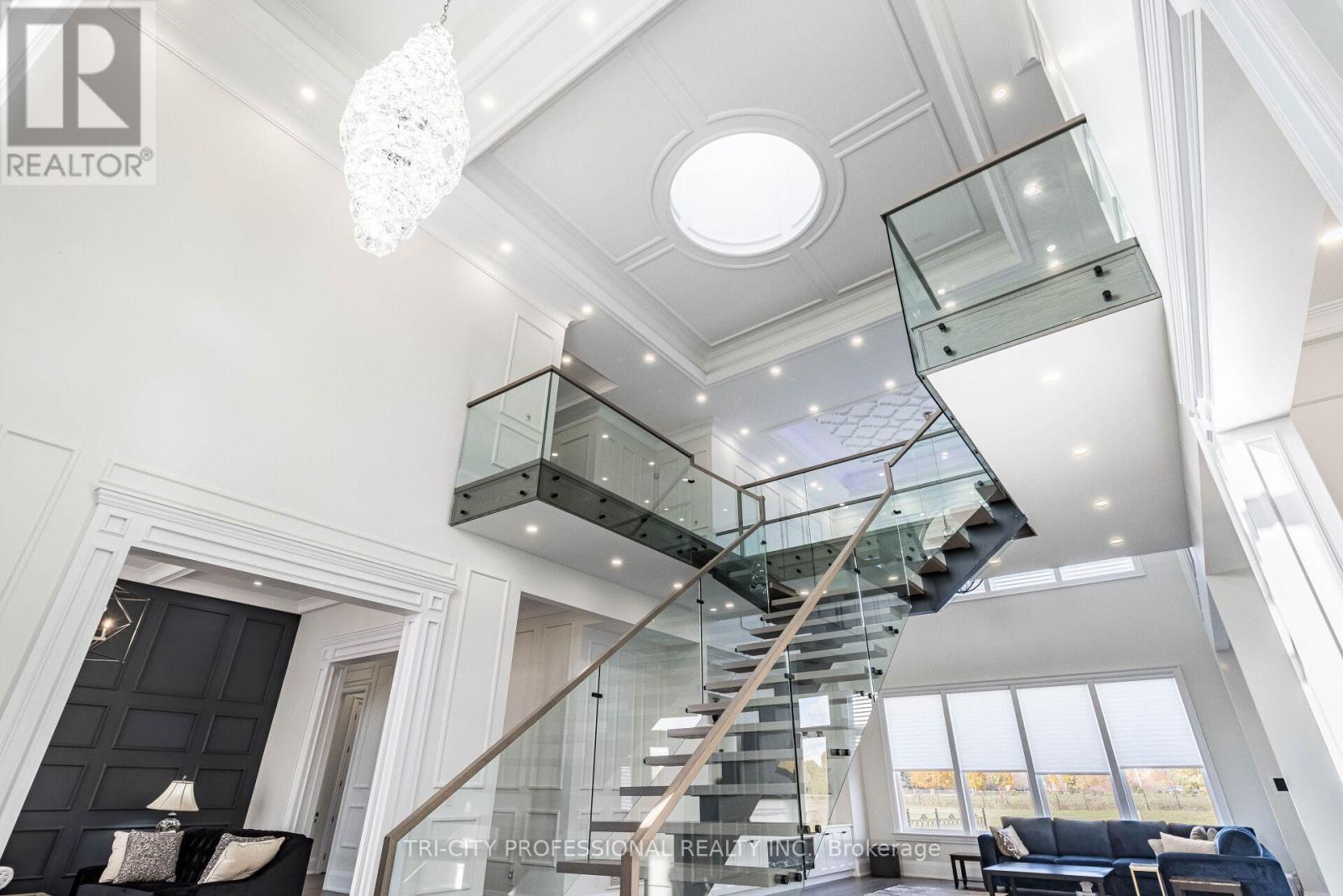ABSOLUTELEY STUNNING CUSTOM BUILT 9200 SQ.FT. AS PER DRAWINGS. BUILT ON 2.07 ACRE ESTATE LOT,EXTERIOR STONE AND PRECAST STUCCO. CITY WATER AND SEWER. SPICE KITCHEN WITH B/I STOVE,MICROWAVE, GAS COOKTOP & STAINLESS STEEL REFRIGERATOR. FAMILY SIZE MAIN KITCHEN, FAMILY ROOM WITH OPEN CONCEPT AND OPEN TO ABOVE CEILING, FORMAL DINING ROOM AND LIVING ROOM HAVE WAFFLE CEILINGS. MASTER BEDROOM HAS COFFERED CEILING, POT LIGHTS 14FT. HIGH CEILING, ELECTRIC FIREPLACE, CLOSET ORGANISERS AND W/O TO BALCONY. HIS AND HER WALKIN CLOSET, SOAKER TUB. ON QUIET COURT LOCATION. VERY LONG PAVED DRIVEWAY. VERY LARGE MODERN BILLO STONE INTERLOCKING PATIO. SEPARATE ENTRANCE TO BASEMENT PLUS WALK UP TO THE PATIO. CROWN MOULDINGS THROUGHOUT, POTLIGHTS, WAIN SCOTTING, SCARLET O'HARA SEE THROUGH STAIRCASE WITH GLASS RAILINGS. ADVERTISE WITH LISTING BROKERAGE PERMISSION ONLY (id:64974)