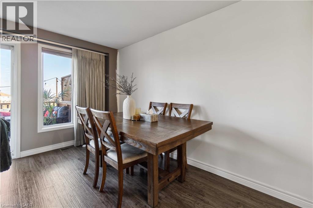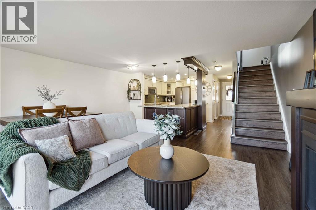 Welcome to this beautifully designed freehold end-unit townhouse in the highly desirable Laurentian West community of Kitchener. Offering approximately 1,800 sq ft of total living space, this upgraded home is perfect for families, first-time buyers, or investors seeking strong rental potential. Situated on a quiet street yet just minutes from the expressway, Highway 401, schools, parks, shopping, and everyday amenities, this home offers the perfect balance of convenience and tranquility. The main floor features a bright open-concept layout, creating a spacious and inviting atmosphere ideal for both everyday living and entertaining. The upgraded custom kitchen showcases maple cabinetry, granite countertops, and stainless steel appliances, seamlessly flowing into the living and dining areas. Luxury vinyl flooring runs throughout most of the home, enhancing both style and durability. Step out to the main floor deck—perfect for relaxing or entertaining—overlooking a fully fenced backyard. Set on a rare pie-shaped lot with a huge side yard, this property offers exceptional outdoor space with endless possibilities for families, entertaining, or future enhancements. The yard also features a 10x12 garden shed and scenic views of nearby walking trails and green space. Upstairs, the generous primary bedroom includes a walk-in closet, accompanied by two additional well-sized bedrooms, a full 4-piece bathroom, and a convenient linen closet. The lower level offers additional living space with a rec room, bathroom, laundry area featuring a brand new washer, and ample storage. A walkout leads to a patio with a custom enclosure, extending your usable outdoor space year-round. This exceptional property combines modern upgrades, rare lot features, and functional living in a sought-after location—an excellent opportunity not to be missed! ** Photos are from a previous listing when the property was owner occupied. Current condition may vary due to tenancy. (id:64974)