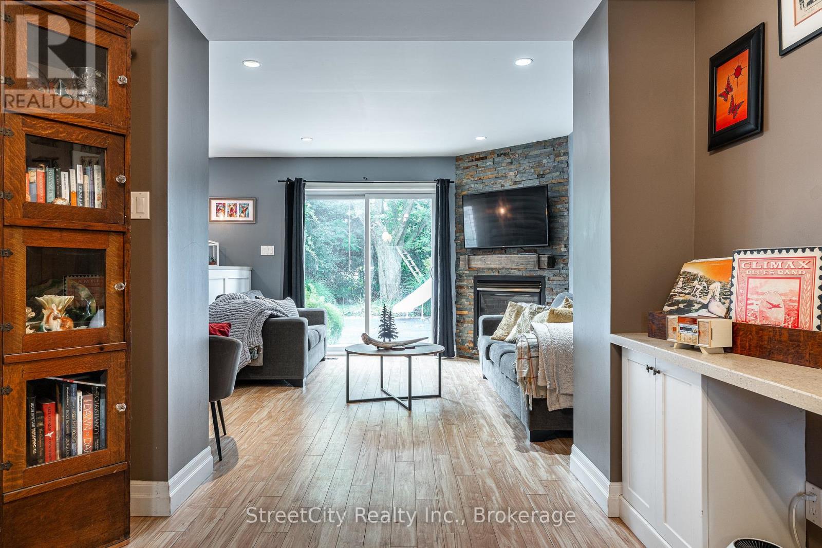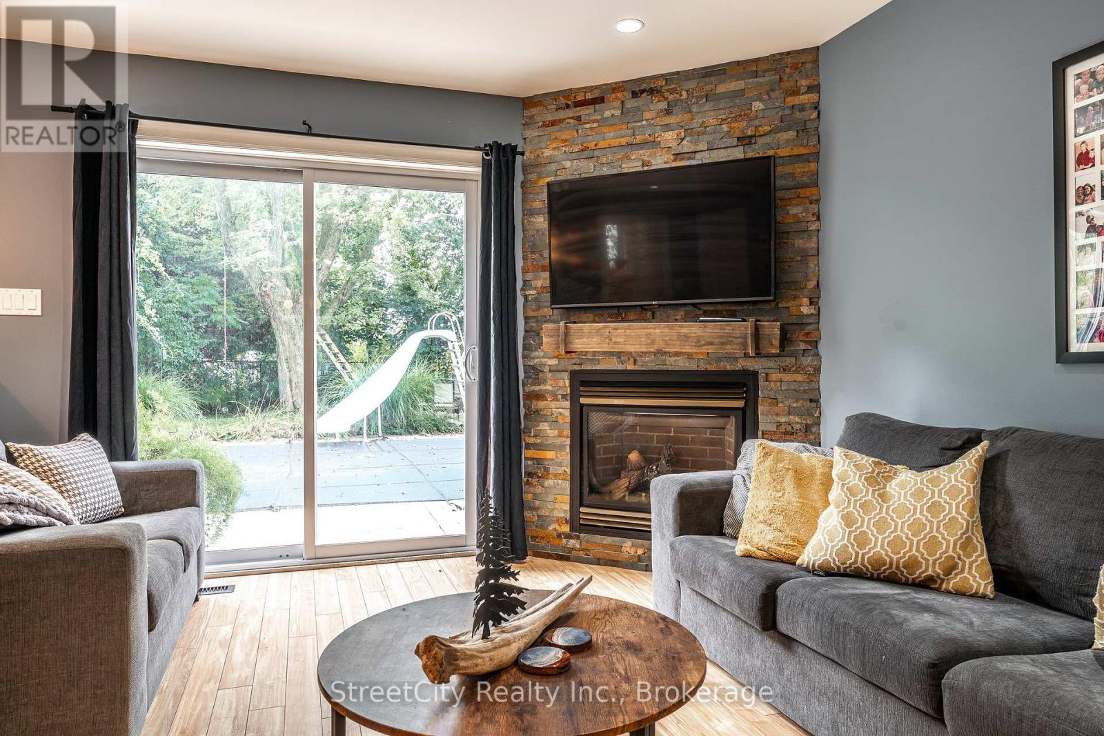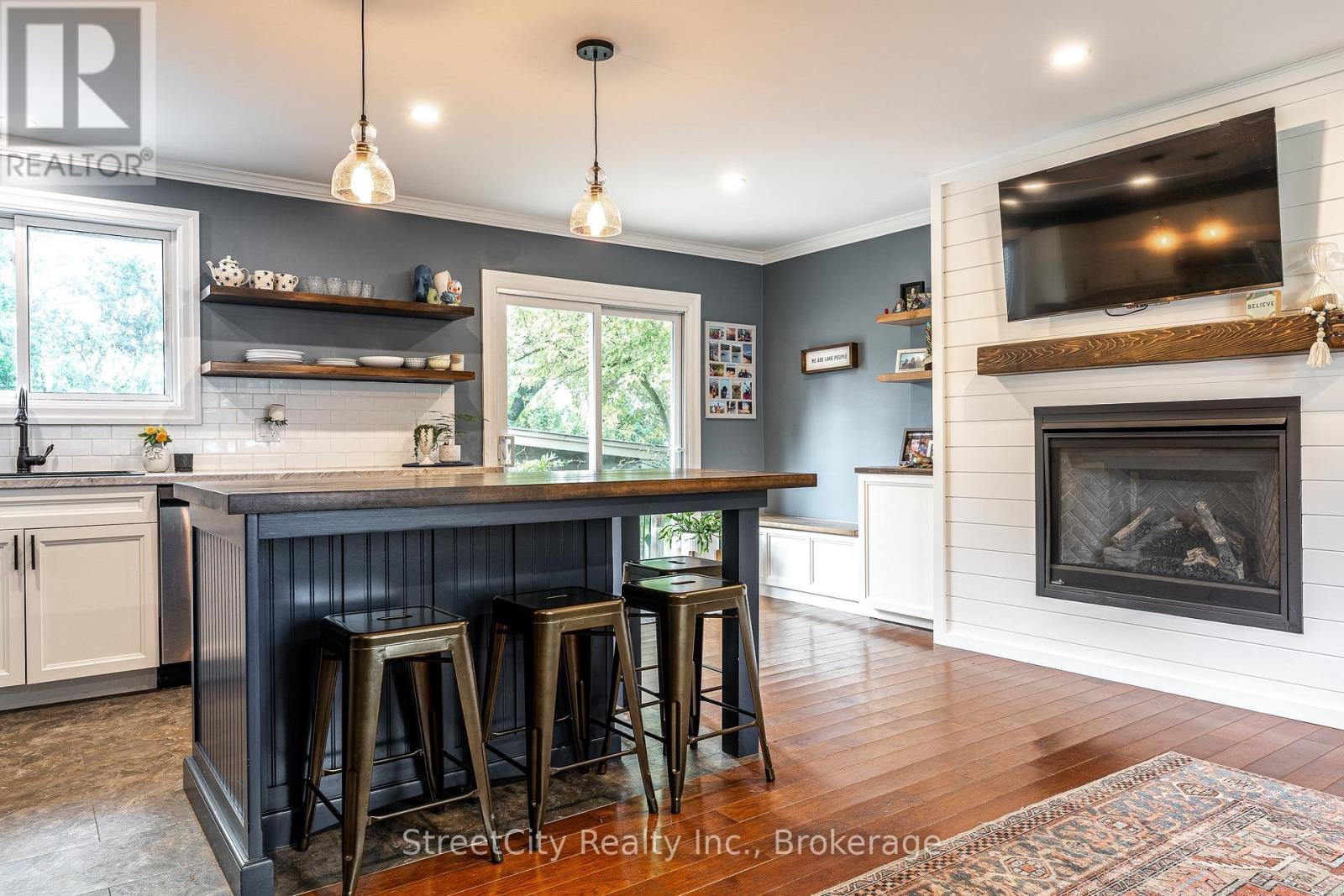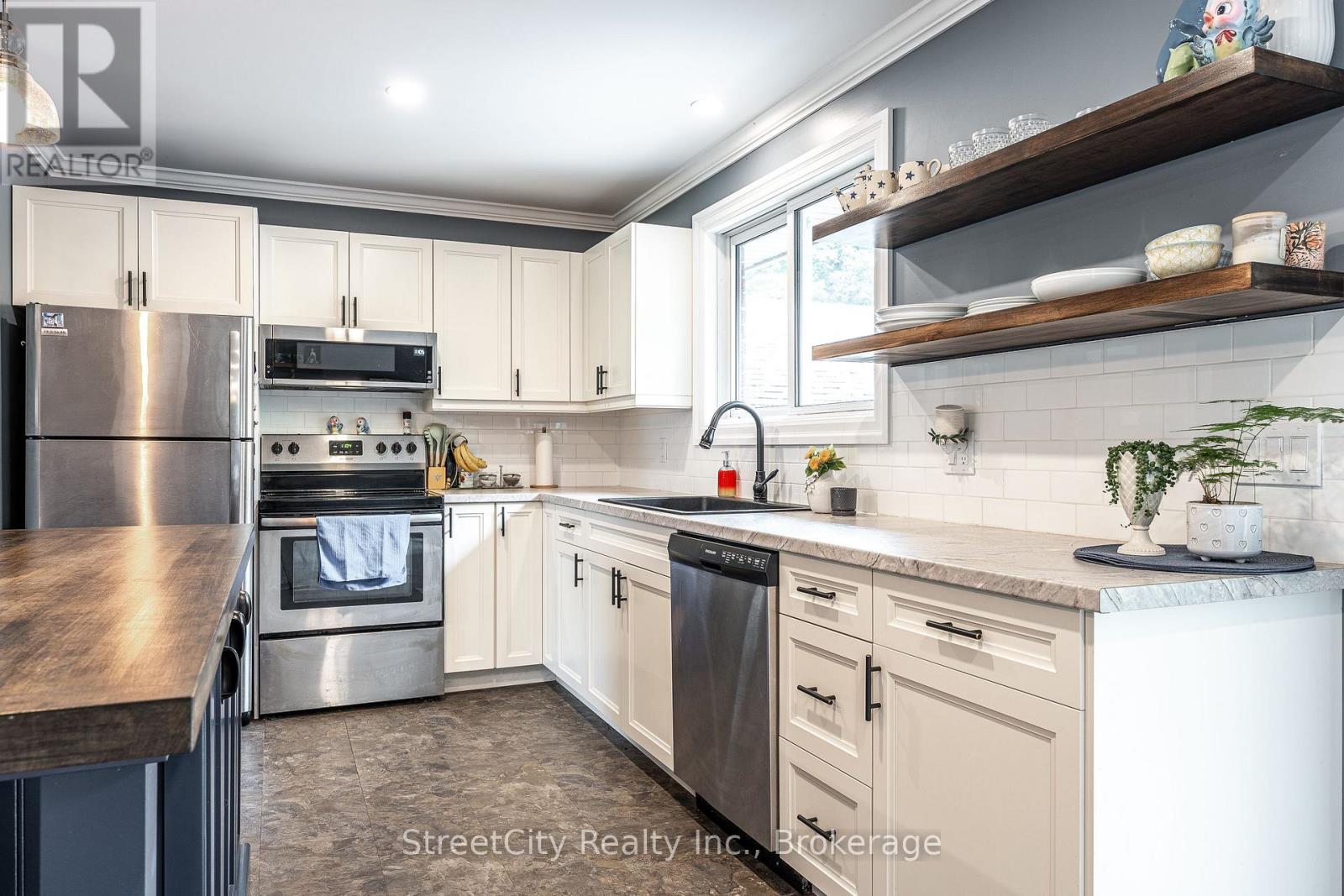 Family living at its best. Stretch out on Riehl Court with this sprawling 5 level split sitting on a 1/4 acre lot with inground pool on a quiet cul de sac in Stratford's Bedford Ward. The heart of this home is the open concept main level w/ updated kitchen, living room & dining room w/ focal wall featuring gas fireplace outfitted w/ custom shiplap style cladding and rustic free floating mantle, thoughtfully built custom cabinetry & seating. Walkout out raised deck overlooking the pool & rear yard. The main entry leads to a welcoming foyer on the ground level w/ office area, family room w/ stone clad gas fireplace, laundry area w/ built in cabinetry & 2pc bath w/ walkout to the pool level patio & rear yard. The upper level holds 3 gracious bedrooms & 4 pc family bath. The lower level features a large bright rec room w/ electric fireplace & utility room. The 5th level of this side split is an unfinished sub-basement which provides ample storage/workshop or possibilities to finish more living space. Immense private, fully fenced rear yard on this quarter acre lot w/ mature trees & landscaping and no rear neighbours. Inground pool w/ newer pump, filter and liner. If you are looking for a quiet, low traffic family friendly location then you can't go wrong with Riehl Court. Call for more information or to schedule a private showing. (id:64974)