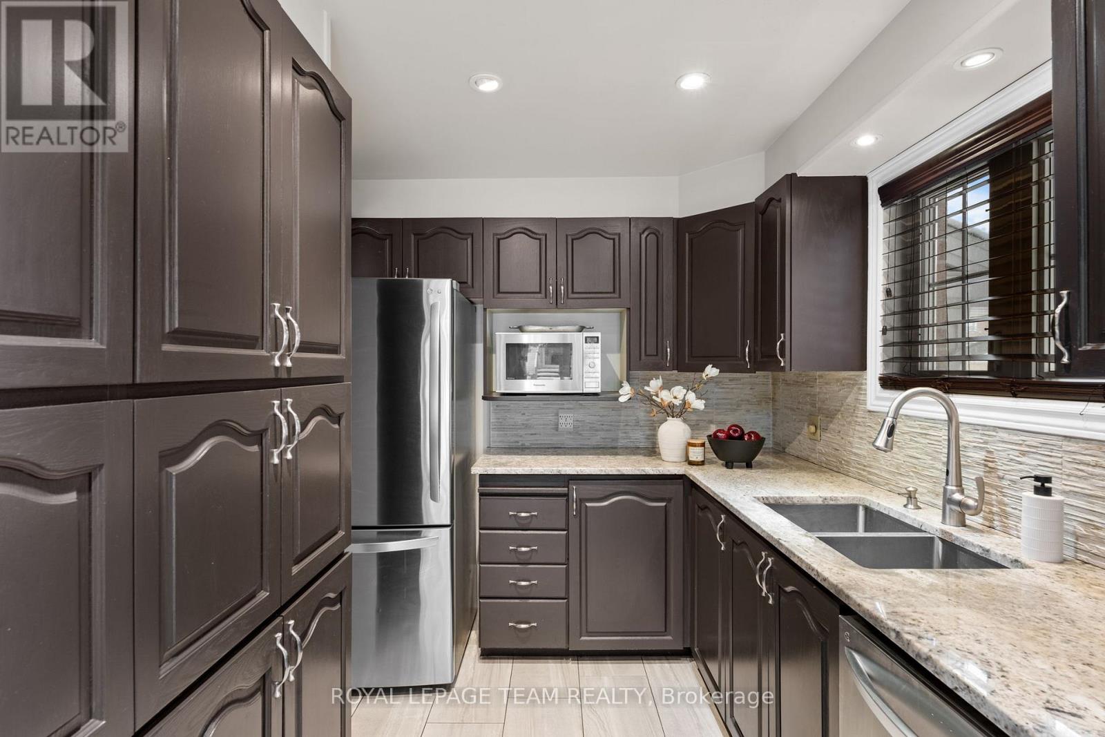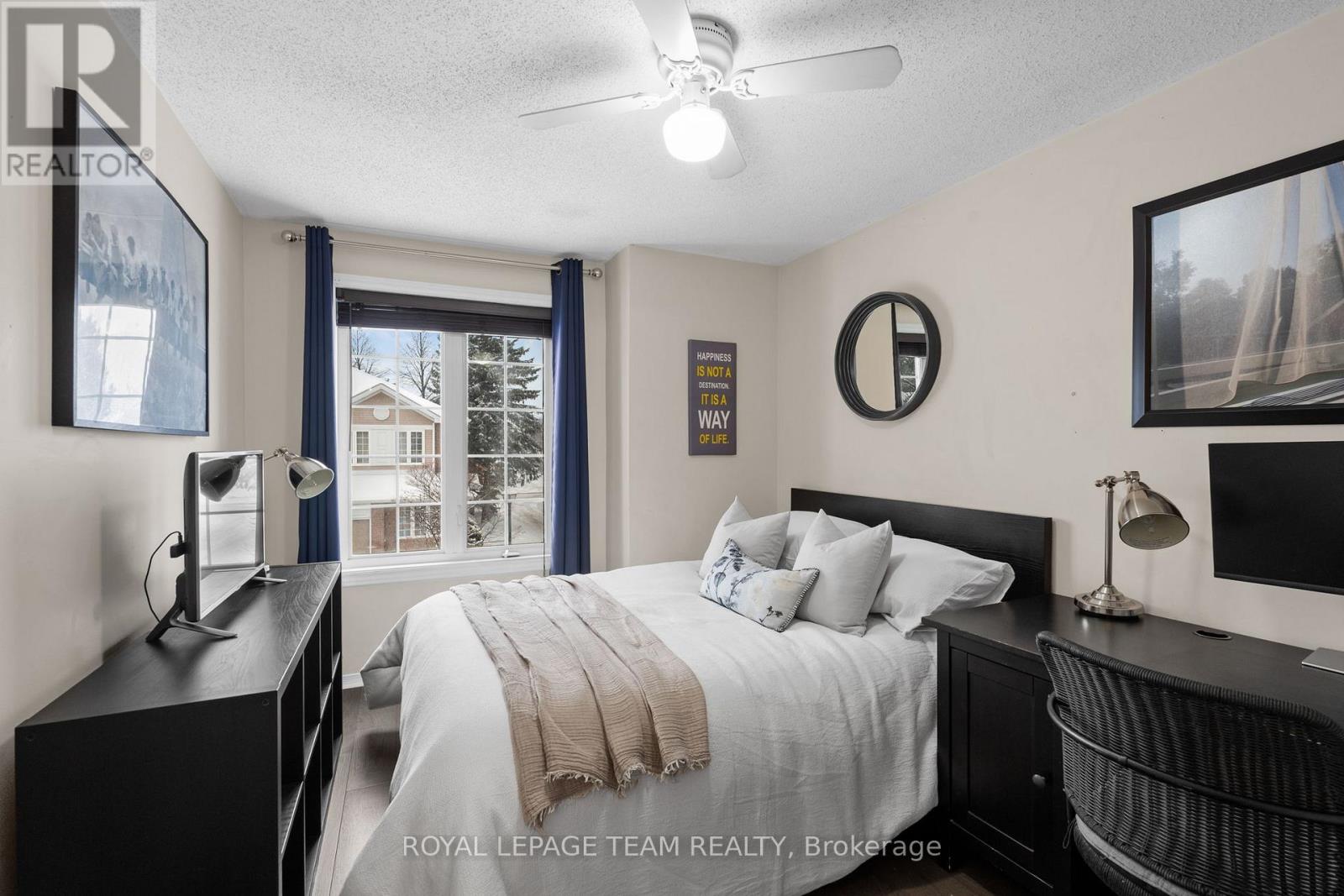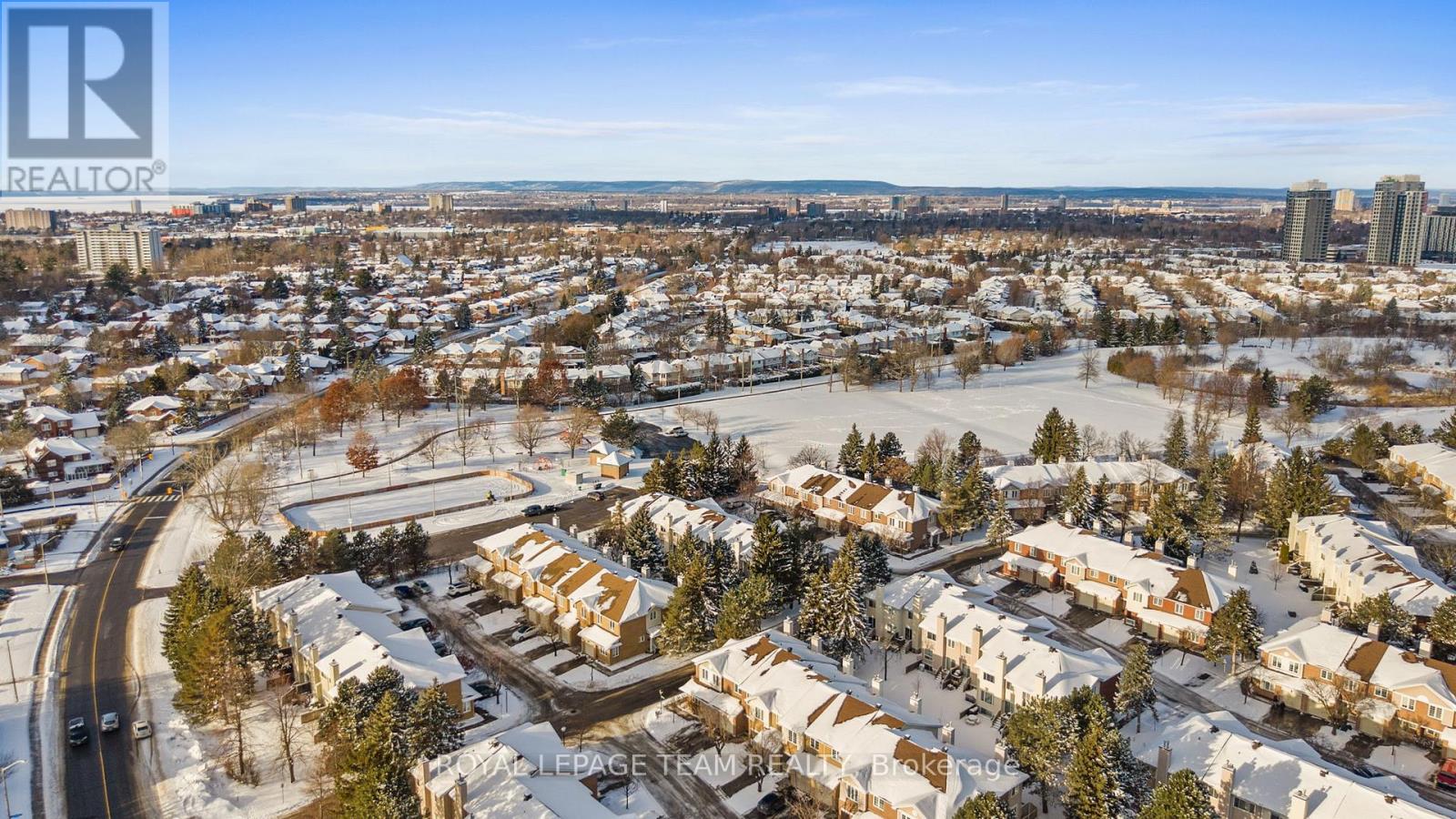 Maintenance Free Living! Condo fees include snow removal and lawn care! Welcome to this beautifully updated end-unit condo townhouse in the highly sought-after Centrepointe neighbourhood. Surrounded by mature trees, this bright and private home offers a peaceful setting with added natural light-an ideal retreat at the end of the day. The spacious layout features four bedrooms, including three on the upper level and a full bedroom on the main floor, perfect for guests, a home office, or multigenerational living. The oversized primary bedroom offers a comfortable retreat with plenty of space to unwind. Hardwood flooring flows throughout, creating warmth and continuity, while the updated kitchen offers a functional layout with a convenient breakfast bar-ideal for casual meals, homework, or morning coffee. Renovated upstairs bathrooms add modern comfort and style, enhancing the home's turnkey appeal. Enjoy cozy evenings by the electric fireplace in the living room or the wood-burning fireplace in the basement, offering warmth and versatility year-round. Thoughtfully updated and beautifully maintained, this calm and welcoming home allows you to simply unpack and enjoy. Ideally located just steps from Centrepointe Park, the library, transit, and close to shopping, schools, and recreation. Be sure to watch the video attached to this listing! (id:64974)
