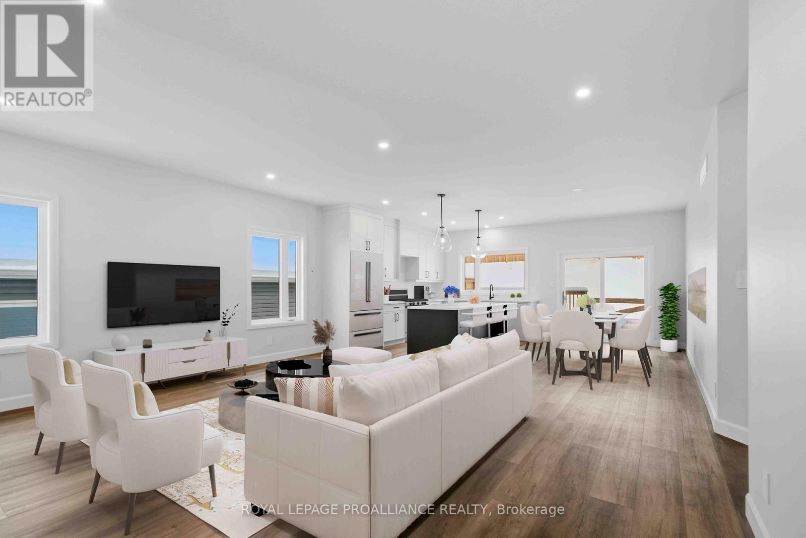It's a Buyers Market - no surprise. Lock in the low price now! This high quality home is Almost 1400 sq ft This plan has two beds and two baths with potential for two additional bedrooms down plus a third bath down if needed. The home, with 9 foot ceilings, will have a stunning kitchen with cabinets to the ceiling and crown moulding, island, & quality countertops, ensuite bath with glass/tile shower, finished laundry room with lower level landing, large deck with built-in bluetooth speakers, covered porch, double garage, paved driveway, interlock sidewalk, sodded lawn with no neighbours behind. Located in the very popular Orchard Lane subdivision with only single family detached homes with its own park. 10 minutes or less to CFB Trenton, Marina, Walmart, Golf Course, 401 & the Trent Severn Waterway. Lock in the low price now! Excellent opportunity here for qualifying First-Time Home Buyers (FTHB) to save "Big" by receiving the GST rebate on newly built homes!! (id:64974)
