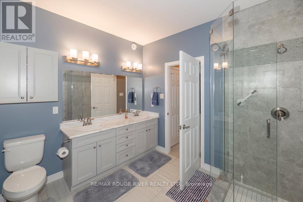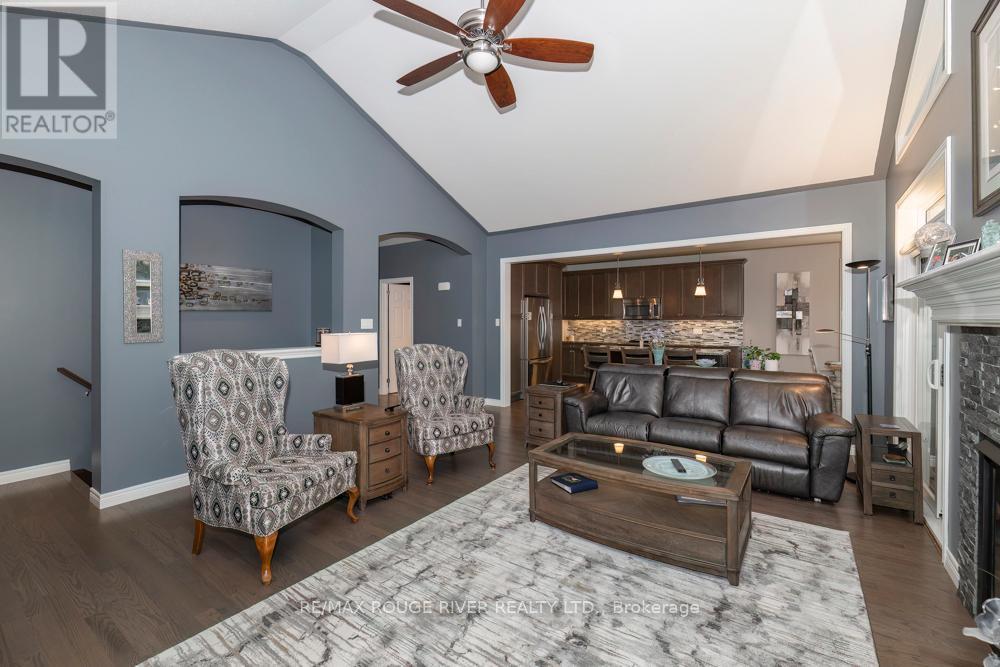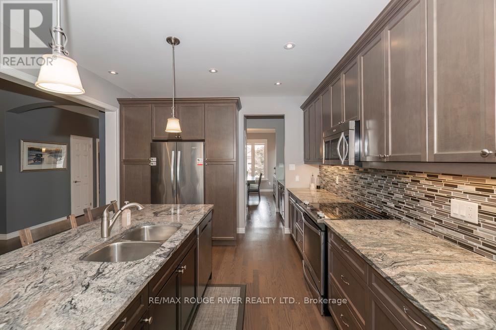 Absolutely spectacular Marshall built home in Port 32 adult lifestyle community with private club, marina and access to lake and Trent Severn Waterway! 1960 model with finish walkout basement and amazing upgrades including builder enlarged 3 season sunroom at back with gorgeous views! Double car garage was also builder enlarged! Butler pantry off kitchen! Well over 3000 total square feet of quality living space including two fireplaces! Beautifully landscaped, please check out the summer picture included in the attached photography! Membership to shore spa is included with tennis courts, inground pool, billiards and games room lounge gym and library! Natural gas lines are in the process of being installed in community so home can be converted to forced air gas heating! List of extensive upgrades is attached to listing! This home is an absolute must see! Second bedroom presently being used as den. (id:64974)