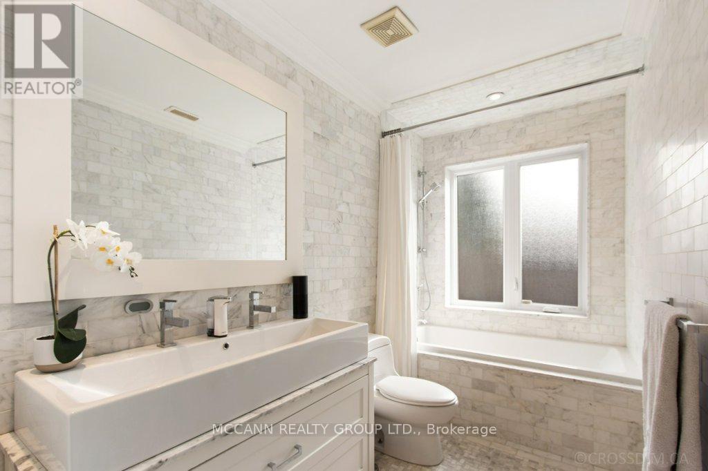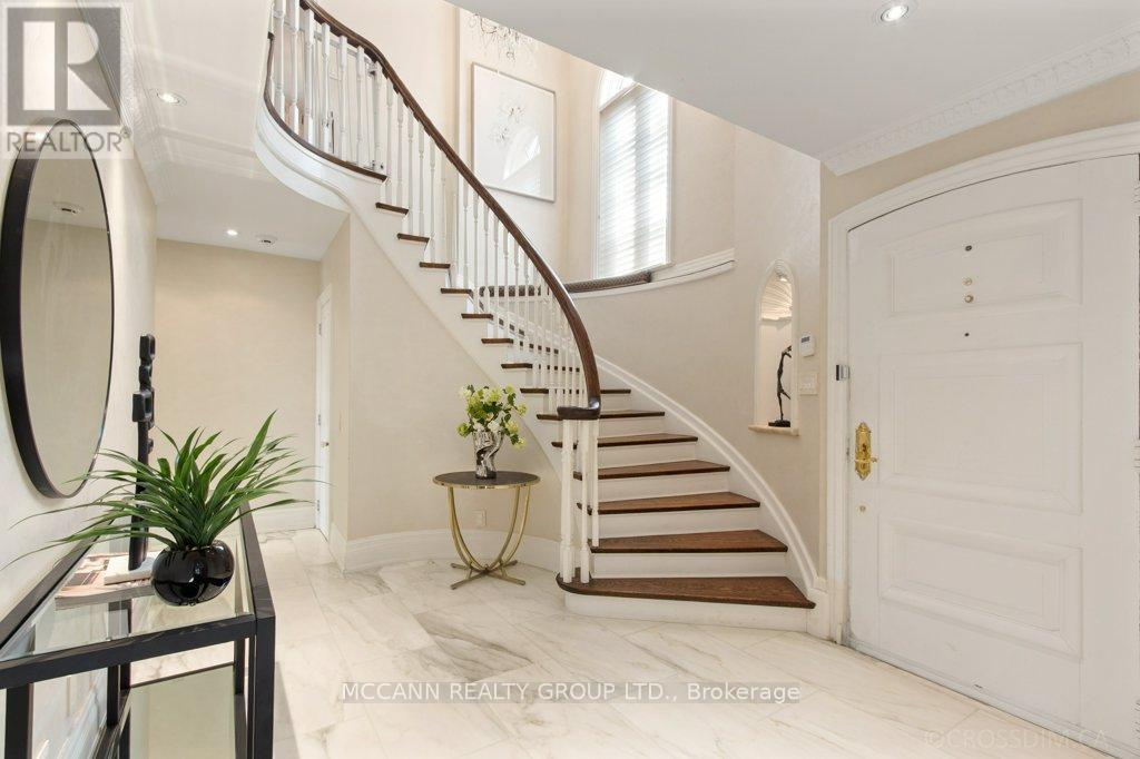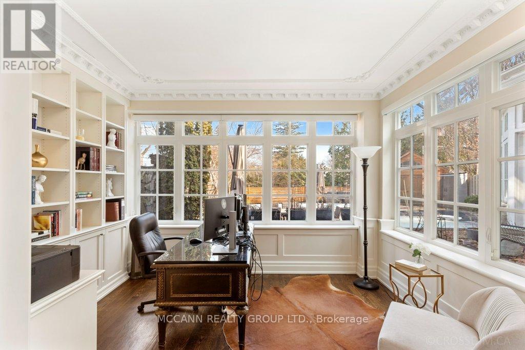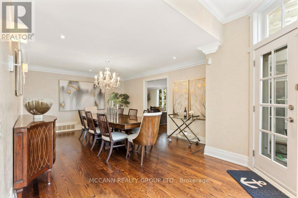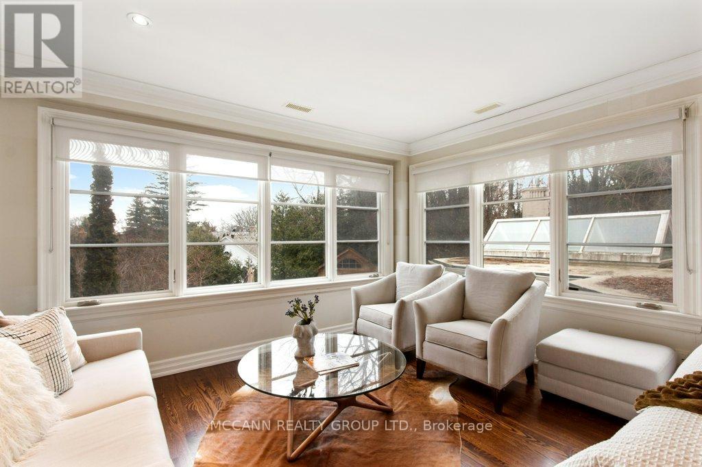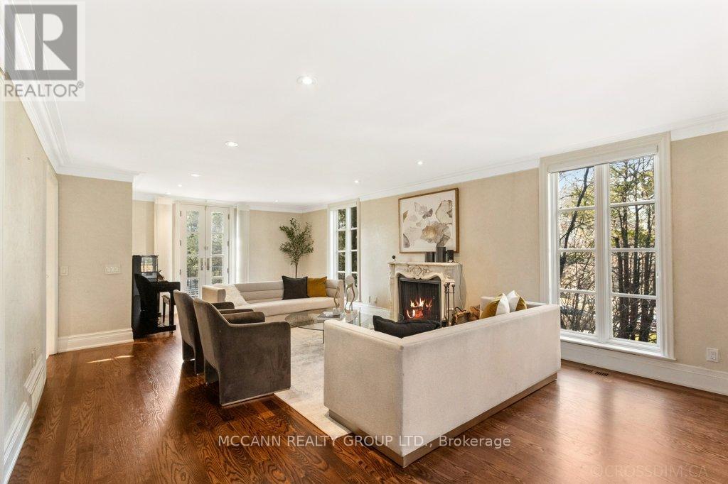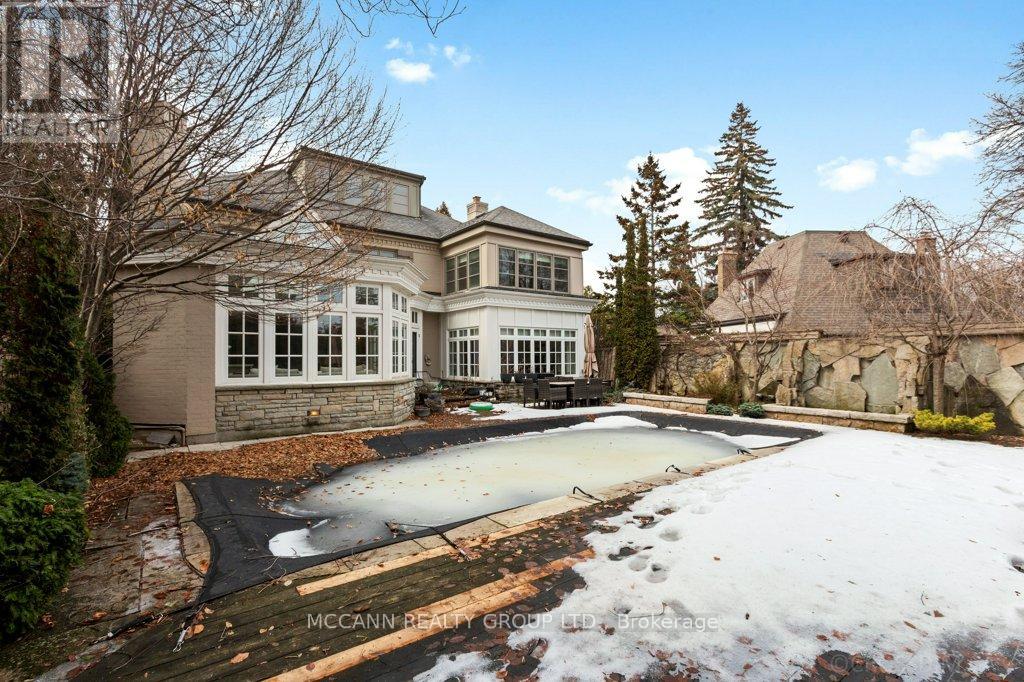 Nestled on one of Lawrence Park's most desirable streets, this beautifully appointed three-storey home offers exceptional space, comfort, and timeless style for modern family living. Featuring 4+1 bedrooms, generous principal rooms, and elegant finishes throughout, the thoughtfully designed layout provides both functionality and sophistication. The main level showcases a bright, open-concept family room anchored by a stunning chef's kitchen complete with striking onyx countertops and premium appliances, including a Wolf six-burner gas range. Abundant cabinetry, ample counter space, and both breakfast bar and eat-in dining options make this kitchen ideal for everyday living and entertaining alike. Separate living and dining rooms provide refined spaces for hosting, highlighted by a charming wood-burning fireplace in the living room. Two additional gas fireplaces, located in the family room and the primary bedroom, add warmth and character. The upper levels offer spacious, well-proportioned bedrooms designed to accommodate a growing family. The finished lower level features a large recreation room and a versatile nanny or guest suite, currently configured as a media room with built-in speakers. Step outside to a private backyard retreat featuring a pool perfect for summer entertaining, outdoor dining, and relaxation. Additional highlights include a private drive and built-in garage. Ideally located just minutes from top-rated schools, including Blythwood Junior Public School, beautiful green spaces such as Sherwood Park, and the shops and restaurants along Yonge Street, this home offers an exceptional opportunity to live in one of Toronto's most sought-after neighbourhoods. (id:64974)