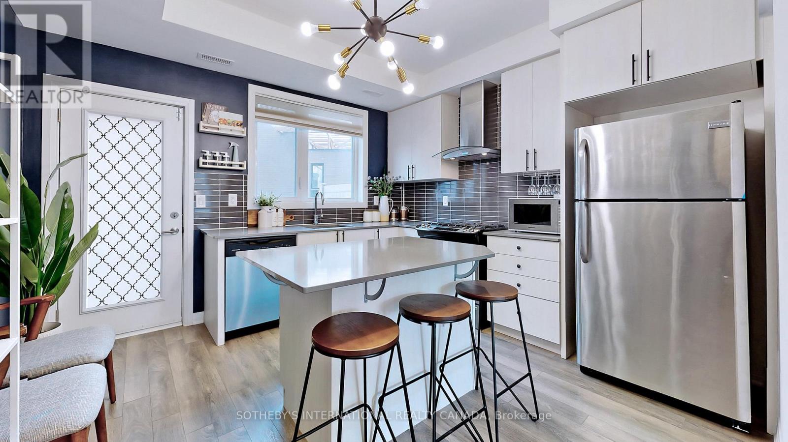 Welcome to discover the modern four-story freehold townhome in magnificent 593-acre Downsview Park. Move in today. Option to include furniture. Just bring in your luggage. This sophisticated home boasts 3 bedrooms with a cozy backyard, 2 rooftop terraces, 1 secured parking garage with 2 doors, plus visitor parkings. Premium upgrades throughout. White oak hardwood staircases & laminate floors for easy maintenance. Enlarged windows & open layout allow abundance of natural light & airy space. Updated lighting fixtures, window draperies, top-down bottom-up adjustable shades included. Dream Chef's kitchen with upgraded gas stove, stainless steel appliances, quartz countertops, movable island & sleek cabinetry. Fashionable baths with high grade hardware, cultured marble vanity tops & integrated sinks. Exceptional Primary Bedroom Ensuite boasts entire 3rd floor. Enormous filmed windows, walk-in closet, glass shower, ceramic tile deck structure, along with a spa-like built-in soaker tub for an unparalleled relaxation and rejuvenation in your own place. 4th floor sunlit sitting area wall out to both terraces. Bright & versatile living merges indoor & outdoor space for year-round retreat. Lower floor features b/i sitting bench, extra storage under stairwell & direct access to underground garage. For those seeking an extraordinary lifestyle, this home enjoys impressive wealth of urban park neighbourhood, oasis greenery, and large groups of exercise amenities. Popular children's playgrounds, dog park, pond waterfront scenery, hilltop views, circuit and bicycle trails, waterpark, skateboarding, sport fields, arenas, tennis courts, fire pits, beautiful sittings, awarded public arts & musical concert halls all within the park. Stay active and healthy with free outdoor fitness equipment & well-being facilities for all ages. This superb location is also close to TTC subway, hospital, universities, Yorkdale Shopping, and downtown Toronto. A truly affordable luxury to call a home. (id:64974)
