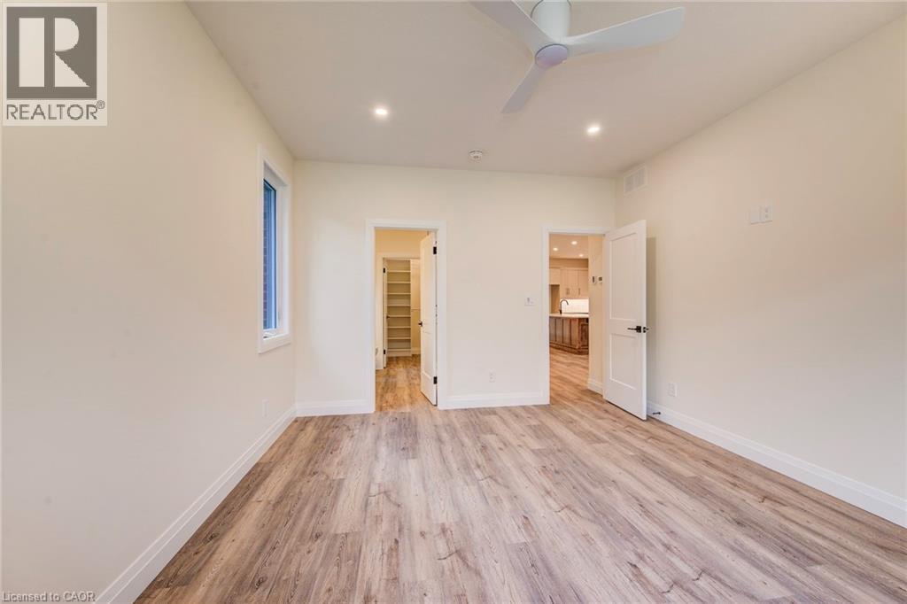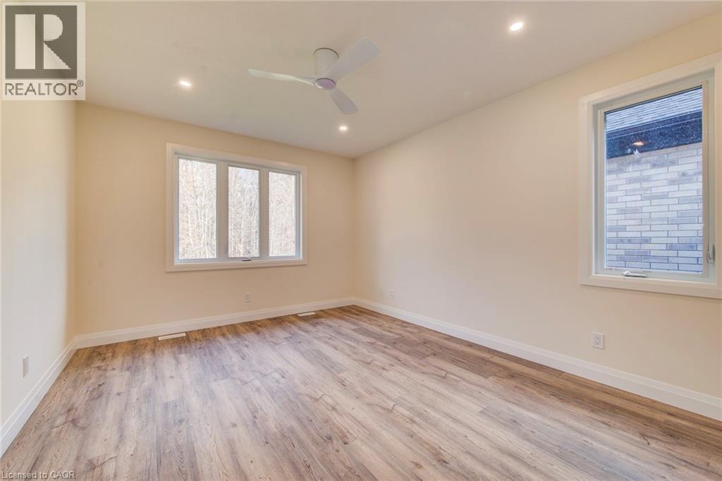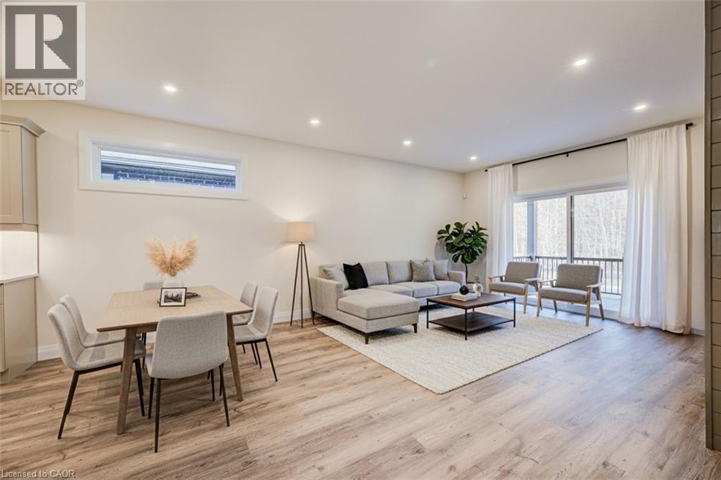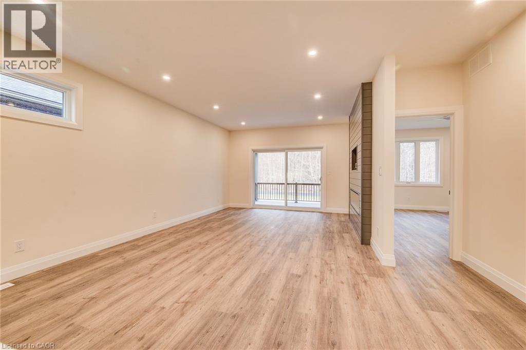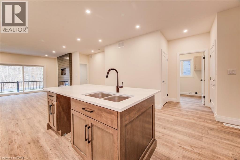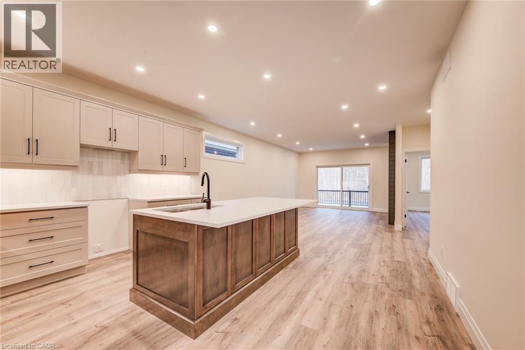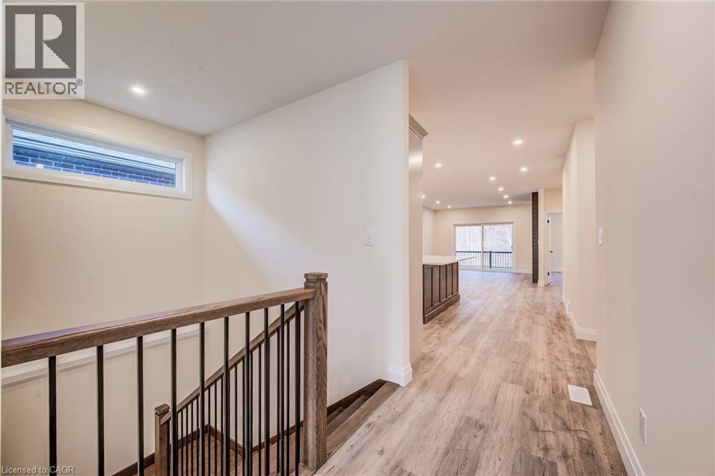 Features include gorgeous hardwood stairs, 9' ceilings on main floor, custom designer kitchen cabinetry including upgraded sink and taps with a beautiful quartz countertop. Dining area overlooks great room with electric fireplace as well as walk out to covered porch. The spacious primary suite has a walk in closet and glass/tile shower in the ensuite. Other upgrades include pot lighting, modern doors and trim, all plumbing fixtures including toilets, carpet free main floor with high quality hard surface flooring. Did I mention this home is well suited for multi generational living with in-law suite potential. The fully finished basement includes a rec room, bedroom and a 3 pc bath. All this on a quiet crescent backing onto forested area. Enjoy the small town living feel that friendly Elmira has to offer with beautiful parks, trails, shopping and amenities all while being only 10 minutes from all that Waterloo and Kitchener have to offer. Expect to be impressed. (id:64974)