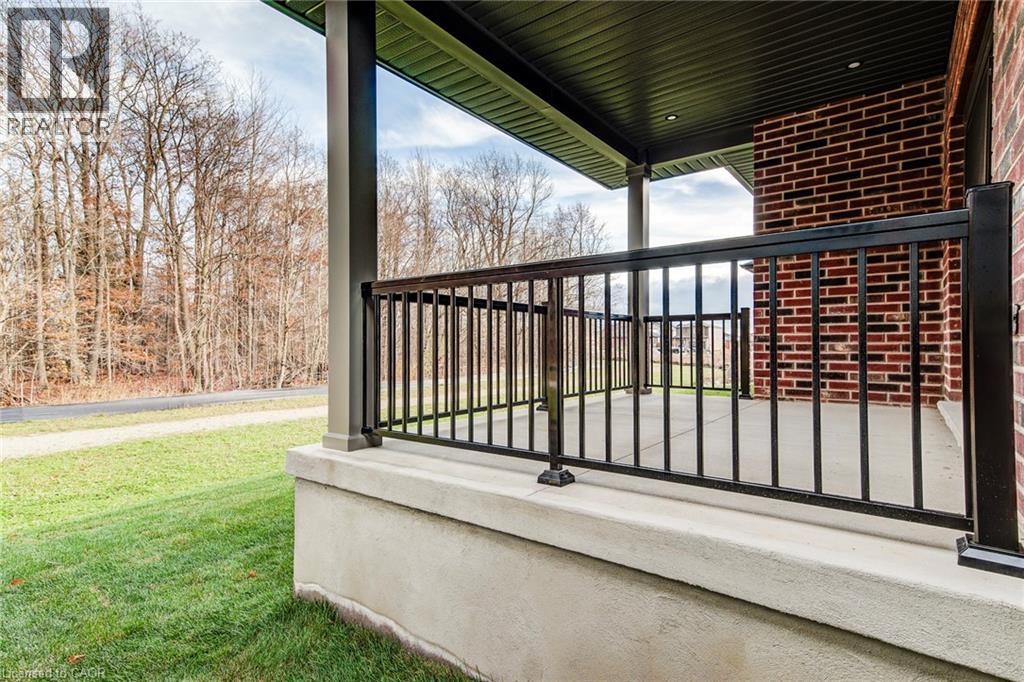 TAKE ADVANTAGE OF THE NEW GOVERNMENT REBATE PROGRAMS AND MAKE THIS BEAUTIFUL BRAND NEW BUNGALOW YOUR NEXT HOME. features stunning hardwood stairs and 9' ceilings on the main floor, creating a bright and elegant living space. The designer kitchen boasts upgraded cabinetry, a sleek quartz countertop with upgraded sinks and faucets throughout. The dining area overlooks the inviting great room with an electric fireplace and offers a walkout to a covered porch—perfect for relaxing or entertaining. The spacious primary suite includes a walk-in closet and a luxurious ensuite with a glass and tile shower. Additional upgrades include pot lighting, modern doors and trim, updated plumbing fixtures, and high-quality hard surface flooring throughout the carpet-free main level. Ideal for multi-generational living, this home offers in-law suite potential. The fully finished basement features a recreation room, bedroom, and a 3-piece bathroom. Nestled on a quiet crescent backing onto a forested area, this property combines privacy with convenience. Enjoy the charm of Elmira’s small-town atmosphere, complete with parks, trails, shopping, and amenities—just 10 minutes from Waterloo and Kitchener. A truly impressive home you won’t want to miss. (id:64974)