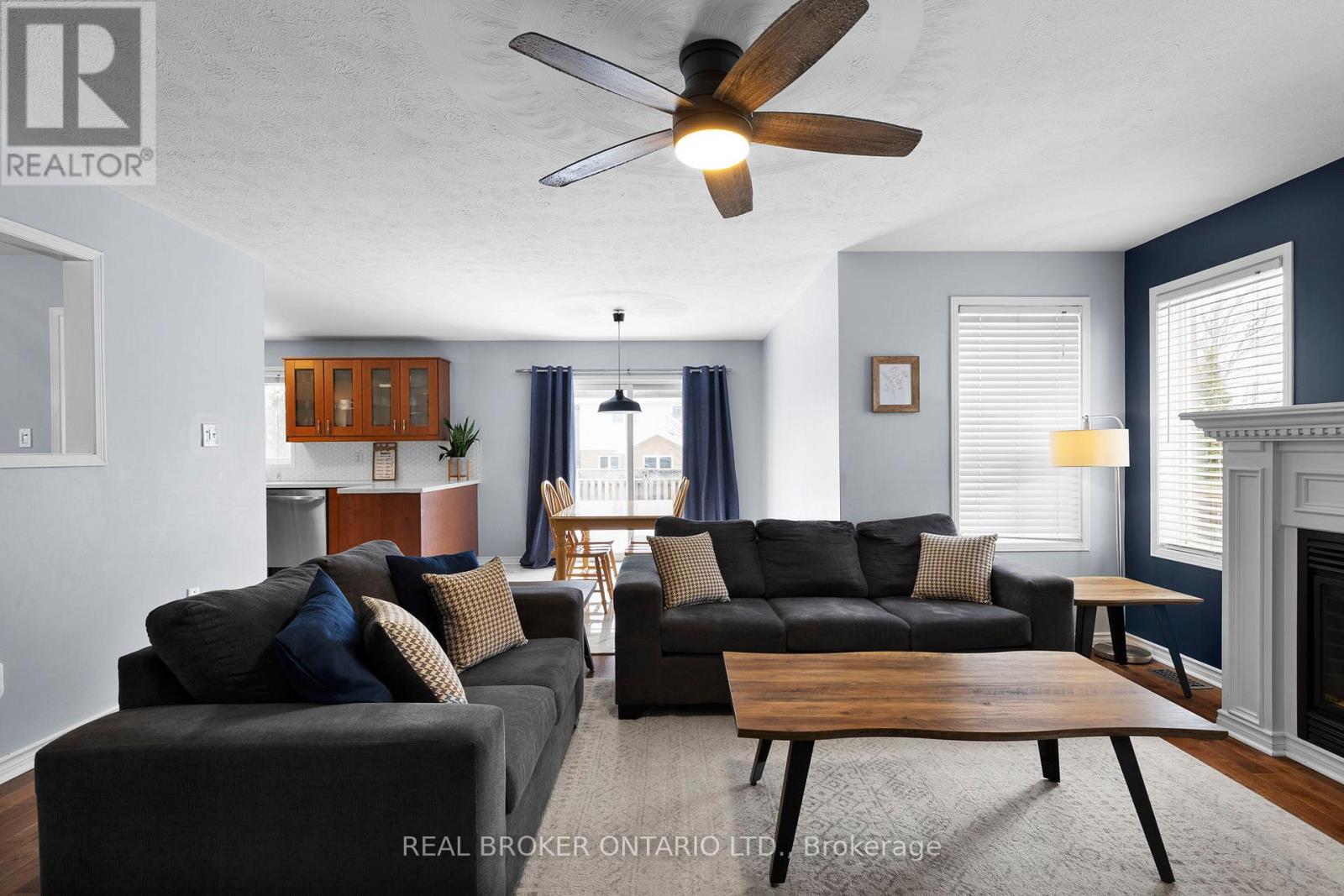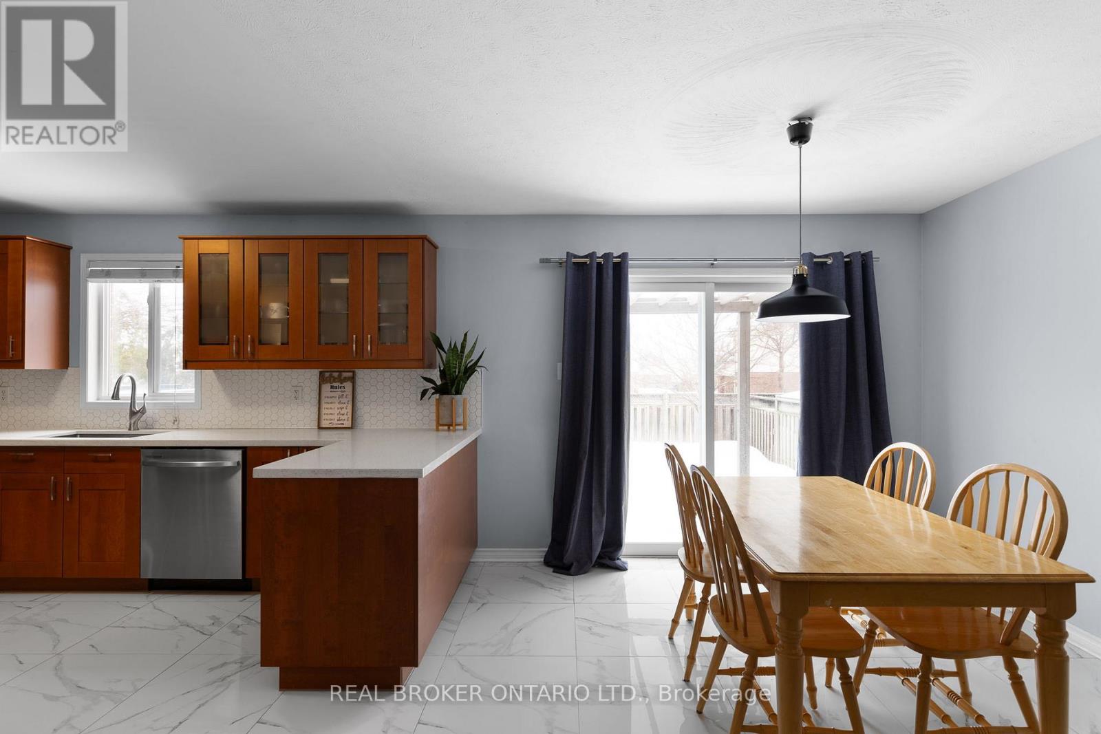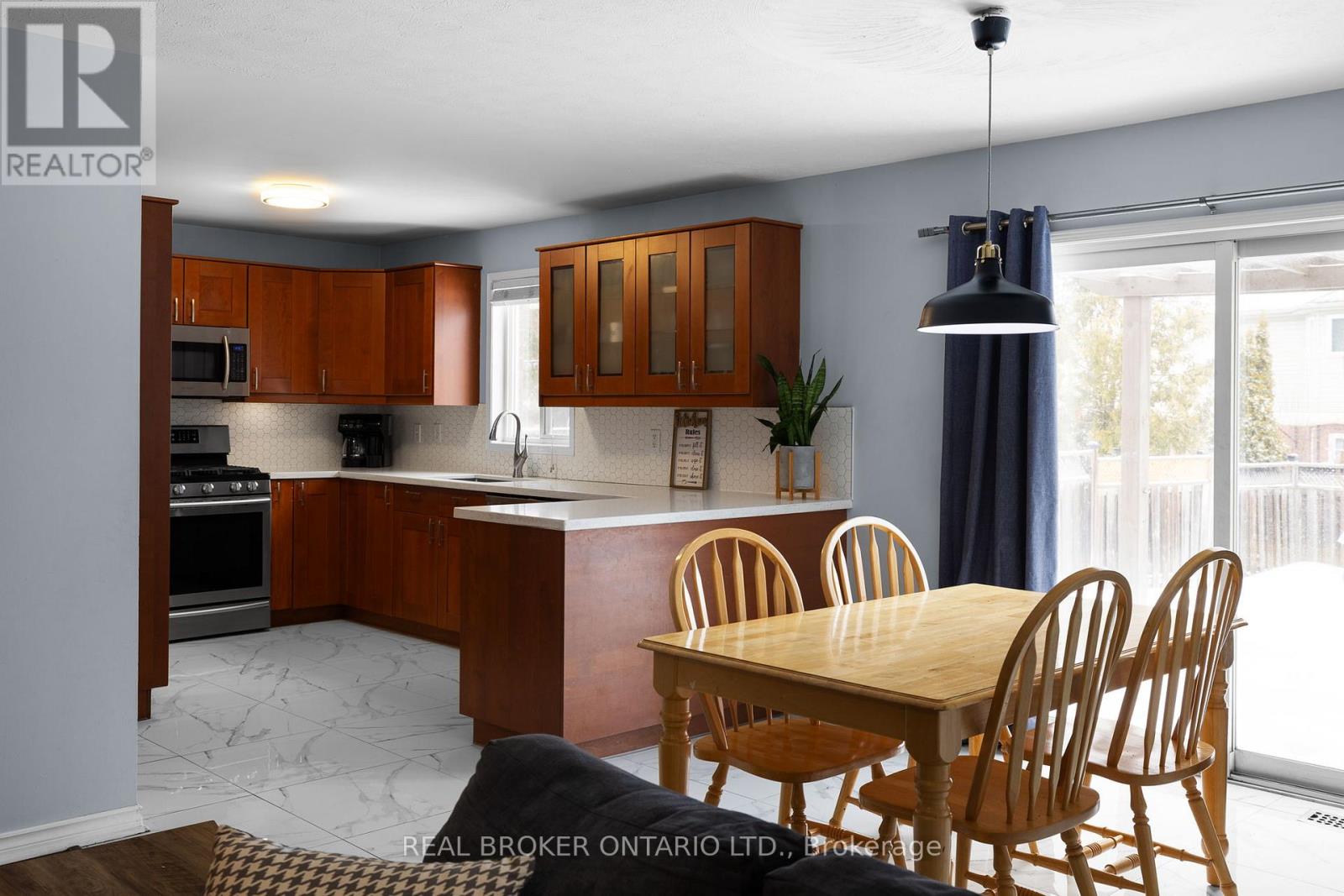 Welcome to this beautifully finished, move-in ready home located on a quiet, family-friendly street in Orillia's sought-after Westridge community. Just minutes to Highway 11, Costco, parks, and everyday amenities, this location continues to be one of the area's most desirable. Step inside to a bright, open-concept main floor designed for modern living and entertaining. The spacious eat-in kitchen features quartz countertops and flows seamlessly into the main living area, creating a warm and inviting space for family and guests alike. A stunning staircase acts as a true focal point of the home, adding character and architectural appeal. Upstairs, you'll find three generously sized bedrooms, including a primary retreat with vaulted ceilings that create an airy, elevated feel. The layout is ideal for growing families, offering both comfort and functionality.The recently renovated basement provides excellent additional living space-perfect for a rec room, home gym, or media area-complete with an additional bathroom for added convenience.Outside, enjoy a fully fenced backyard, ideal for kids, pets, or summer entertaining. The attached two-car garage and main floor laundry add everyday practicality to this well-rounded home.A turn-key opportunity in one of Orillia's most popular neighbourhoods-this is one you won't want to miss. (id:64974)