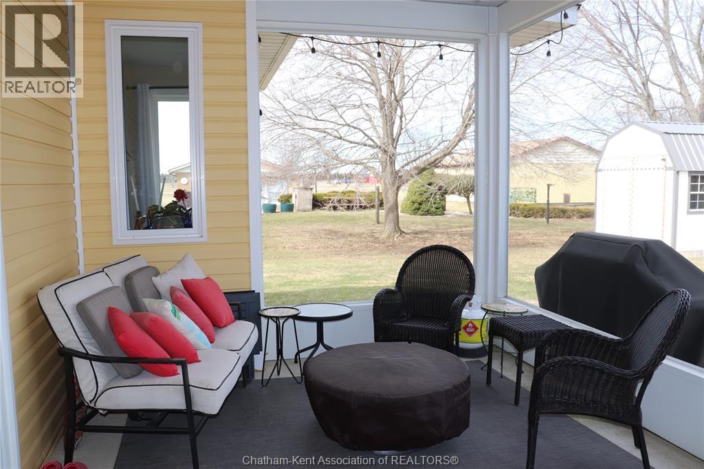 You have found your new (2019) home in the vibrant small community of Shrewsbury, within the Greater Blenheim area. Just a 5 minute walk to the bounty of Rondeau Bay for boating, fishing, winter ice skating, or a nature walk along the marshes of the area. Many canals that can be accessed for kayaking as well. This home is maintenance free with a level yard and a outside storage shed. The home consists of an entry foyer, large common area of kitchen, dining and living room with gas fireplace. The primary bedroom has a vaulted ceiling and is large with an ensuite bath, and a walk in closet Two other bedrooms of good size with a 4 pc bath between them. Kitchen has upgraded cabinets and hard surface counters. Ceilings are 9 feet in height. There is a bonus seasonal 250 square foot sunroom off the rear of the home accessed by patio door from living room. Laundry room is accessible off kitchen with a pantry as well. The attached garage is insulated and approximately 19 x 19'. There is an open porch at the front door which allows a southwest view of a canal and marshland across the street. There is a 200 amp Panel in the garage for future electric car owners access. This sale listing is conditional upon the Sellers purchasing a specific property within 5 days of an accepted Offer. (id:64974)