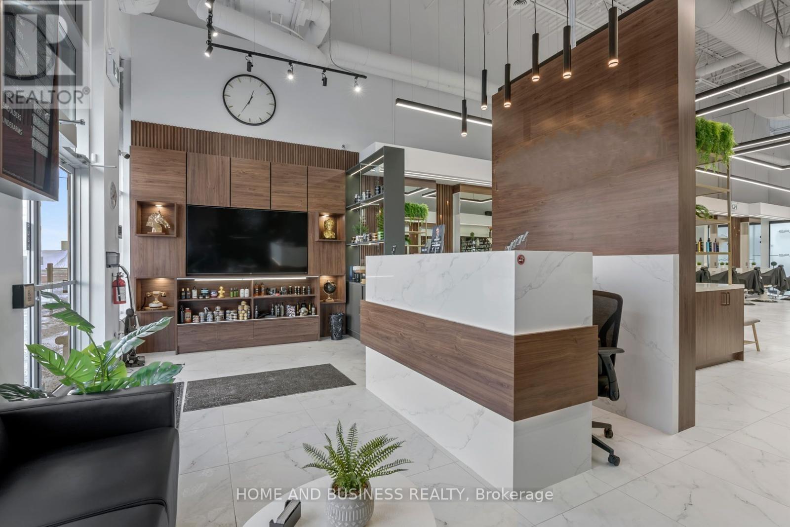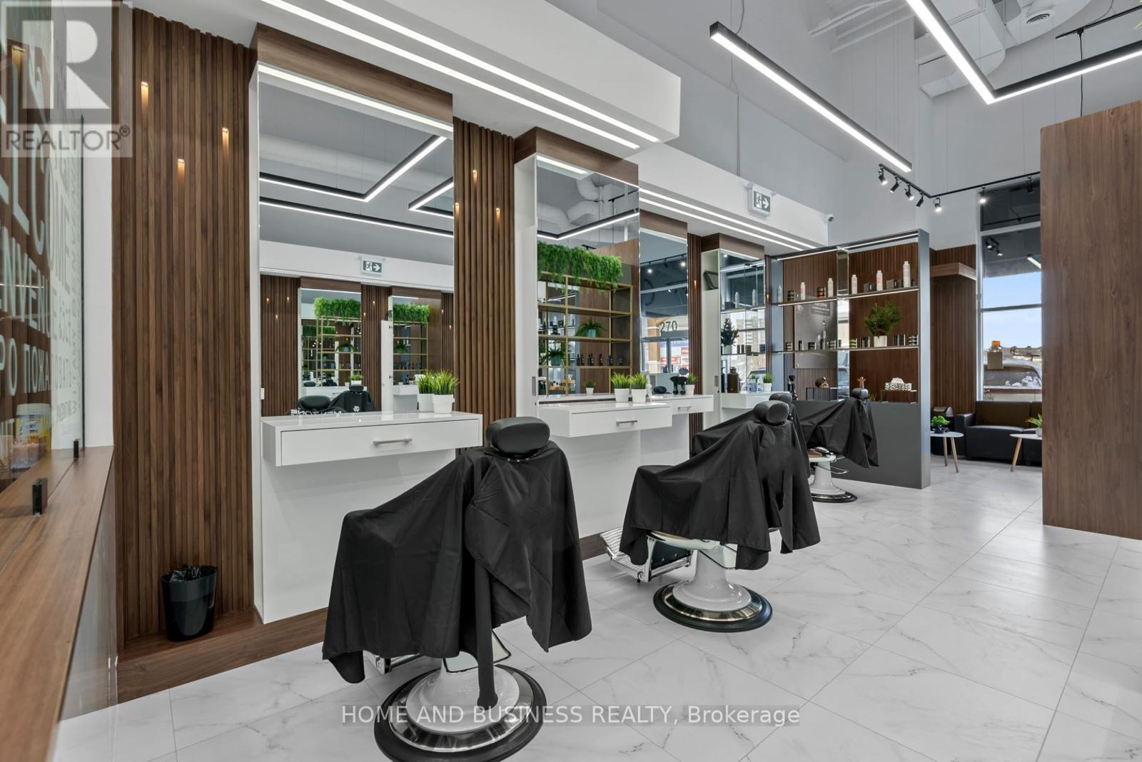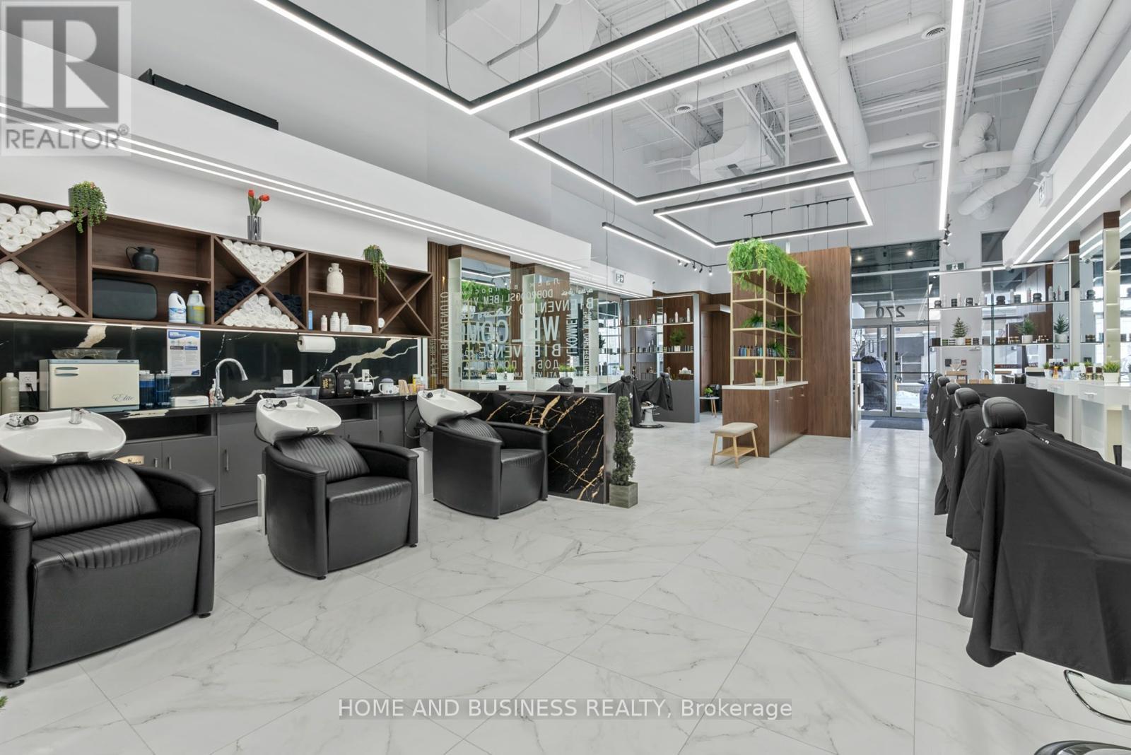 Exceptional opportunity to acquire a beautifully designed and fully operational beauty salon business for sale located in the heart of the highly sought-after SmartCentres in Thornhill. This spacious 2,056 sq. ft. salon offers a modern, upscale layout with high-end finishes and an inviting, professional atmosphere. The salon is fully built-out and well-equipped, featuring 14 styling chairs, 3 hair wash stations, and a private massage room, allowing for a wide range of beauty and wellness services and efficient operations. The thoughtful layout supports high client volume while maintaining comfort and privacy. Ideally positioned in a prime, high-traffic retail plaza with excellent visibility, ample parking, and strong national tenants nearby, the location benefits from consistent foot traffic and strong exposure. This is a turnkey opportunity, ideal for an owner-operator or investor, with significant growth potential in a thriving and affluent Thornhill market. (id:64974)