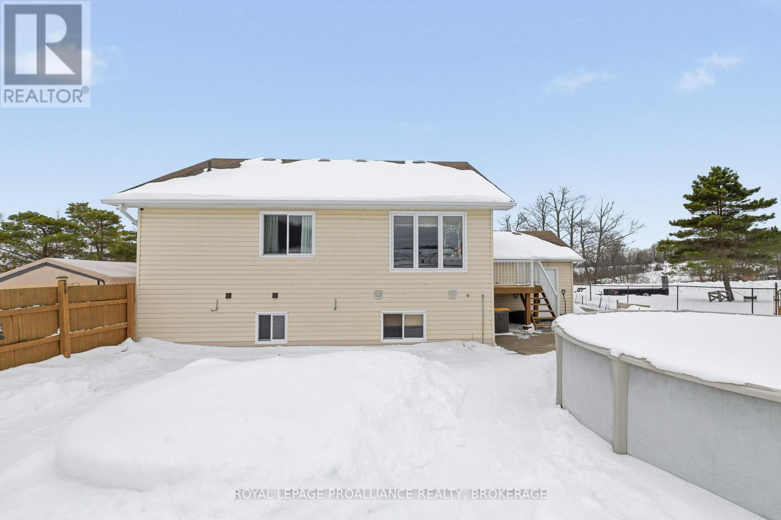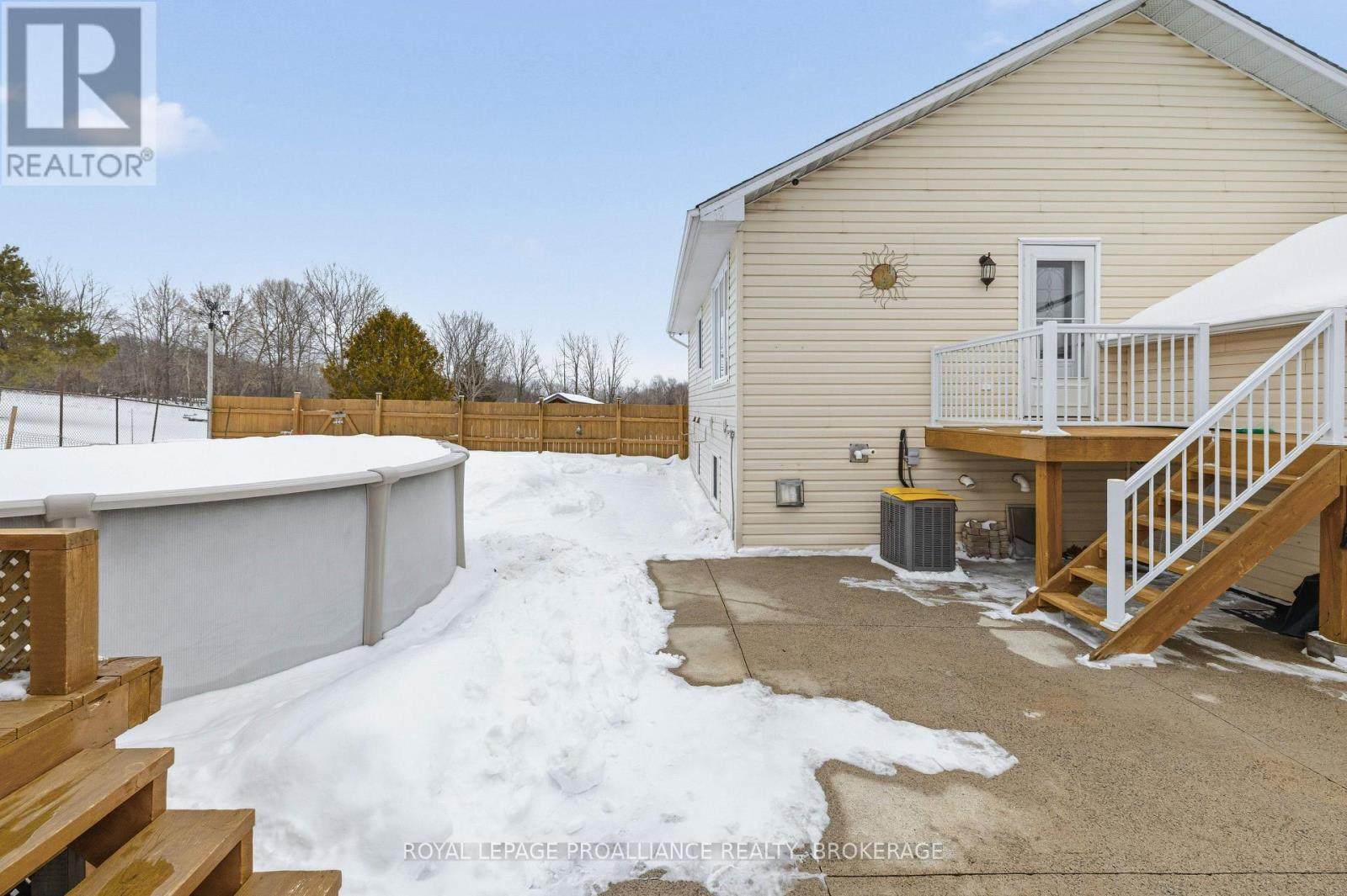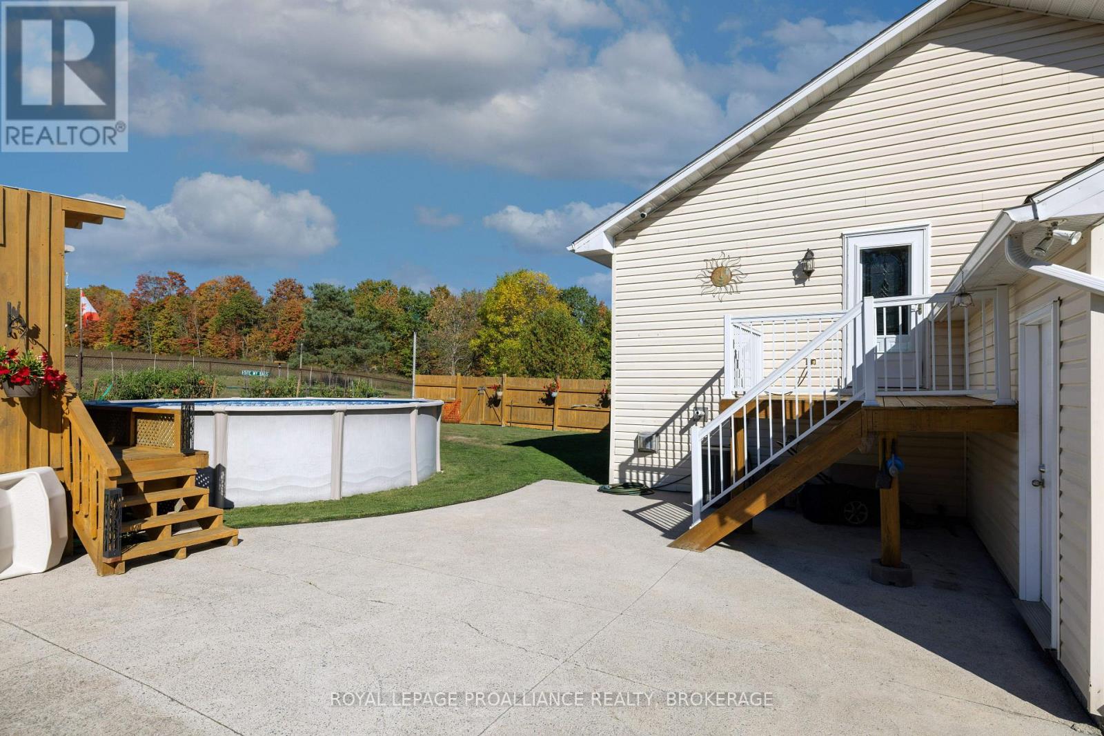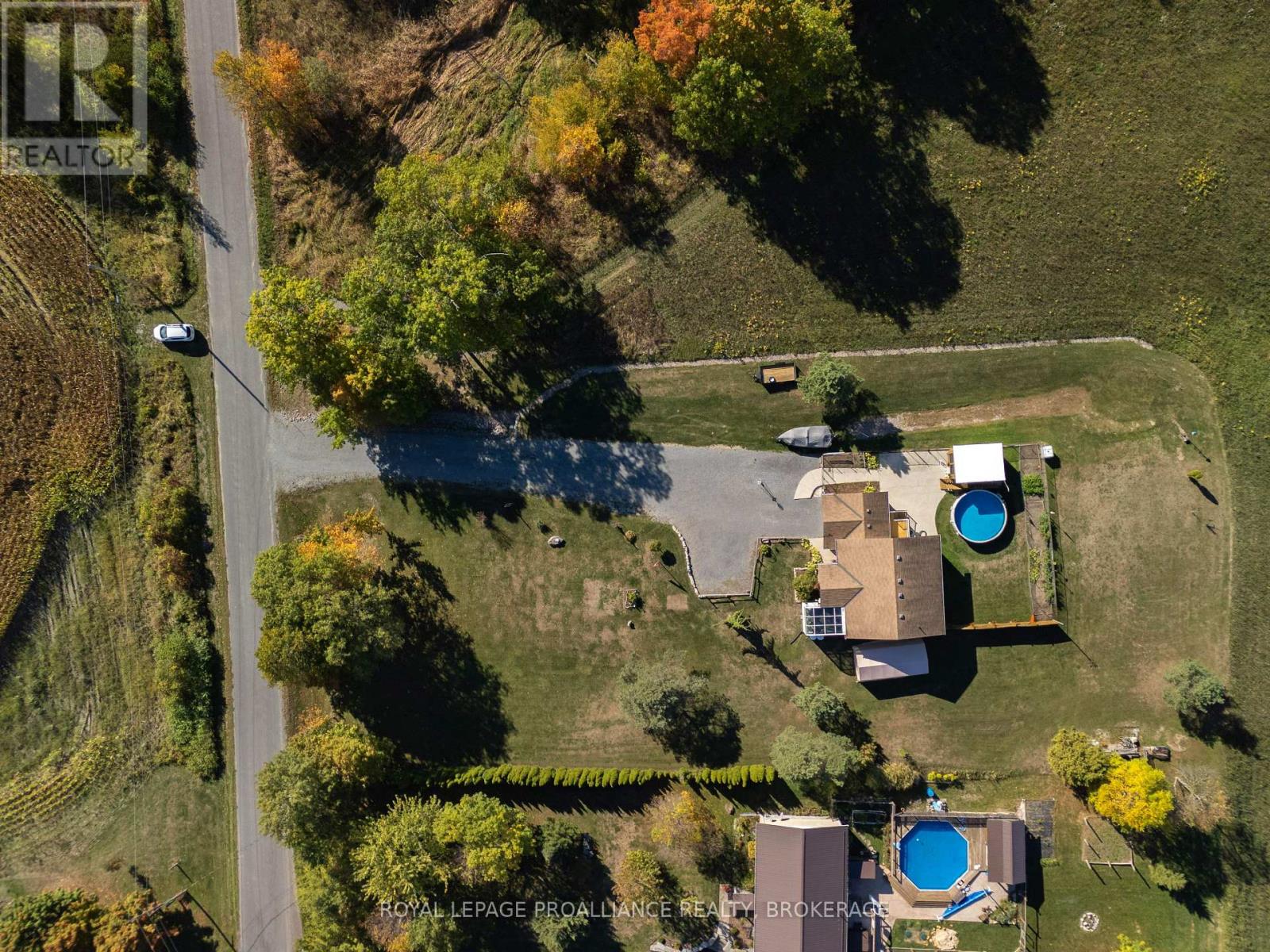 Beautifully updated and meticulously maintained raised bungalow, set on a private and manicured one-acre lot just five minutes north of the 401. Offering 2,000 square feet of finished living space, this wonderful family home features 2+2 bedrooms, 2 full bathrooms, formal dining room, a main floor family room, a bright solarium and a lower level rec/media room warmed by a cozy propane stove. Recent updates include refinished kitchen and bathroom cabinetry, new countertops, updated flooring, a new above-ground pool and a custom screened-in sun-room designed for extended summer enjoyment. Positioned high above the road, the property offers sweeping views of rolling farmland and a peek of the Rideau waterway. Immaculately maintained with every detail thoughtfully cared for, this home is truly move-in ready. (id:64974)