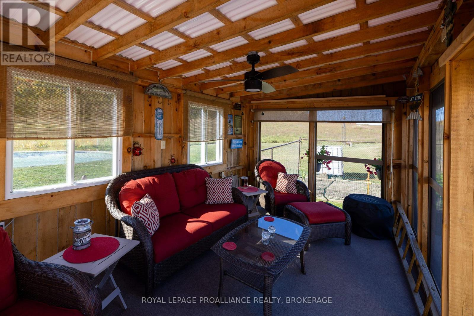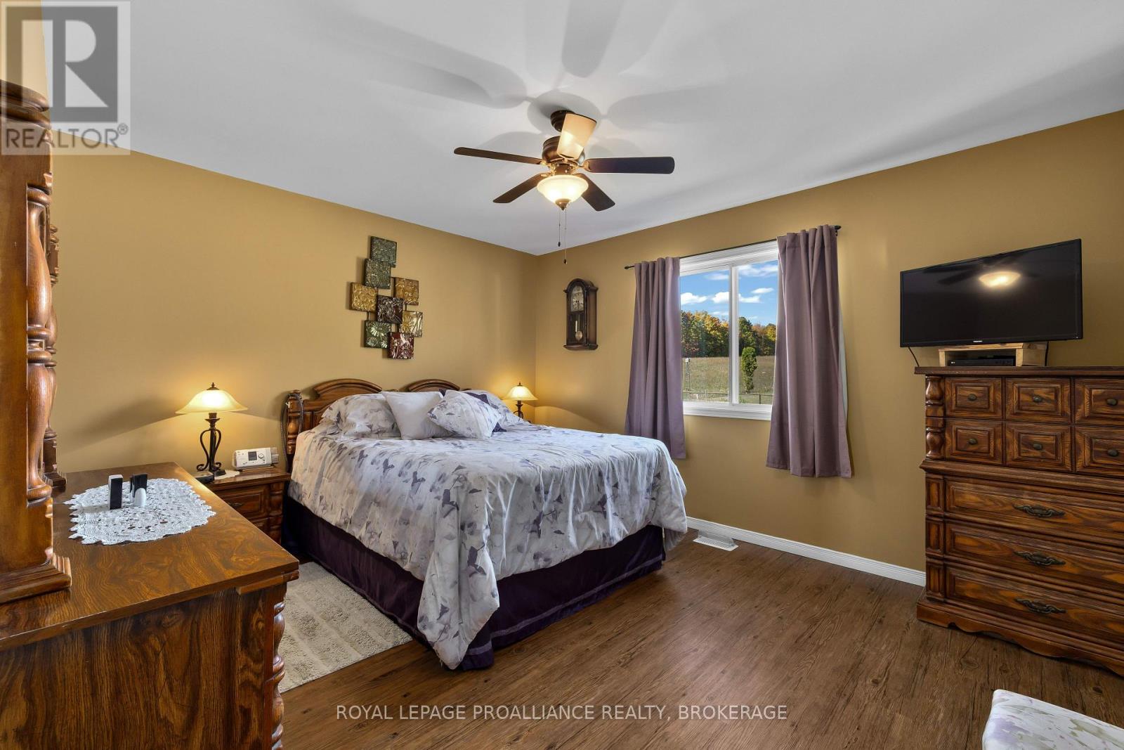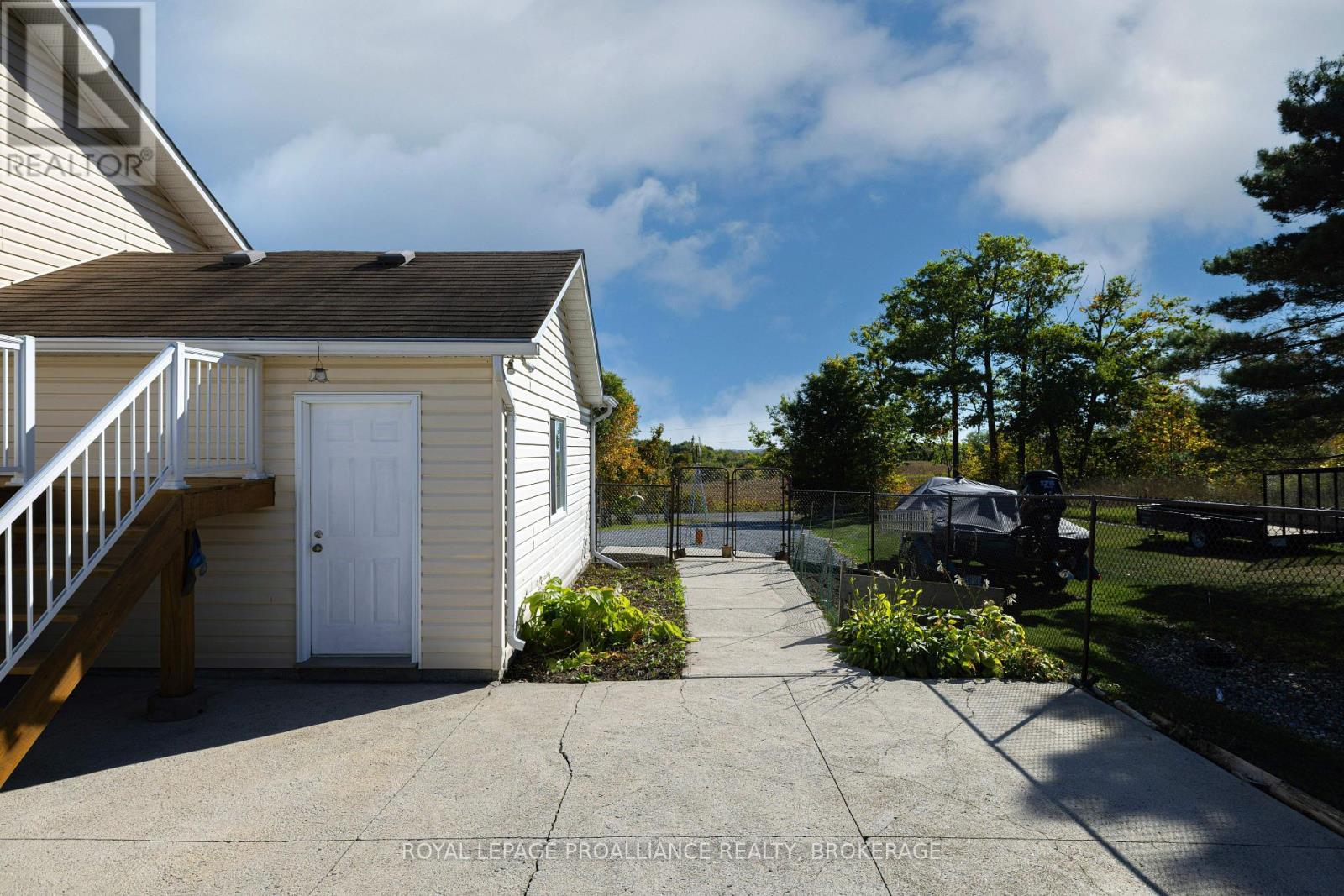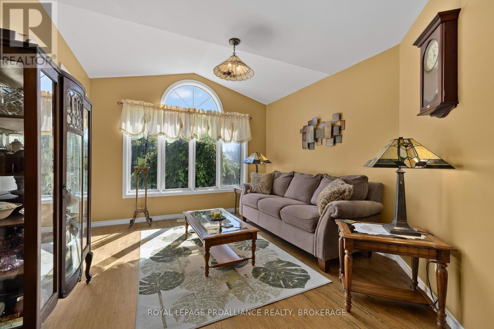 Beautifully updated and meticulously maintained raised bungalow, set on a private and manicured one-acre lot just five minutes north of the 401. Offering 2,000 square feet of finished living space, this wonderful family home features 2+2 bedrooms, 2 full bathrooms, formal dining room, a main floor family room, a bright solarium and a lower level rec/media room warmed by a cozy propane stove. Recent updates include refinished kitchen and bathroom cabinetry, new countertops, updated flooring, a new above-ground pool and a custom screened-in sun-room designed for extended summer enjoyment. Positioned high above the road, the property offers sweeping views of rolling farmland and a peek of the Rideau waterway. Immaculately maintained with every detail thoughtfully cared for, this home is truly move-in ready. (id:64974)