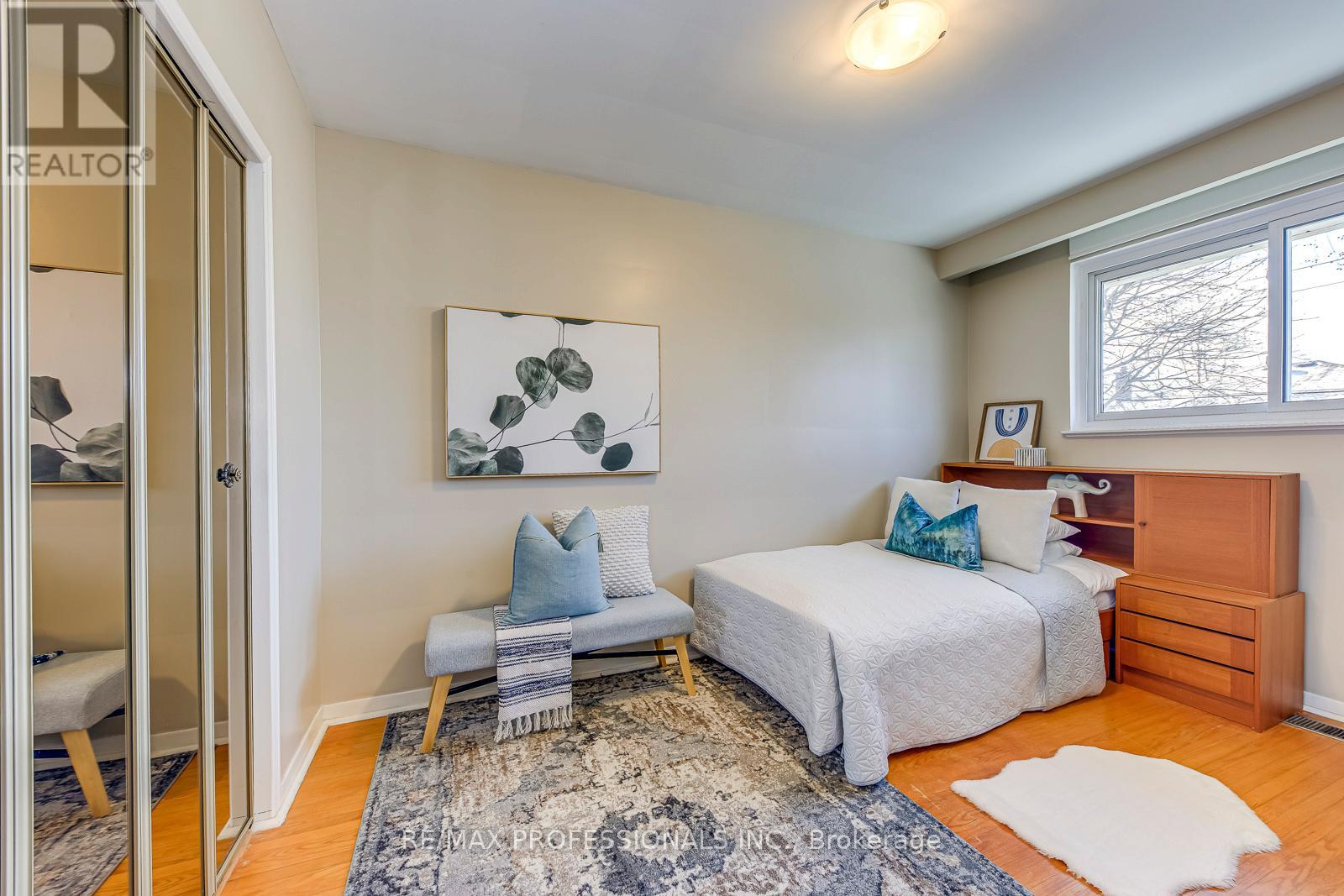 Situated in a desirable, family-friendly Etobicoke neighbourhood, this rare 4-bedroom, 2-bathroom 4-level backsplit offers a unique blend of space, functionality, and pride of ownership. Set on a pie-shaped lot that widens to an impressive 60 ft at the rear, the home showcases beautiful curb appeal, a manicured exterior, and an inviting presence from the moment you arrive. A large front porch provides the perfect spot to relax, enjoy your morning coffee, or take in the neighbourhood. Inside, a welcoming front entrance with a spacious closet leads into bright and comfortable living spaces. The living room features a charming bay window that fills the home with natural light, while the thoughtful multi-level layout offers flexibility for growing families. Impeccably maintained and move-in ready, the home also offers a fantastic opportunity to personalize and modernize to your own style over time. The interlock driveway and 1-car garage with high ceilings provide both convenience and practicality. The backyard is a private, secure, and shaded retreat-perfect for kids, social gatherings, or gardening. Ideally located just steps to transit with a direct connection to the subway, as well as schools including the highly regarded Michael Power-St. Joseph High School, Centennial Park, grocery stores, and local shops. Commuting is convenient with quick access to highways 427 and 401, allowing for a smooth, efficient drive into downtown Toronto (20 minutes) with minimal traffic lights along the way, while also offering easy access to Sherway Gardens and Pearson Airport. This home offers the perfect balance of space, comfort, and everyday convenience. (id:64974)