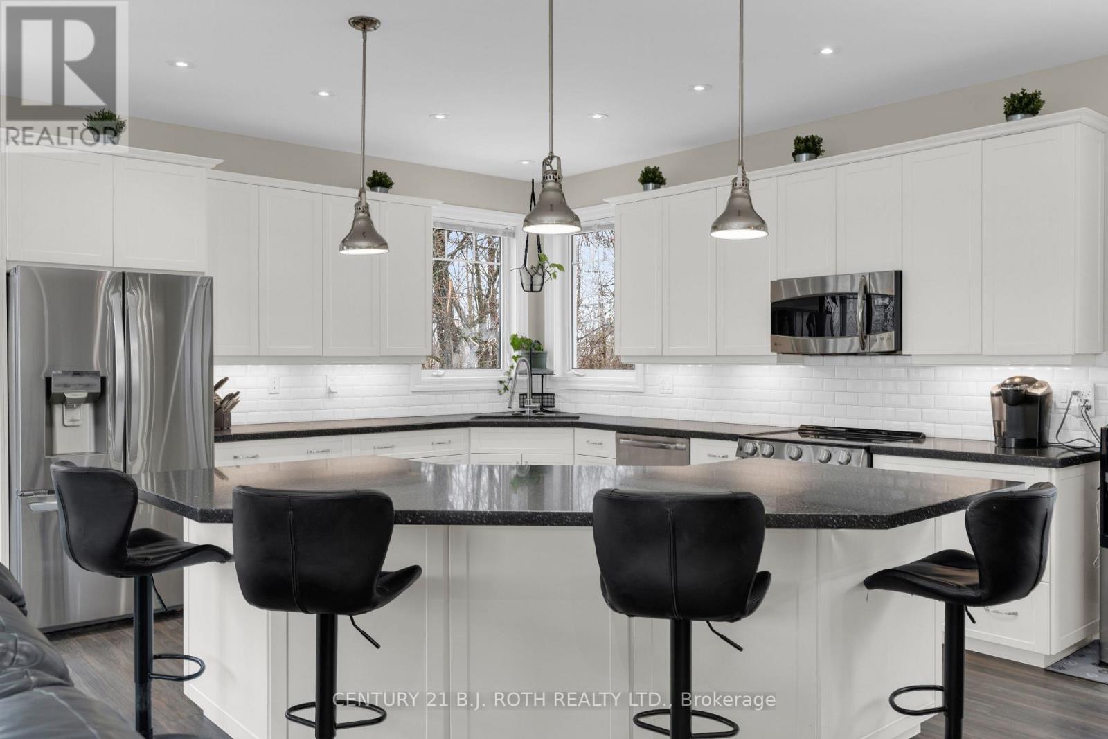 Welcome to your private hillside retreat in the heart of Horseshoe Valley. Set on over 6 acres and perched beautifully above the surrounding landscape, this 4 bedroom, 3 full bathroom home offers stunning elevated views, exceptional privacy, and a peaceful natural setting surrounded by forest and trails. The home features approximately 2,000 sq ft of bright main floor living space and a fully finished walk-out basement, offering nearly 4,000 sq ft of total living space, making it ideal for families, multi-generational living, or those looking for space and flexibility. Inside, the home offers a bright open-concept layout flooded with natural light, along with two full kitchens and a fully self-contained in-law suite, perfect for extended family, guests, or potential income. A standout feature of this property is the two-level garage setup, including an attached double-car garage plus a lower third bay ideal for a workshop, storage for recreational vehicles, or the perfect hobby space. The property itself is designed for outdoor living with over 6 acres of land, private trails, a fenced area ideal for kids and pets, and additional landscaping including perennial gardens, cedar trees, and lilac bushes, creating a beautiful and private outdoor setting. Relax and unwind in the brand new Jacuzzi hot tub, perfectly positioned to enjoy the peaceful surroundings and country nights. Recent updates include A/C (2022), fencing (2022), Lifestyle garage screen (2022), new main floor fridge (2023), new stove (2026), and a brand new Jacuzzi hot tub (2025). Located just minutes to Horseshoe Resort, Vetta Nordic Spa, the brand new Horseshoe Valley Public School, golf courses, trails, Barrie, and Orillia, this property offers the perfect balance of privacy, space, views, and convenience in one of Oro-Medonte's most desirable areas. (id:64974)