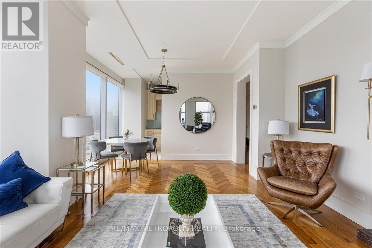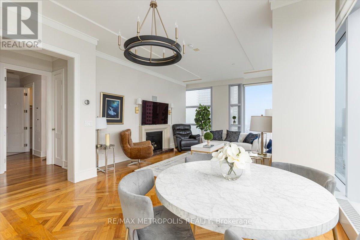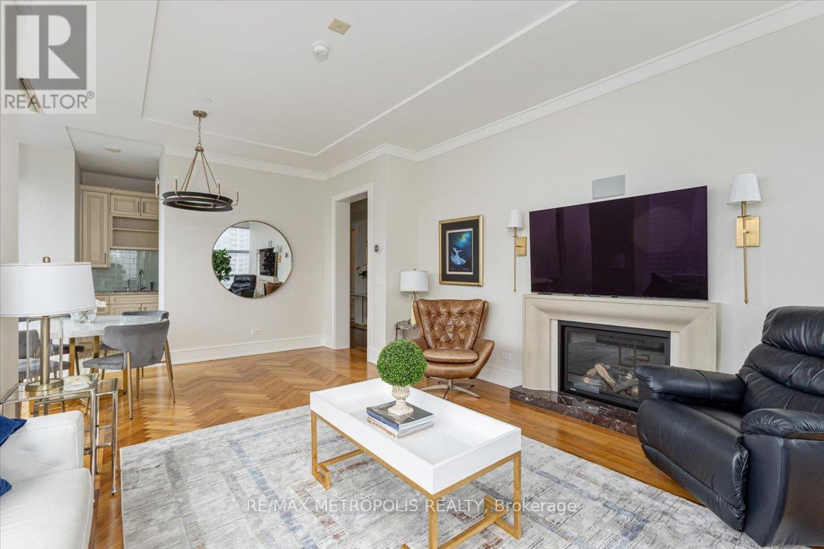 Welcome to refined living at the Private Residences of The Ritz-Carlton. This beautifully appointed, fully furnished 2-bedroom, 2-bathroom residence offers an elegant layout designed for comfortable everyday living and sophisticated entertaining. Positioned on a high floor, expansive floor-to-ceiling windows fill the home with natural light while framing sweeping views of Toronto's skyline. Inside, timeless design meets modern comfort with rich hardwood flooring, coffered ceilings, and a striking fireplace anchoring the open-concept living and dining area. The chef-inspired kitchen is thoughtfully designed with classic cabinetry, stone countertops, premium appliances, and generous storage.The primary suite serves as a private retreat, featuring a spacious walk-in closet and a spa-inspired ensuite with heated floors. The second bedroom offers comfortable accommodations for family or guests, complemented by a well-appointed second full bathroom. Living at The Ritz-Carlton Residences offers a level of service rarely found in the city. Residents enjoy a private entrance with 24-hour concierge, doorman, and valet services, or can enjoy dining and cocktails at TOCA Italian Restaurant, The Ritz Bar, or Epoch Bar & Kitchen Terrace. Residents can also arrange hotel services, including spa treatments at My Blend by Clarins, personal training, in-residence dining, catering, and housekeeping. Enjoy five-star amenities including a private residence sky lobby, world-class spa, fitness centre, and indoor pool. Perfectly positioned in the heart of Toronto's Financial, Entertainment, and Theatre Districts, the residence sits across from the Toronto International Film Festival Headquarters (TIFF), Princess of Wales Theatre, Royal Alexandra Theatre, and Roy Thomson Hall, along with Toronto's finest dining, entertainment, and nightlife. Close to Toronto's PATH system, connecting you throughout the downtown core. (id:64974)