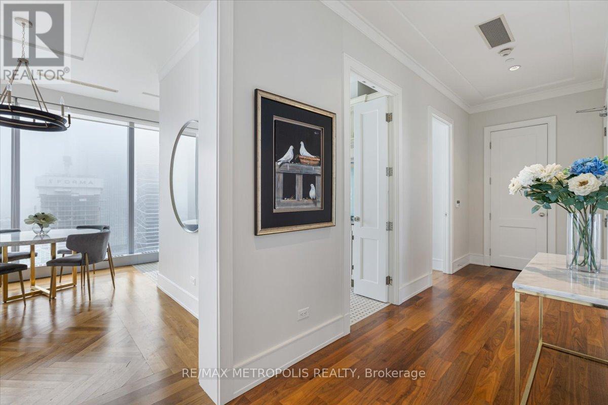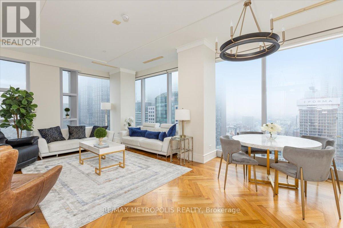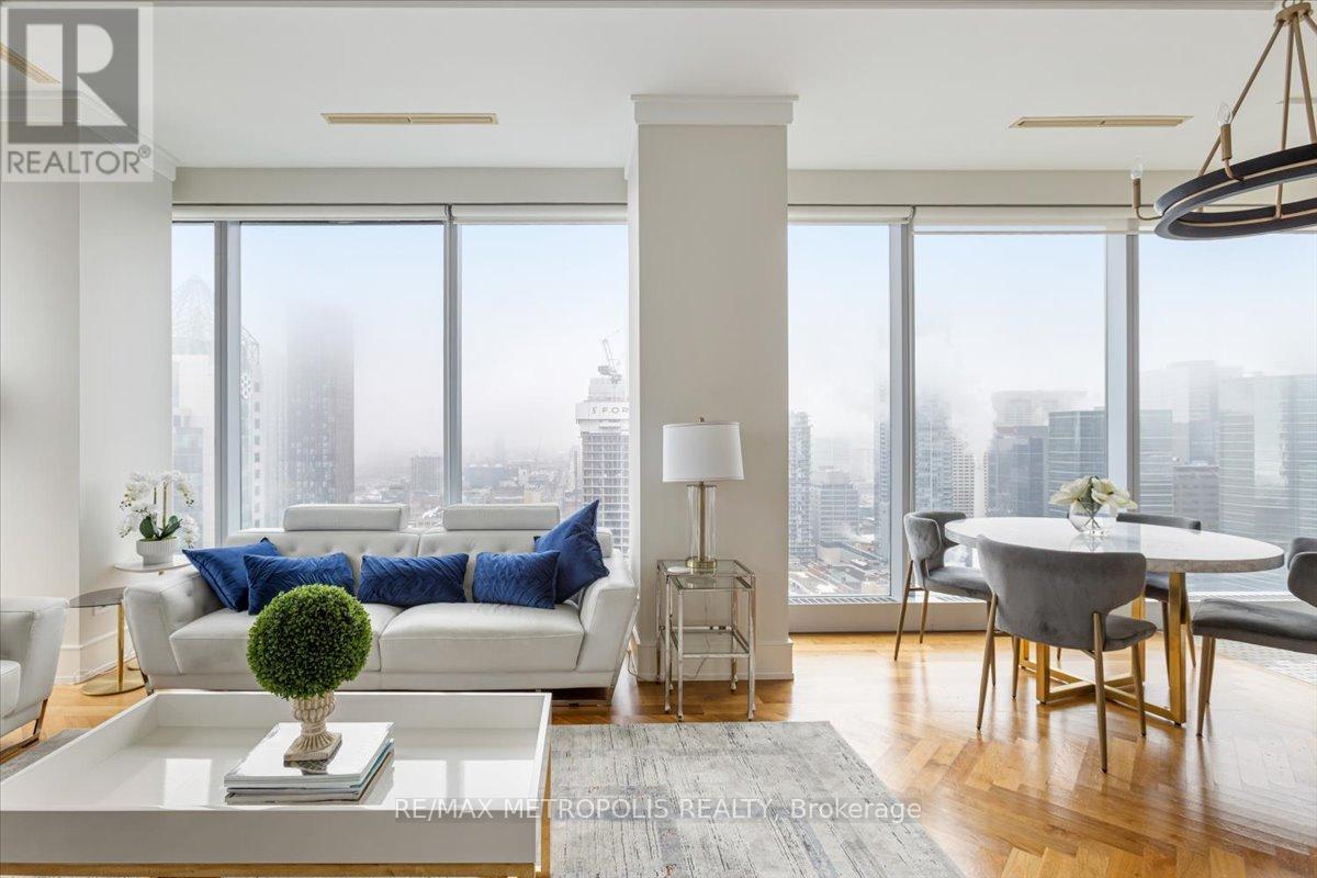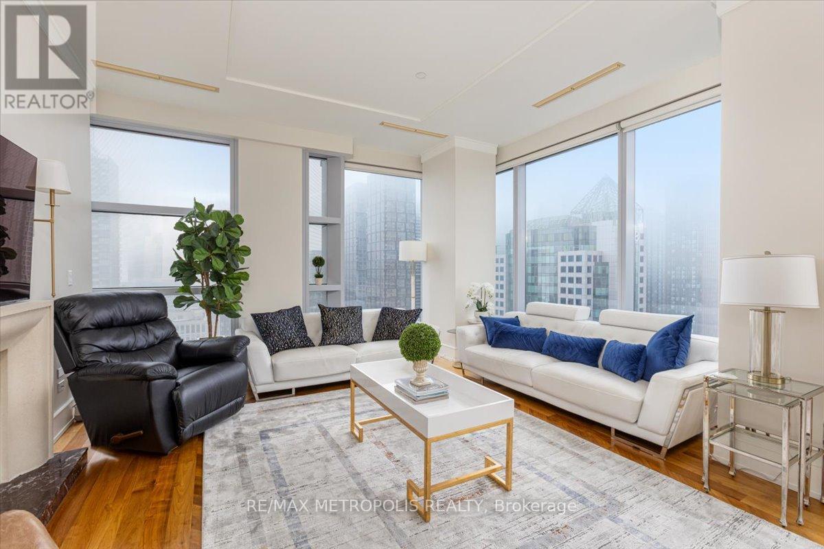 Welcome to refined living at the Private Residences of The Ritz-Carlton. This beautifully appointed, fully furnished 2-bedroom, 2-bathroom residence offers an elegant layout designed for comfortable everyday living and sophisticated entertaining. Positioned on a high floor, expansive floor-to-ceiling windows fill the home with natural light while framing sweeping views of Toronto's skyline. Inside, timeless design meets modern comfort with rich hardwood flooring, coffered ceilings, and a striking fireplace anchoring the open-concept living and dining area. The chef-inspired kitchen is thoughtfully designed with classic cabinetry, stone countertops, premium appliances, and generous storage.The primary suite serves as a private retreat, featuring a spacious walk-in closet and a spa-inspired ensuite with heated floors. The second bedroom offers comfortable accommodations for family or guests, complemented by a well-appointed second full bathroom. Living at The Ritz-Carlton Residences offers a level of service rarely found in the city. Residents enjoy a private entrance with 24-hour concierge, doorman, and valet services, or can enjoy dining and cocktails at TOCA Italian Restaurant, The Ritz Bar, or Epoch Bar & Kitchen Terrace. Residents can also arrange hotel services, including spa treatments at My Blend by Clarins, personal training, in-residence dining, catering, and housekeeping. Enjoy five-star amenities including a private residence sky lobby, world-class spa, fitness centre, and indoor pool. Perfectly positioned in the heart of Toronto's Financial, Entertainment, and Theatre Districts, the residence sits across from the Toronto International Film Festival Headquarters (TIFF), Princess of Wales Theatre, Royal Alexandra Theatre, and Roy Thomson Hall, along with Toronto's finest dining, entertainment, and nightlife. Close to Toronto's PATH system, connecting you throughout the downtown core. (id:64974)