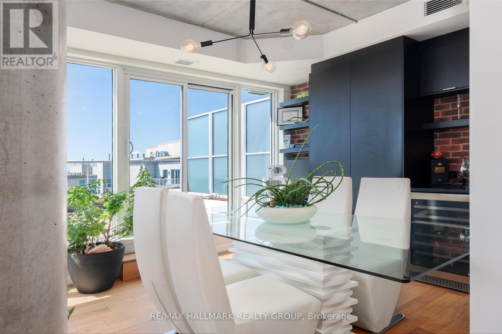 Claridge Plaza Phase 4 The Tribeca Penthouse Welcome to elevated living in the heart of downtown Ottawa. This stunning 2 bed + den, 2 bath penthouse offers an exceptional blend of luxury, comfort, and functionality with 1,415 sq ft of thoughtfully designed interior space and an impressive 480 sq ft private terrace showcasing panoramic views of the city skyline.Step inside to discover a bright, open-concept layout highlighted by floor-to-ceiling windows that flood the space with natural light. Rich hardwood flooring flows seamlessly throughout, adding warmth and sophistication to the contemporary design. The sleek, modern kitchen is a chefs dream complete with quartz countertops, stainless steel appliances, custom cabinetry, and an oversized island ideal for meal prep, casual dining, or entertaining guests.The spacious primary bedroom features generous closet space and a spa-inspired ensuite, while the second bedroom offers flexibility for family or guests. A separate den adds even more versatility, making it perfect for a home office, or a reading nook. Two beautifully appointed bathrooms round out the interior with premium finishes and timeless appeal. Located in the highly sought-after Claridge Plaza Phase 4, residents benefit from access to top-tier amenities including a fitness centre, rooftop terrace, party room, and 24/7 concierge service. For added convenience, this penthouse includes one underground parking space and a private storage locker. Don't miss this rare opportunity to own the prestigious Tribeca floor plan a perfect blend of style, space, and low-maintenance luxury living in the vibrant core of the city. CONDO FEES INCLUDE: Water , A/C, Heat, Building Insurance, Building Maintenance, Garbage Removal, Snow Removal, Common Areas Maintenance, Reserve Fund Allocation. Parking spot: P1 5, Storage Locker: Door behind the parking spot (id:64974)