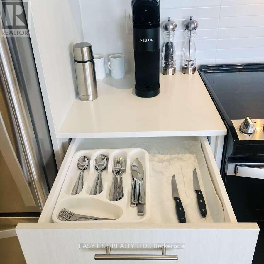 *** Visit the REALTOR website for further information about this Listing *** Linx Condo sub-penthouse on the 27th floor offers 3 bedrooms and 2 full bathrooms with a split-bedroom layout, 9-ft ceilings, and floor-to-ceiling windows. A 21-ft private balcony showcases panoramic city, park and lake views. The kitchen features quartz countertops with a porcelain backsplash, valance lighting, and full-size stainless steel appliances including a 30" fridge, 30" slide-in range, combo hoodfan/microwave, and 24" paneled dishwasher. Bathrooms include a marble countertop with integrated basin, 12"x24" porcelain floor and wall tiles, deep soaker tub, frameless glass shower enclosure, chrome low-flow fixtures, and a modern timed exhaust fan. In-suite laundry provides a high-efficiency front-loading washer and dryer. Mechanical systems include an individually controlled fan-coil HVAC with integrated ERV, on-demand heating/cooling, and individual hydro and water metering. Lighting/electrical details include 3-way track lighting in the kitchen, and white Decora-style receptacles and switches. Security/technology highlights include a 24-hour concierge with monitored cameras, Category 5 wiring to principal rooms, and high-speed fibre internet included in the maintenance fees (Rogers Ignite 500u, unlimited usage). Smart-living features (via the building app) include suite lock capability, app-integrated fob access, in-app video intercom, two smart thermostats, automated parcel lockers, and direct messaging to property management. Amenities include a gym and yoga room, resident lounge and co-working areas, children's play spaces, outdoor terrace with BBQs, party/entertainment lounge, ping-pong/recreation area, guest suites, pet washing station, and automated garbage/recycling on each floor. Prime location with a Transit Score of 97: steps to Main Street Subway, TTC buses/streetcars, GO Train, and a wide range of restaurants, shops, parks, and recreation. (id:64974)