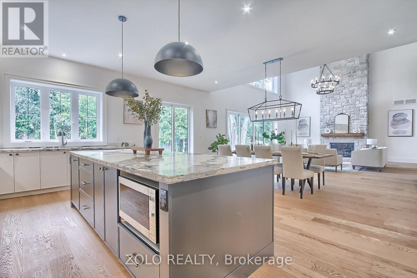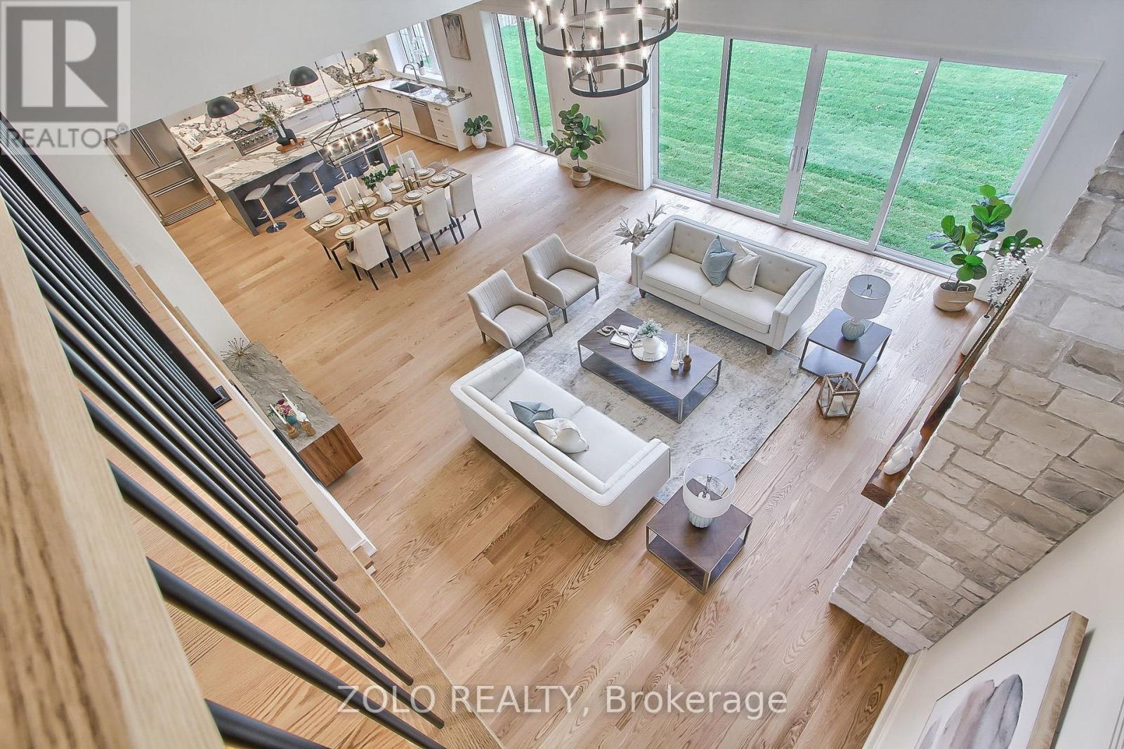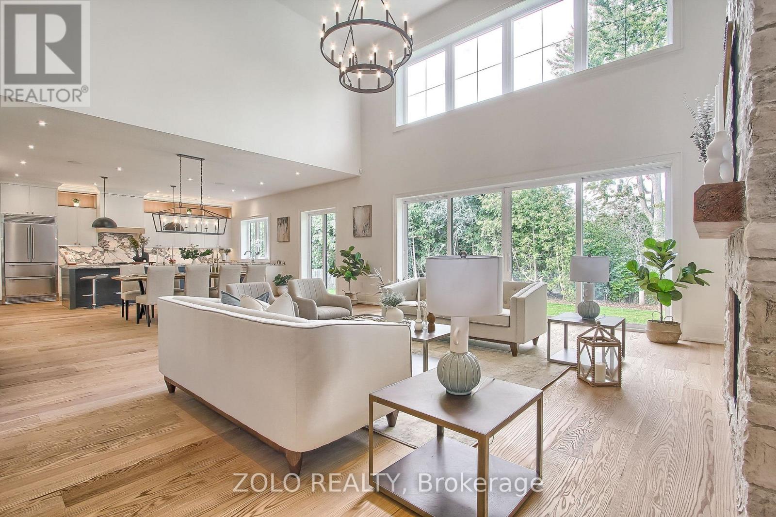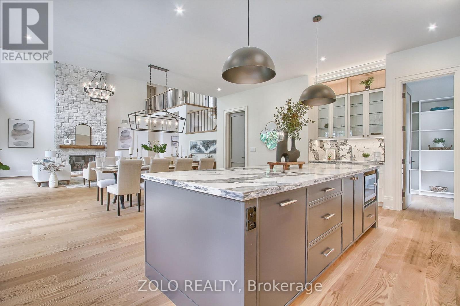Steps from Lake Simcoe, this custom built masterpiece combines cutting-edge construction with timeless design. Offering approx. 6,800 sq ft of finished living space, the home is built entirely with ICF (Insulated Concrete Form) from the foundation up-delivering exceptional energy efficiency, superior durability, and whisper-quiet comfort. Multi-zone hydronic heating and dual-zone cooling maintain consistent temperatures throughout, making the home more efficient than many properties a fraction of its size. With 4,100 sq ft above grade, every detail has been thoughtfully curated to elevate everyday living. Top 5 Features We Love: 1) The Great Room - 20 ft ceilings, a floor-to-ceiling limestone fireplace, and 16 ft sliding glass doors that create a seamless indoor-outdoor connection. 2) Designer Kitchen - 10 ft centre island, gas range with pot filler, quartz counters/backsplash, walk-in pantry, and built-in stainless steel appliances. 3) Light-Filled, Airy Layout - 10 ft ceilings on the main level and 9 ft ceilings upstairs for an open yet inviting feel. 4) Multi-Zone Heating & Cooling - Hydronic in-floor heating and zoned climate control for warm toes, cool summers, and low utility costs.5) Main Floor Primary Suite - A luxurious retreat with a spa-like ensuite featuring a frameless glass shower, freestanding soaker tub, heated floors, double vanity, premium finishes, and a generous walk-in closet. Bonus Features: Large main floor office/additional bedroom space. Oversized second primary bedroom with ensuite & walk-in closet, 3-car drive-thru garage with direct basement access, 10" baseboards, 8' doors, 100+ LED pot lights, Open-concept upper-level balcony lounge, Walk-in linen closet, EV charger rough-in. And so much more. A passion project by a top GTA premium builder, offering rare construction quality and exceptional value. **Staging furniture has been removed.** (id:64974)