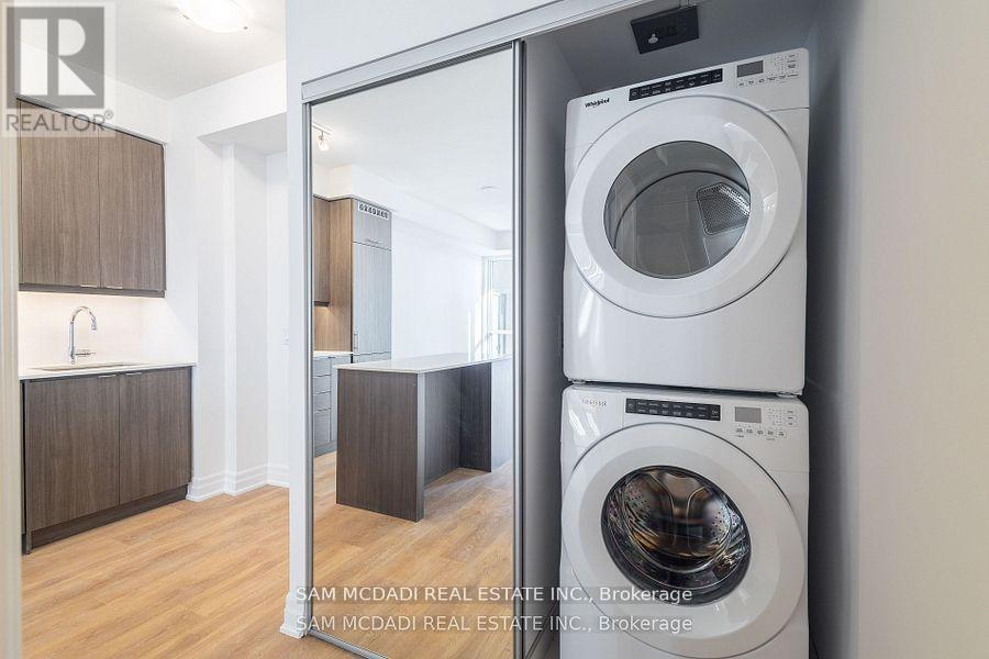 Welcome to this stunning 1-bedroom condo located in the vibrant Mississauga City Centre! This modern unit features an open-concept layout with a spacious living area that extends to a private balcony, perfect for enjoying your morning coffee or evening views. The sleek kitchen boasts built-in appliances, quartz countertops, and ample storage, making it both functional and stylish. The kitchen island is also movable allowing for changes. The 4-piece bathroom is beautifully designed for comfort and relaxation. This condo comes with 1 parking spot and 1 locker for added convenience. Situated in a prime location, you're steps away from world-class shopping, top-rated restaurants, public transit, and easy access to major highways. Perfect for first-time buyers, young professionals, or investors, this condo combines style, comfort, and unbeatable location. Don't miss your chance to own this gem! (id:64974)