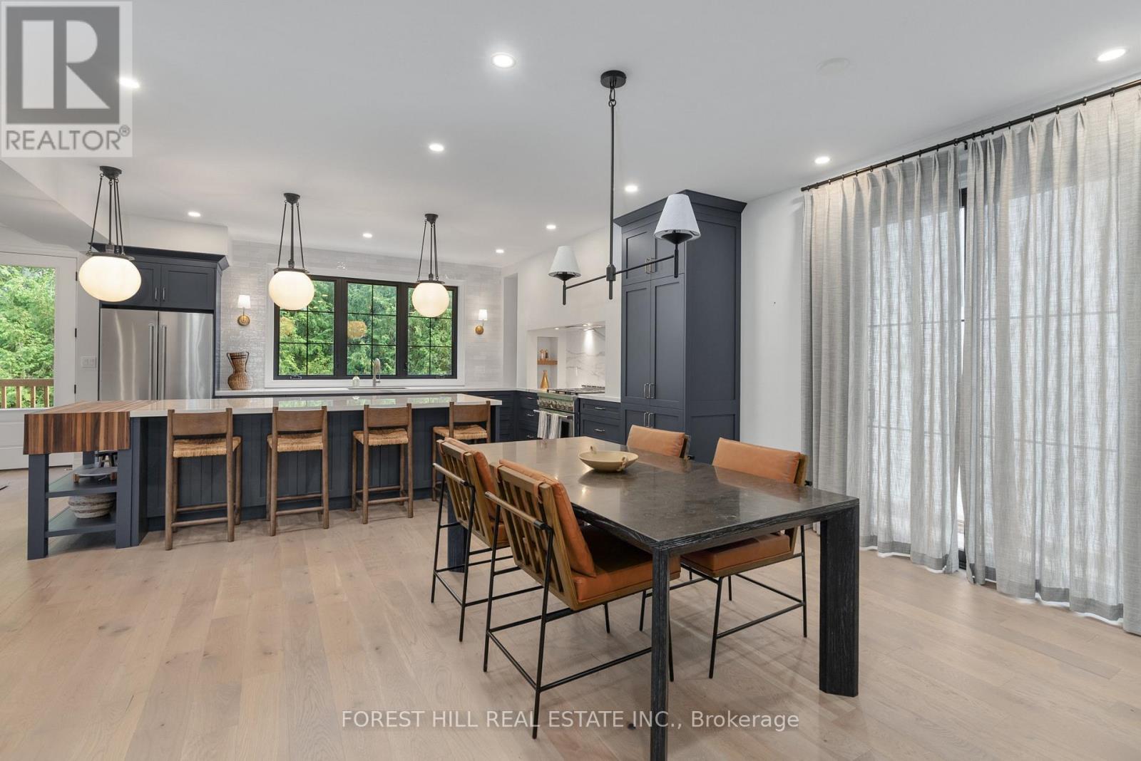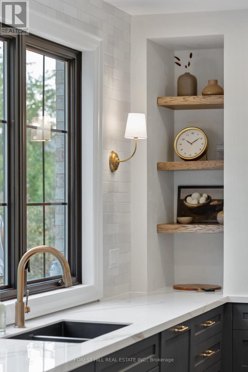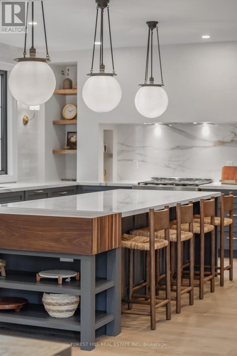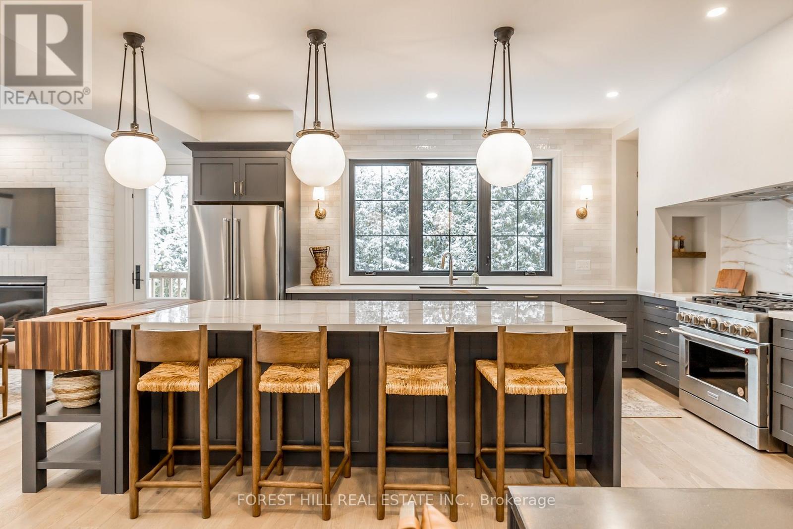 A fully furnished, turnkey residence offered in one of Barrie's finest neighbourhoods, this cozy yet luxurious home is truly a masterpiece. Designed for effortless living, it offers a rare combination of sophisticated style, thoughtful functionality, and maintenance-free comfort. Fall in love with the innovative design and exceptional craftsmanship of this curated home, where every detail has been carefully selected to create a harmonious balance of elegance and warmth. At the heart of the home is a show-stopping kitchen, featuring an oversized island finished in Handstone Quartz with a striking walnut butcher-block accent. Designed for both family living and entertaining, the space includes a custom range, designer lighting and a fully equipped bar and coffee station.The open-concept layout flows seamlessly into the inviting front living room, anchored by a cozy Napoleon fireplace, while the generous dining room offers an additional walkout-perfect for indoor-outdoor entertaining. A large main-floor laundry room blends refined design with exceptional practicality.Upstairs, the second level offers four spacious bedrooms and three beautifully appointed bathrooms. The private primary suite is a true retreat, tucked into its own wing with vaulted ceilings, a fireplace, a luxurious freestanding tub, and a custom walk-in closet with built-ins.The fully finished basement adds outstanding versatility with a spacious family room, a full bathroom, and an additional flex area ideal for a potential bedroom, home office, or home gym.Outside, the yard is quaint, private, and low-maintenance, providing a peaceful outdoor escape. Ideally located just a short stroll to the lake, walking trails, scenic parks, and shopping, this exceptional home delivers the ultimate blend of luxury, lifestyle, and location. (id:64974)