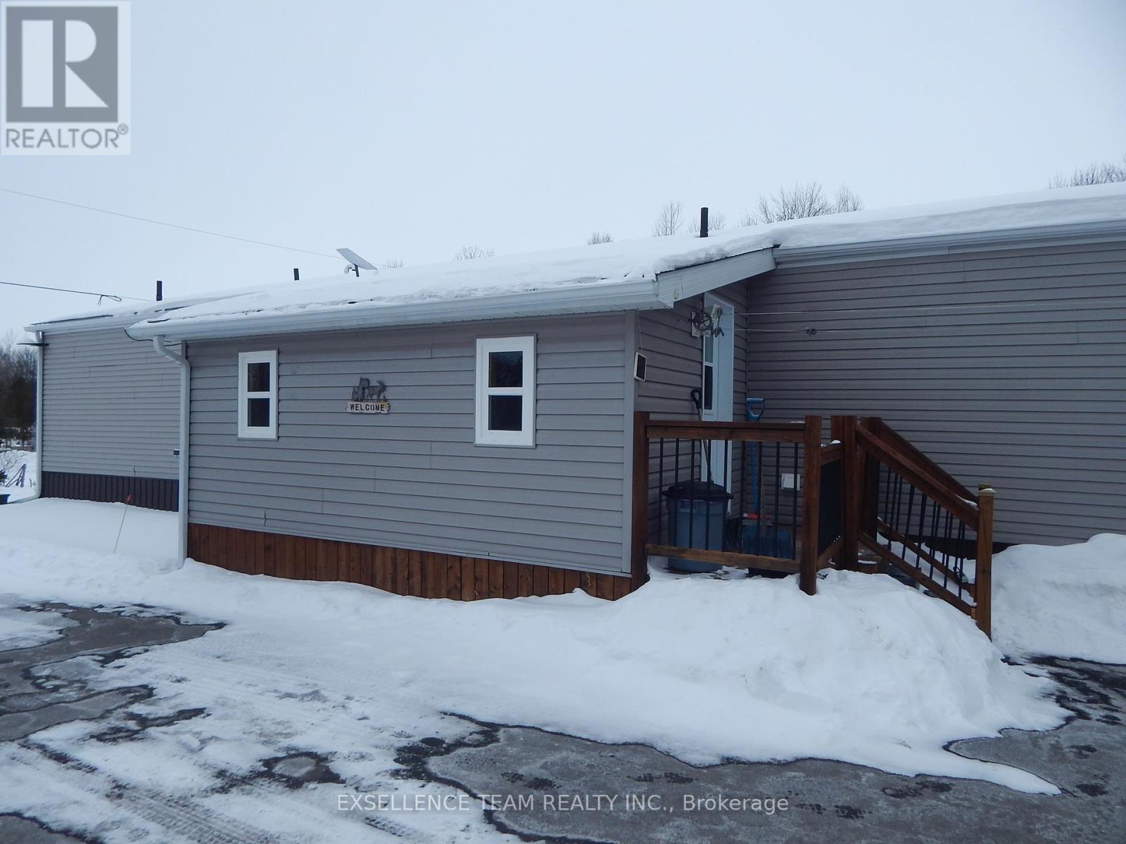 Welcome to this impeccably maintained 2019 modular home, ideally located less than one kilometer from Highway 138-perfect for commuters traveling to Ottawa, Montreal, or Cornwall. Set within a quiet and peaceful rural subdivision, this home offers 1,104 sq. ft. of original modular living space, plus a thoughtfully added fully insulated mudroom/den that brings the total living area to approximately 1,240 sq. ft. Step inside to a warm and inviting open-concept layout featuring the living room, dining area, and kitchen-ideal for both everyday living and entertaining. The kitchen is well-appointed with ample cupboard space, a large island with bar seating, and a dedicated coffee bar area. Patio doors lead to a 10' x 10' side-yard deck, where you can relax and enjoy the abundance of surrounding nature. The side yard also features a beautiful 10' x 12' screened-in gazebo, perfect for outdoor enjoyment in comfort. The spacious primary bedroom easily accommodates a king-size bed and includes a lovely 3-piece ensuite with an extra-wide sit-down shower. A 4-piece main bathroom is conveniently located near the living area and second bedroom. For your year round comfort Heating and cooling is provided by a Forced Air Propane Furnace and a Central Air Conditioning system. Completing the property is a detached 14' x 28' garage, fully insulated and heated with a propane suspension furnace. The home is equipped with 200-amp electrical service, and for added peace of mind, a Generac backup generator that fully supports the property during power outages. A paved driveway adds both convenience and curb appeal. Multiple garden beds are in the side yard waiting for your personal touch this spring. This truly move-in-ready home offers comfort, functionality, and reliability. The land lease includes well and sewage services, making for easy, worry-free living. (id:64974)
