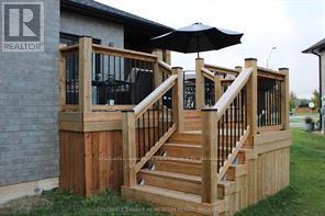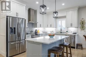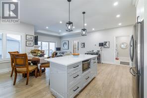 END UNIT FREEHOLD BUNGALOW TOWNHOME!! This modern & luxurious home is located in the desirable Westwood Estates just minutes from Lake Erie. Newly installed deck (2025), aggregate concrete driveway (2024) and california shutters (2024). Built by a reputable local Niagara builder, you will not be disappointed with the quality and high end finishes including engineered hardwood flooring, 9 foot ceilings & pot lighting. The unique upscale board and batten Hardie board siding and brick exterior is complimented with a welcoming extra wide front stairs and black aluminum railing. Entering the home you are greeted with a bright front foyer leading you to the open concept main floor. The kitchen features gorgeous cabinetry, quartz countertops, an island and stainless steel appliances. The living room boasts a tray ceiling, gas fireplace, and sliding doors with interior blinds to the backyard. Primary bedroom with tray ceiling, ensuite with double vanity, quartz counter, tile floors, walk in shower and spacious walk in closet. Second bedroom, 4 pc bath and laundry with custom sink and quartz counter conveniently located on the main floor. Put your personal touches to finish the basement already equipped with studded exterior walls, large windows and rough in for 4pc bath. Inside entry from garage, 200 amp panel and on-demand water system (owned). Don't miss out on this opportunity to own a freehold bungalow townhome in this prestigious neighbourhood!! *NOTE* Lot size irregular* (id:64974)