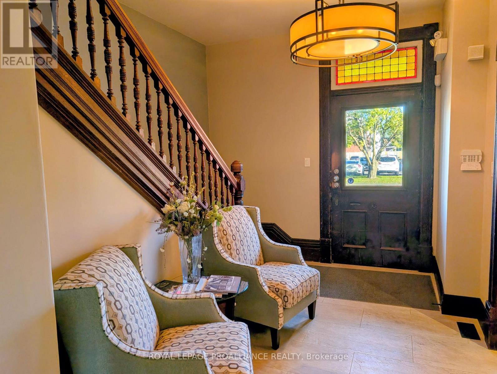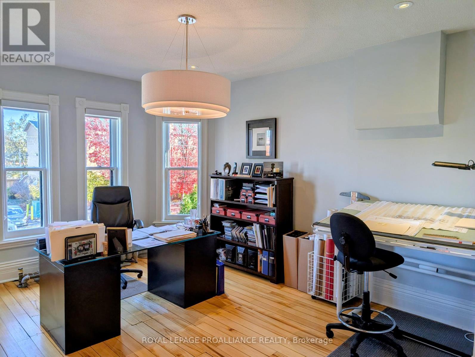 Located above one of Peterborough's most prominent & successful local design firms, lease the second floor of a beautifully restored century building, perfectly situated on the edge of downtown Peterborough. This setting provides a sophisticated, professional environment with character and convenience. The space features three bright and spacious private offices with abundant natural light, along with access to a modern, shared bathroom and a dedicated copier room maintained alongside the successful owner's design firm. You'll be steps away from the Kawartha Cardiology Clinic and surrounded by various other professional offices, with excellent visibility directly across from the Rubidge Retirement Home. On-site and on-street parking options are available, with all downtown amenities and public transit close by. This professional space was previously used as a law office, the space lends itself well to an independent lawyer, insurance firm, design professionals, engineers, financial planners, web or graphic designers, or another professional user seeking great space, with the added benefit of operating above a well-known local business that enhances credibility and local presence. The kind of address that elevates both your workflow and your client experience. (id:64974)