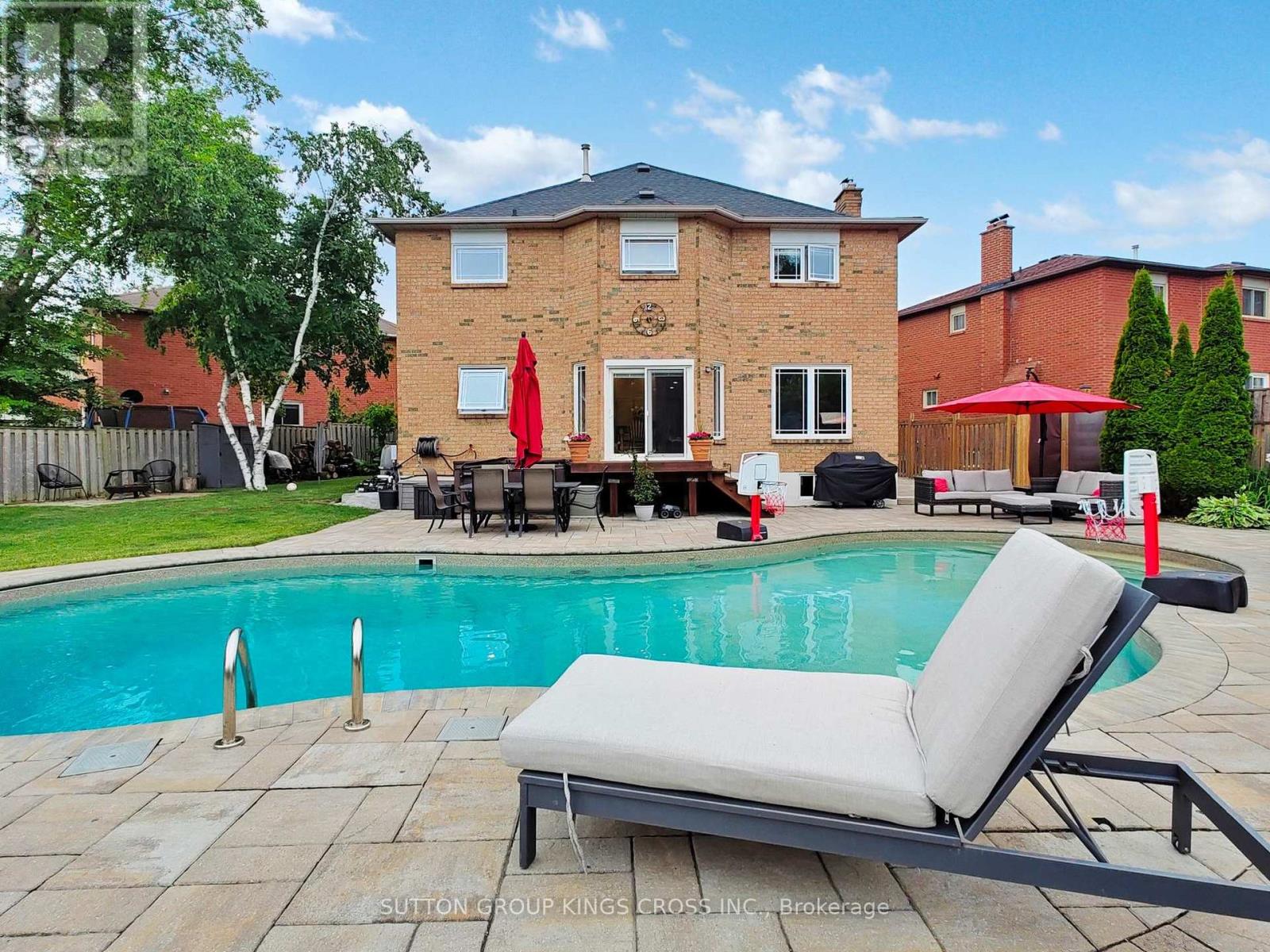 Welcome to this beautifully appointed 4+1 bedroom, 4-bathroom detached home on a rare oversized pie-shaped lot, tucked away on a quiet, family-friendly street. The stunning kitchen features an expansive center island, abundant cabinetry, gas range, and walkout to the backyard. Enjoy a professionally landscaped yard with a swimming pool and waterfall, multiple seating areas, green space, plus lawn and plant boxes with a sprinkler system for easy upkeep. The main floor includes two offices, a formal dining room, living room with backyard views, stylish powder room, and direct access to the double garage. Upstairs offers three spacious bedrooms and a primary retreat with walk-in closet and 4 piece ensuite. The finished basement includes a fifth bedroom, full bathroom, large recreation room with gas fireplace, and ample storage. Additional features: two-car garage, driveway parking for four, Nest home system, and close proximity to parks, transit, and top-rated schools. (id:64974)