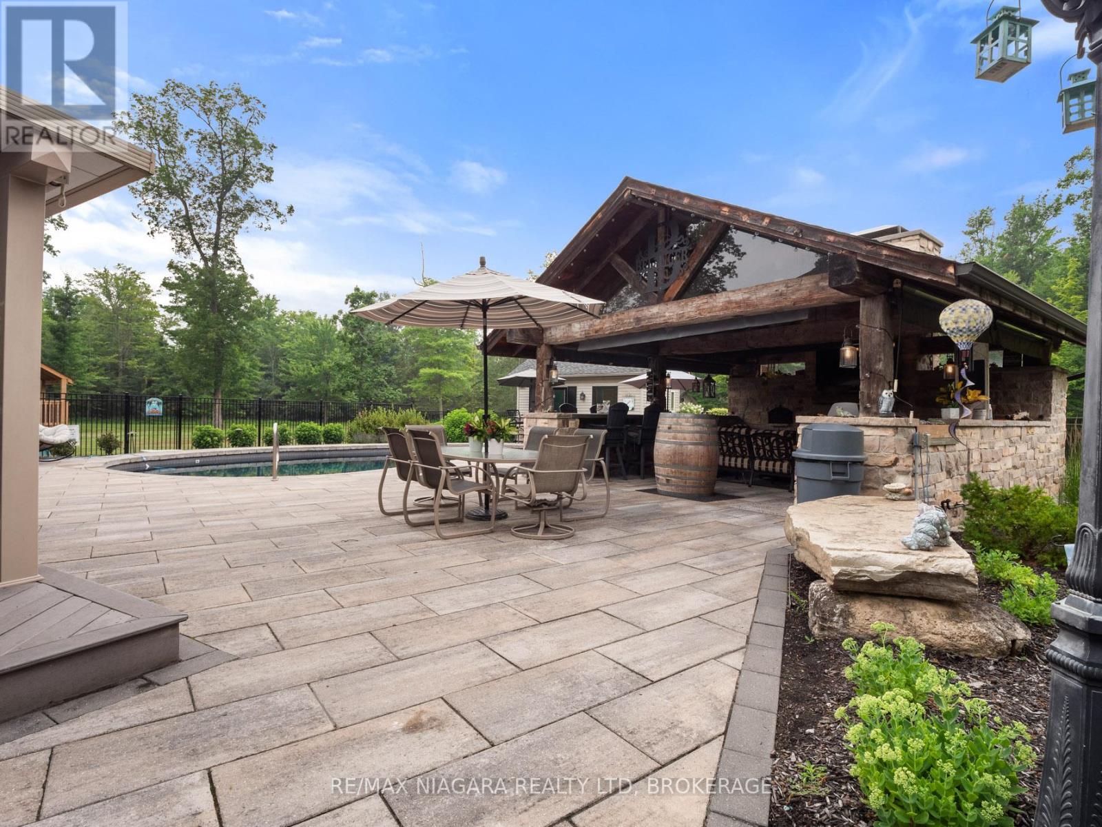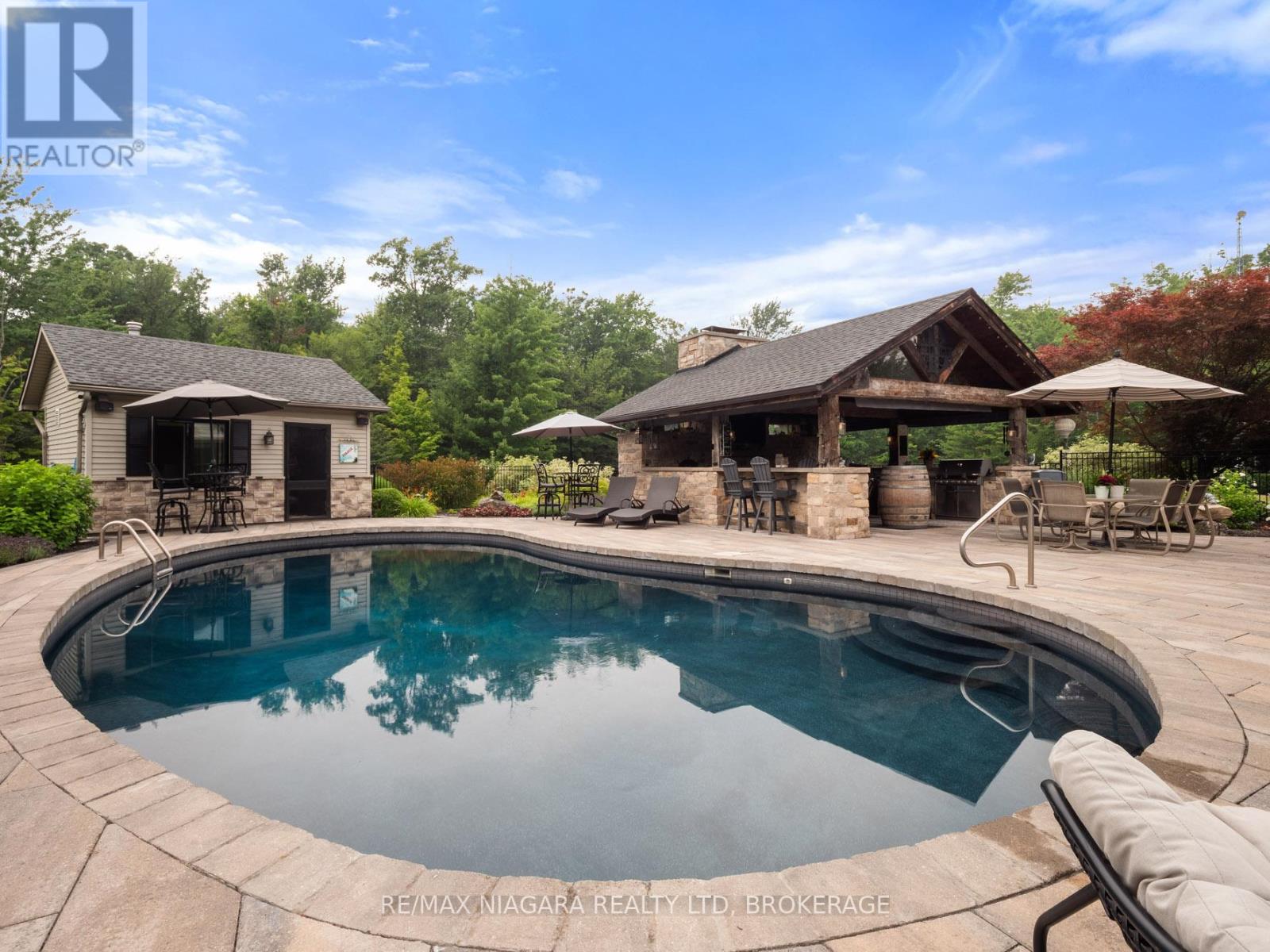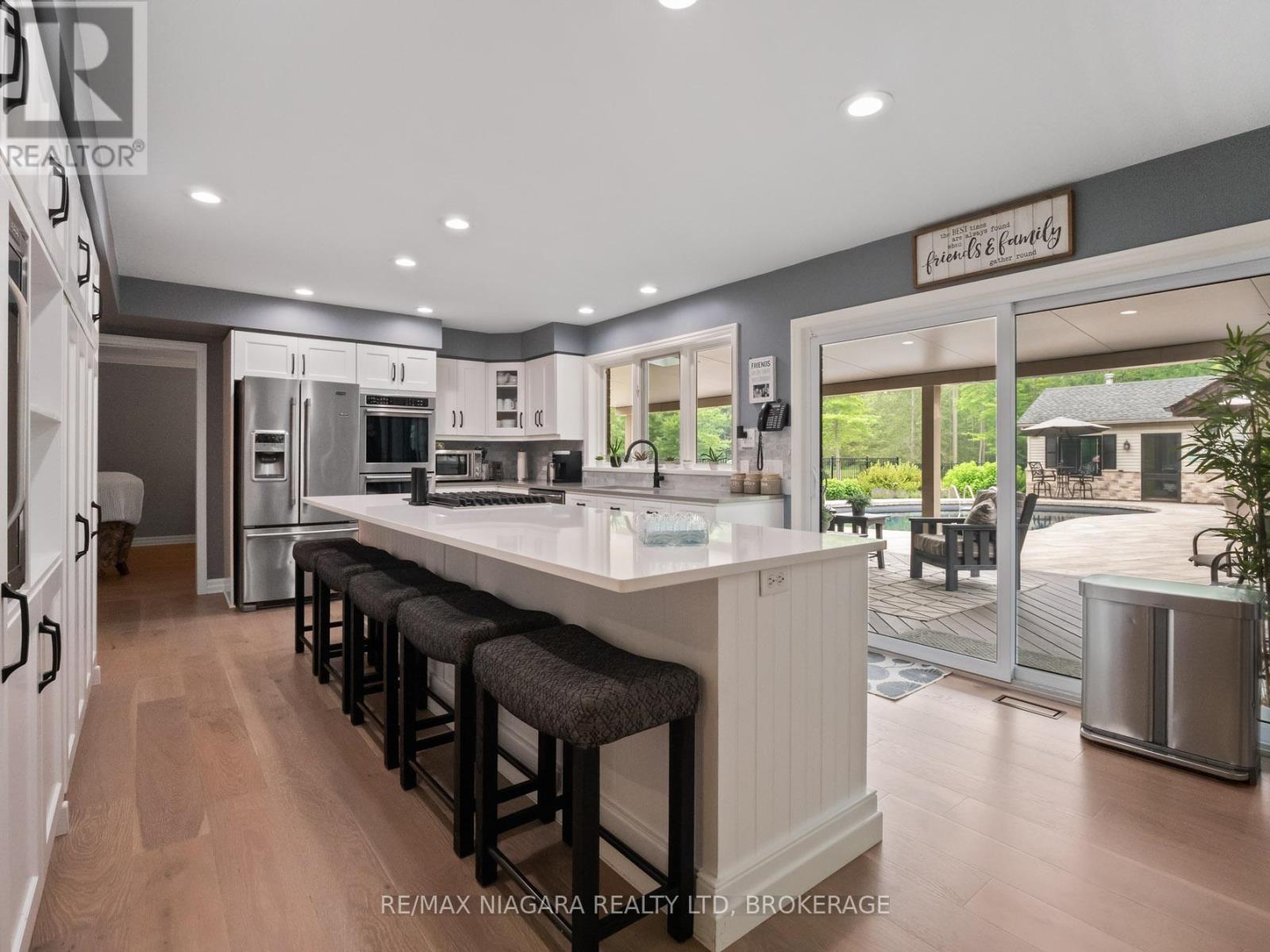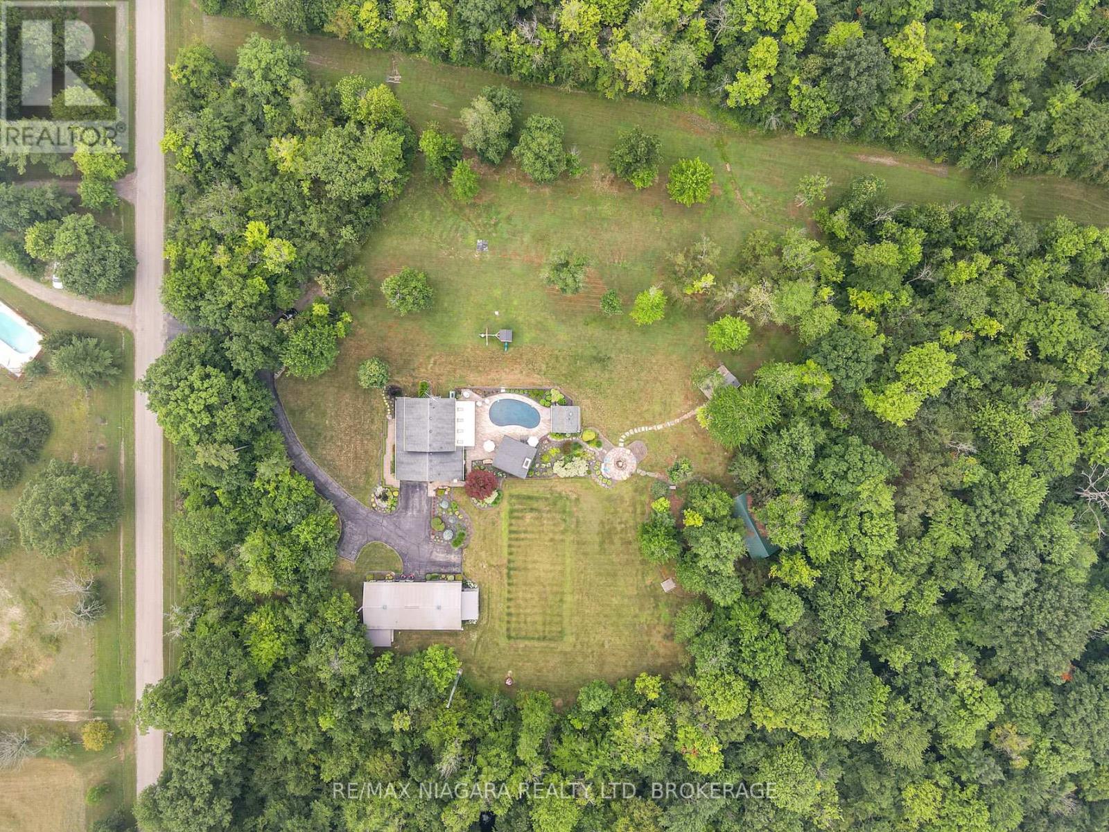 Experience the perfect blend of luxury, functionality, and rural tranquility at this meticulously maintained estate nestled on 10 scenic acres in the heart of Pelham. Located just 10 minutes from the QEW, this remarkable property offers the best of both worlds, peaceful country living with easy access to urban conveniences. The main residence features five spacious bedrooms, an upgraded kitchen with built-in appliances, and a warm, inviting main-floor family room. Engineered hardwood flooring was added in 2024, while custom blinds (2021) provide both style and comfort throughout the main level. A fully finished basement with a wet bar offers ideal space for entertaining or relaxing. Main-floor laundry and a two-car attached garage add to the home's everyday functionality. Step outside to a true outdoor oasis. The large covered front and rear porches provide year-round enjoyment, with the rear porch overlooking a refinished concrete inground pool (2019) featuring a new heater (2024). The pool house includes a convenient bathroom, and the Bose outdoor sound system creates an immersive entertainment experience. A custom gazebo showcases an outdoor kitchen, wood-burning fireplace, and commercial-grade heater, making it fully usable even during winter months. Pull-down patio blinds provide shade and comfort on sunnier days. Families will love the unique outdoor playhouse wired for electricity, TV, and music creating an imaginative retreat for children. A new fence was added around the pool in 2023 to ensure safety and privacy. The detached building is divided into two fully insulated and heated sections: one serves as a spacious workshop, while the other is a beautifully finished one-bedroom guest suite. Completed in 2020, the suite features on-demand hot water, its own furnace and A/C, and upgraded insulation (2024), making it an ideal in-law suite, multi-generational living space, Airbnb rental, or potential satellite office. Luxury Certified. (id:64974)