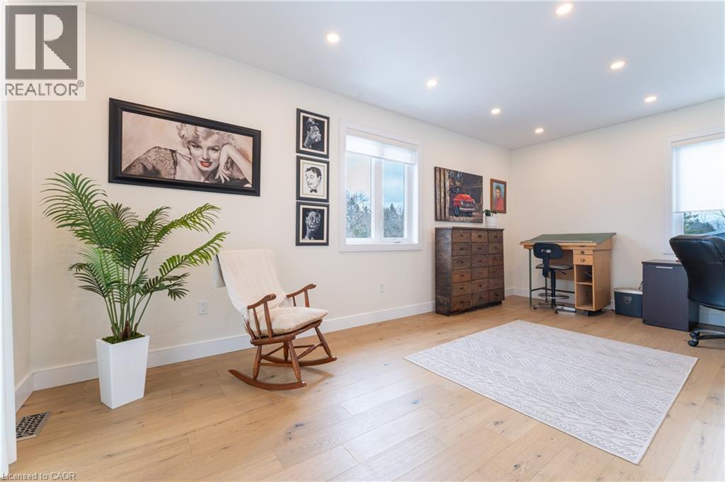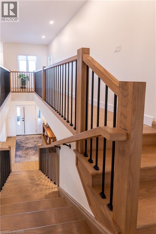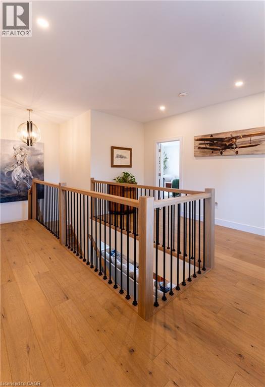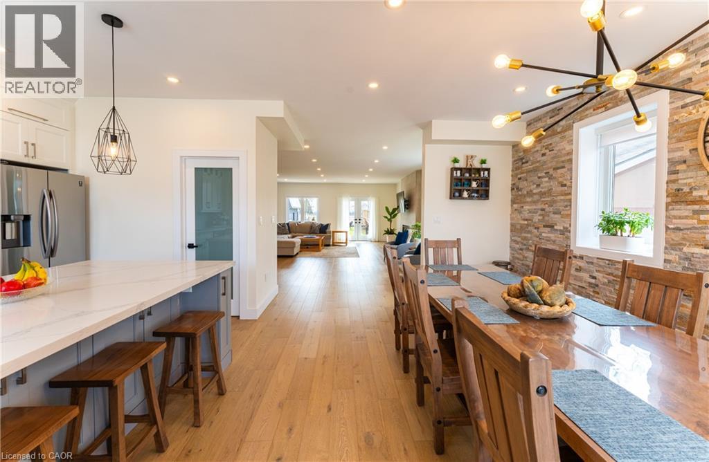 Experience refined living in this exceptional custom-built 4-bedroom, 3-bathroom home offering over 4,000 sq ft of finished living space, set on a private lot with no rear neighbours...Thoughtfully designed with elevated finishes throughout, this home showcases engineered hardwood flooring, soaring ceilings, abundant natural light, and elegant wrought iron railings... The designer kitchen and dining area are perfectly suited for hosting large family gatherings and entertaining, seamlessly flowing into a spacious living room that opens onto a cozy covered deck—ideal for indoor-outdoor living. The primary suite is a true retreat, featuring a stunning ensuite and a spacious walk-in closet.... laundry is also located on this level. The fully fenced yard invites quiet evenings, backyard fires, and family gatherings, all within a sought-after community where peaceful Sundays are accompanied by the gentle passing of horse and buggy traffic. Ideally located for convenient access to local meats, fresh produce, and artisan goods, this setting offers a lifestyle rooted in quality and connection.... The fully finished basement with a separate entrance provides exceptional versatility and impressive storage. Car enthusiasts and creatives alike will appreciate the oversized attached garage with capacity for a car hoist, along with a heated detached two-storey garage—perfectly suited as a workshop, hobby space, or private studio—complete with a separate hydro panel and 220V outlet... A rare offering that blends craftsmanship, lifestyle, and location—this is a home that truly stands apart... (id:64974)