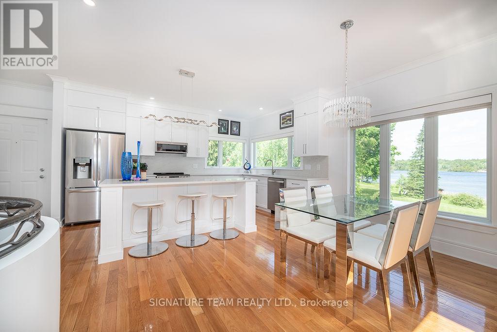 Welcome to an extraordinary executive waterfront estate set on over 6 acres of pristine, private land on sought-after Little Lake Clear in the heart of the Ottawa Valley. Just 10 minutes from Eganville, this exceptional property offers the perfect balance of luxury living and convenient access to amenities, all within a peaceful, natural setting.Designed for upscale living and effortless entertaining, the home features a bright open-concept layout with rich wood and tile flooring, soaring spaces, and an abundance of natural light. The stunning modern white eat-in kitchen is a true showpiece with sleek finishes and ample cabinetry The expansive living room is the centerpiece of the home, highlighted by a dramatic two-sided gas fireplace that flows seamlessly into a formal dining room ideal for hosting elegant gatherings. A serene four-season sunroom overlooks the water, offering breathtaking, uninterrupted views .This property delivers a true resort-style experience with an incredible indoor pool, 12-person hot tub, outdoor shower, and a cozy wood-burning fireplace-perfect for relaxation, wellness, and entertaining in every season. The fully finished walkout lower level offers two additional bedrooms, a spacious family room, full bath, and ample storage, making it ideal for guests extended family. Outdoors, the professionally landscaped grounds are simply stunning, showcasing perennial gardens, tranquil ponds, water features, and striking rock gardens that create a private oasis. A paved driveway, attached 2-car garage, and detached garage/workshop provide excellent functionality and space for all your recreational needs. Enjoy miles of boating directly from your dock, with access from Little Lake Clear into the larger lake system, making this a dream location for water enthusiasts. Whether you're entertaining, relaxing, or embracing the waterfront lifestyle, this remarkable property offers luxury, privacy, and an unparalleled connection to nature. (id:64974)