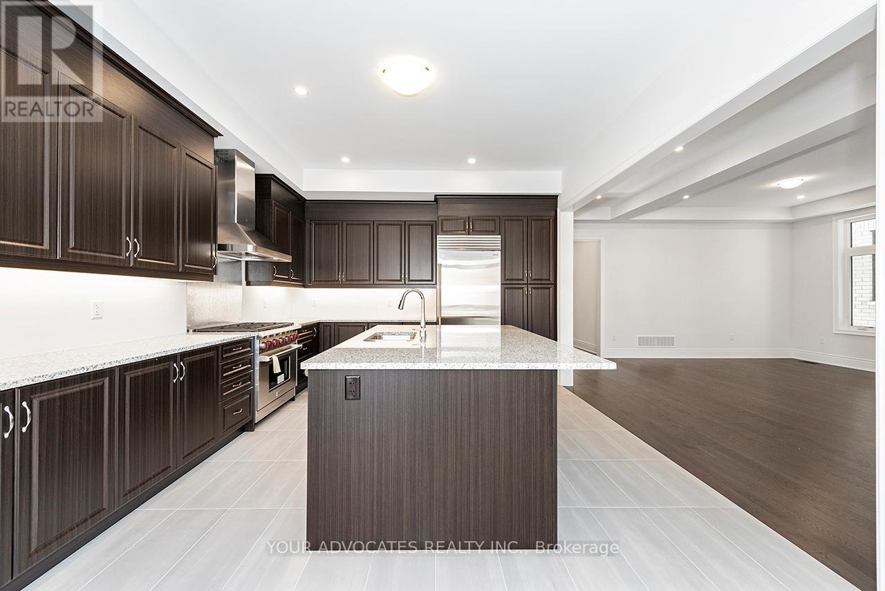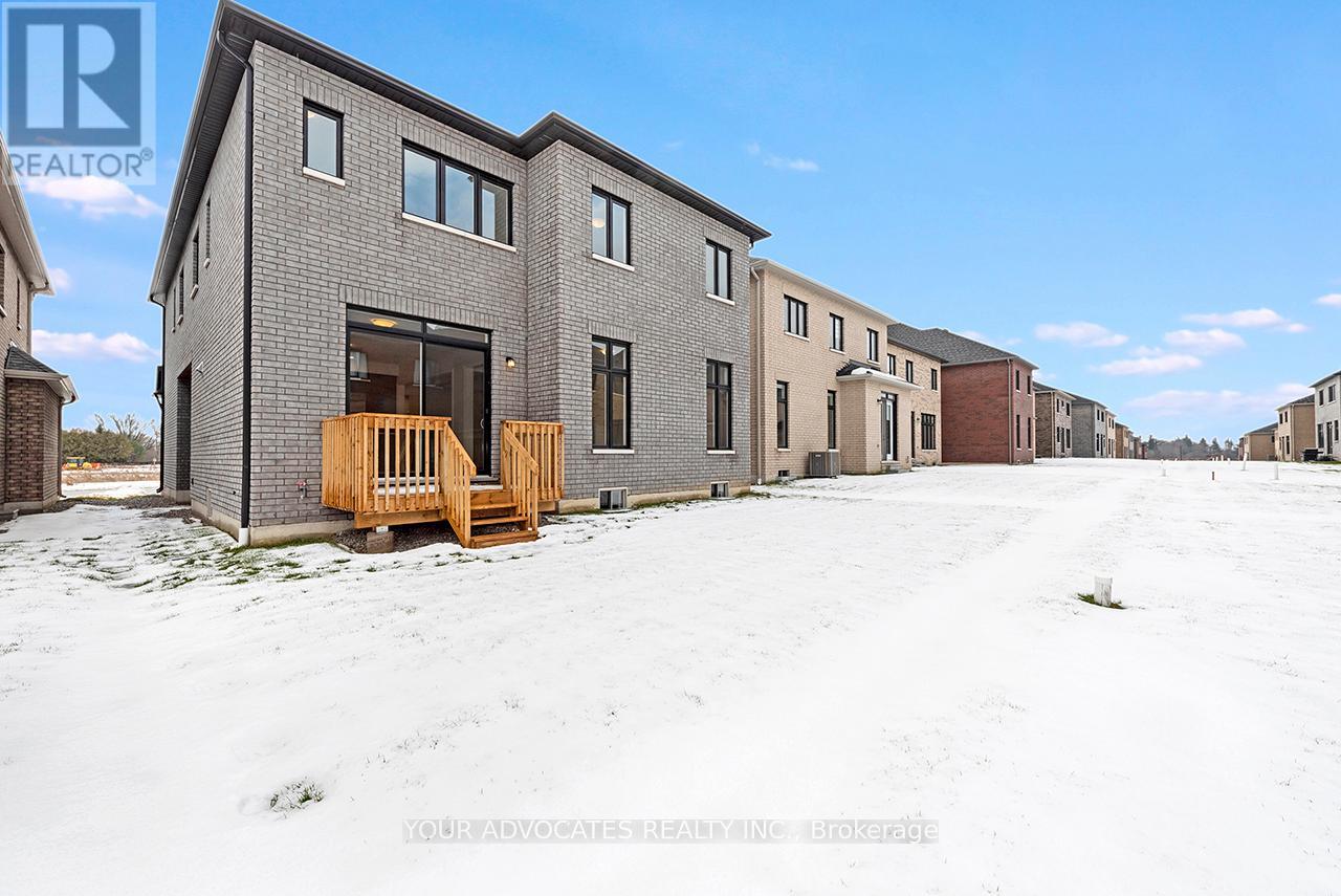 Brand new, never-lived-in detached 2-storey luxury home built by CountryWide Homes, offering approximately 4,272 sq ft of refined living space on a 114' deep lot. This stunning residence features 5 spacious bedrooms, each with its own ensuite, plus a rare main-floor guest suite with private bathroom and walk-in closet-ideal for extended family or multigenerational living. Thoughtfully designed layout includes 10' ceilings on the main floor, smooth ceilings throughout, stained oak staircase, and wide-plank engineered hardwood flooring on main and second levels. Chef-inspired kitchen boasts premium Sub-Zero, Wolf, and Cove appliances, large island, servery, and walk-in pantry. Separate side entrance with staircase to basement, cold cellar, and rough-in for future 4-piece basement bathroom offer excellent potential. Over $100,000 in upgrades and extras included. Tandem garage, 200-amp electrical service, capped gas line for future BBQ, and Tarion New Home Warranty. This home is a MUST see!! (id:64974)