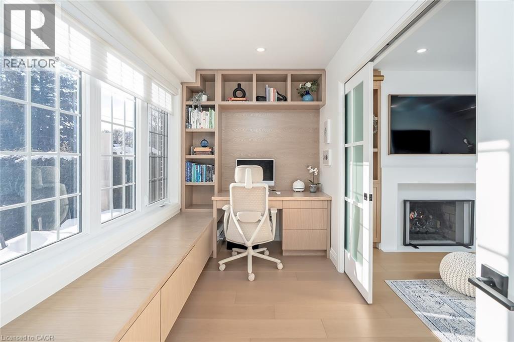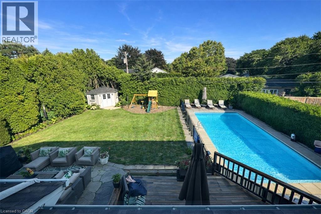 Welcome to Roseland, where mature streetscapes, top-tier schools, and a true sense of community define one of Burlington’s most desirable neighbourhoods. This beautifully updated home is move-in ready and designed for comfort, function, and effortless entertaining. With four spacious bedrooms and a dedicated main floor office, there’s room to grow, work, and unwind with ease. A rare standout feature is the presence of two separate main-floor family rooms, each with its own fireplace. A refined front sitting room, anchored by stunning custom-built-ins and a gas fireplace, offers an elegant place to gather, while the secondary family room provides a relaxed setting for movie nights and casual evenings. The layout creates seamless flow while still allowing everyone their own space to retreat. The finished basement extends the living experience even further, featuring a second office and a generous recreation area complete with a third, wood-burning fireplace - ideal for a theatre room, games space, teen retreat, or cozy winter nights by the fire. Step outside to a deep, level lot with ideal southern exposure, filling the backyard with natural sunlight throughout the day. The private in-ground pool transforms the space into your own summer retreat - perfect for entertaining, relaxing, and creating lasting memories. Extensive recent updates (all 2026 to 2022) include front porch improvements, a redesigned living room and office with custom built-in cabinetry, two gas fireplaces, basement renovation, backyard landscaping, a new shed and a pool fence. Pool pump, heater, and filter, and many additional thoughtful upgrades. Full details available. Situated within the highly regarded Tuck/Nelson, St. Raphael, and Assumption school districts, and just moments from the fantastic Roseland Park Country Club, this is a rare opportunity to secure a truly turnkey home in one of Roseland’s most coveted pockets. Move in, unpack, and enjoy. (id:64974)