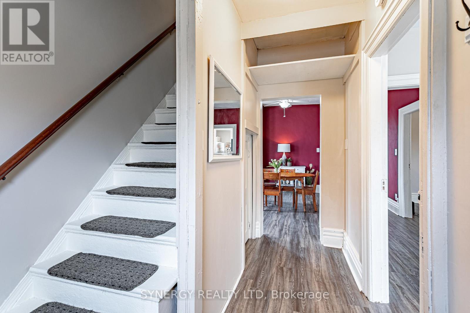 Discover the charm of this beautifully maintained century home in the heart of Sarnia. Offering 2+1 bedrooms, plus an adorable nursery for your wee one and 2 recently redone bathrooms, this home blends character with comfort. The main floor features inviting living spaces with original details, soaring ceilings and plenty of natural light. The kitchen has been redone with newer cabinets providing plenty to space to whip up a family diner to serve in the massive dining room making entertaining a breeze. The unfinished basement offers excellent potential for future finishing, storage, or a hobby space. Outside, enjoy a summer evening in the quaint , low-maintenance yard featuring a shady gazebo area for relaxing in the shade and still space for the kid's swing set not to mention the rare convenience of two laneways for parking. Located just steps from downtown shops, restaurants, beautiful Paul Blundy waterfront park and amenities, you'll love the walkable lifestyle this home provides. Full of warmth, this home is ready to welcome its next owner perfect for first-time buyers, young families, or anyone seeking a charming downtown gem. New Windows and exterior doors (2021) New On Demand combination boiler/water heater 2026. New Floor Flooring 2026 (Main Floor) (id:64974)