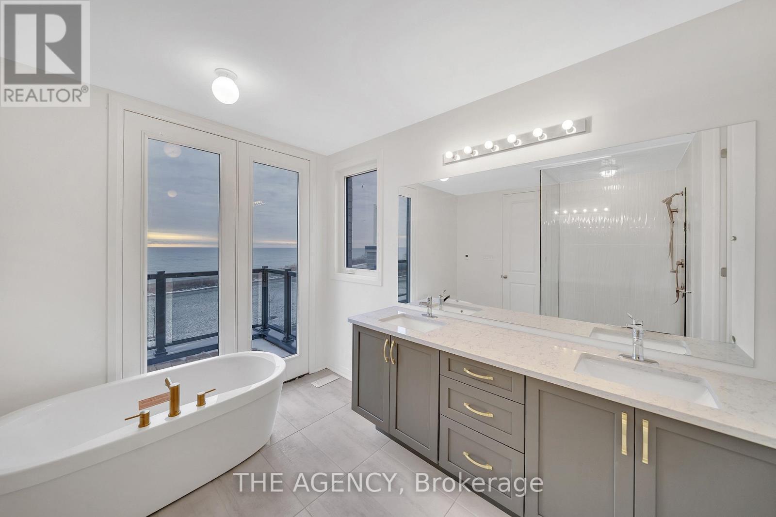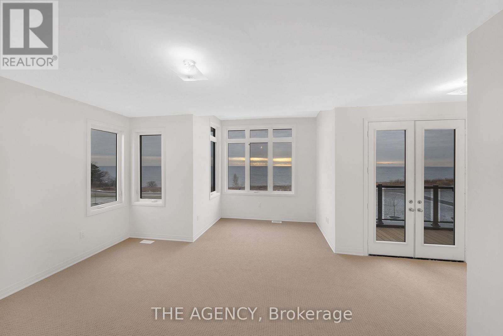 Welcome to 275 Port Darlington Road--the most premium lot in the neighbourhood! A rare corner location with breathtaking, unobstructed views of Lake Ontario from your private rooftop terrace and tranquil pond views from the side. This luxurious, beach-inspired, fully detached waterfront home offers over 4,100 sq. ft. of beautifully designed living space with 4+2 bedrooms, 6 bathrooms, a private in-home elevator, and 6 parking spots making it comfortable for everyday living and effortless entertaining. The open-concept main floor impresses with soaring 10'6" ceilings, creating an airy, sun-filled atmosphere perfect for relaxing, while the modern kitchen is equipped with built-in stainless steel appliances and blends seamlessly into the stylish living and dining areas. Each bedroom upstairs enjoys its own ensuite bath, with 9' ceilings adding to the sense of space and comfort. A convenient second-floor laundry room adds everyday ease. The finished walk-out basement includes a bedroom, full bath, and spacious recreational area--ideal for lounging with guests or a home gym. Located in a quiet, family-friendly community, you'll enjoy easy access to Port Darlington's scenic trails, beaches, parks, and marina, along with close proximity to HWY 401, shopping, and restaurants. This is a rare opportunity to own in one of GTA's final waterfront developments and enjoy the best of lakeside living. **Previous Photos Used; Sod Already Installed** (id:64974)