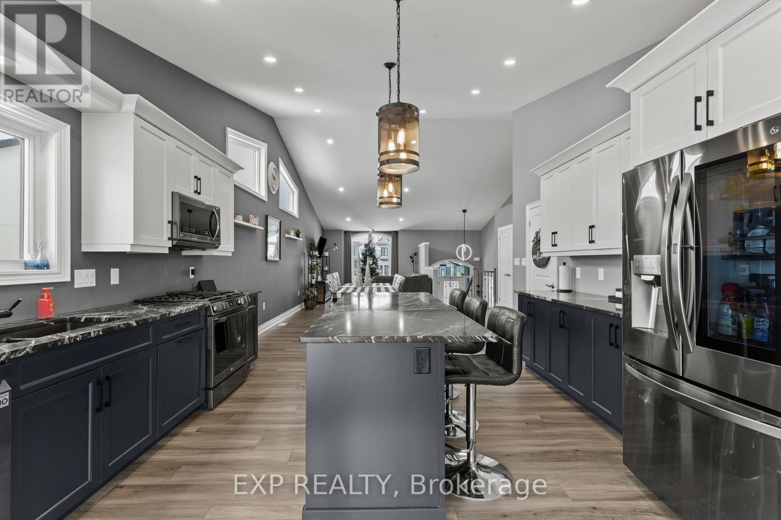 Your Next Chapter Starts Here in Black Creek! Tucked at the end of a quiet cul-de-sac on a pie-shaped lot, this 2022 raised bungalow delivers that "finally, THIS is the one" feeling the moment you pull up. Thoughtful design, modern finishes and a backyard built for summer fun make this home the perfect blend of comfort and style. Step inside and you're greeted by oak stairs with sleek wrought-iron accents, leading you to an open, airy living space flooded with natural light. Vaulted ceilings keep everything feeling bright and the generous living room easily fits your dream sectional without a squeeze. The dining area is ready for family dinners, dance parties and everything in between, while the kitchen steals the show with a sprawling over 7 foot island, black quartz counters, a walk-in pantry and high-end LG appliances. From here, patio doors take you out to a massive covered deck, providing an outdoor living room you can enjoy rain or shine. A few steps up, the private primary suite feels like its own retreat, featuring a spacious walk-in closet and an ensuite with a double vanity and beautifully tiled walk-in shower. Two additional bedrooms, a stylish 4-piece bath and a convenient laundry closet round out the main level. Downstairs, the basement features high ceilings with a separate entrance providing a blank canvas, awaiting your finishing touches. Outside, a fully fenced yard wraps around the pie shaped lot, giving you green space to play and an above-ground pool ready for those hot summer days. Situated in one of Black Creek's newer communities, this home is conveniently located with quick highway access and close to schools, parks, golf courses, restaurants, entertainment and scenic trails. This home offers the perfect blend of luxury, comfort and functionality. Don't miss the opportunity to make this exceptional home yours! Book your showing today! (id:64974)