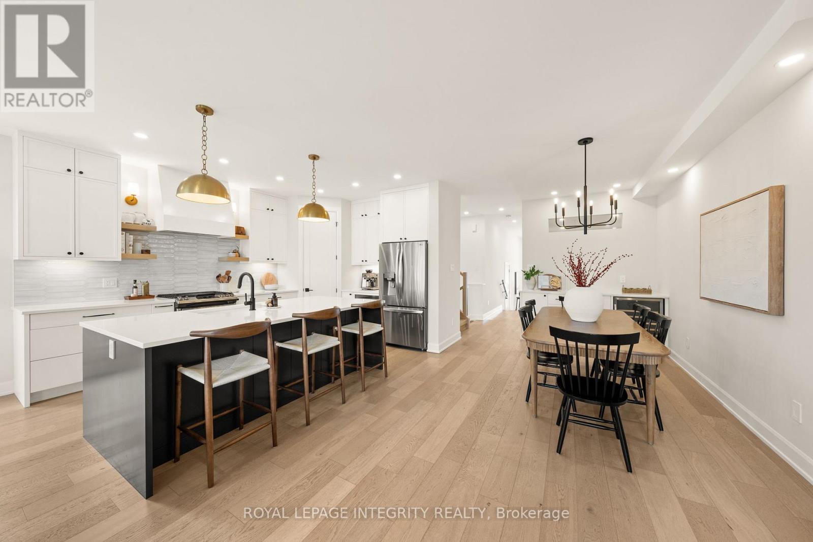Situated in the heart of Westboro Village and directly overlooking Clare Gardens Park, this exceptional 2022-built semi offers over 3,200 sq ft of beautifully finished living space and an oversized South facing backyard. Thoughtfully designed for modern living with future flexibility in mind, the home features a separate side entrance to the lower level which is fully roughed-in for a legal secondary dwelling - offering excellent potential for multi-generational living or rental income. The main floor is both functional and refined, featuring a dedicated home office, a generous walk-in foyer closet for clutter-free living, and a striking custom gas stone fireplace that anchors the family room. Wide-plank European oak flooring and Hunter Douglas blinds add warmth and texture throughout. At the heart of the home, the custom Deslaurier kitchen showcases quartz countertops, premium appliances, designer lighting, and a walk-in pantry complete with custom millwork. The adjacent dining area is enhanced by an oversized bar with built-in wine fridge - perfectly suited for entertaining.Upstairs, the primary retreat offers an oversized balcony with durable composite flooring and a spa-inspired ensuite with heated floors. Custom millwork continues throughout every closet, maximizing both function and style, while a full upper-level laundry room adds everyday convenience. The fully finished lower features high ceilings, a bright bedroom and full bathroom - well-suited for guests or future suite configuration. All just steps to Richmond Road's boutiques and cafés, the Ottawa River Pathway, and Westboro Beach - an exceptional opportunity in one of Ottawa's most sought-after neighbourhoods. Exterior wooden posts will be sanded & stained. Tarion warranty will transfer. Irregular lot (27 ft frontage, 35 ft at rear). Incredible sound-proofing between the properties. This wonderful home awaits its new owner! (id:64974)