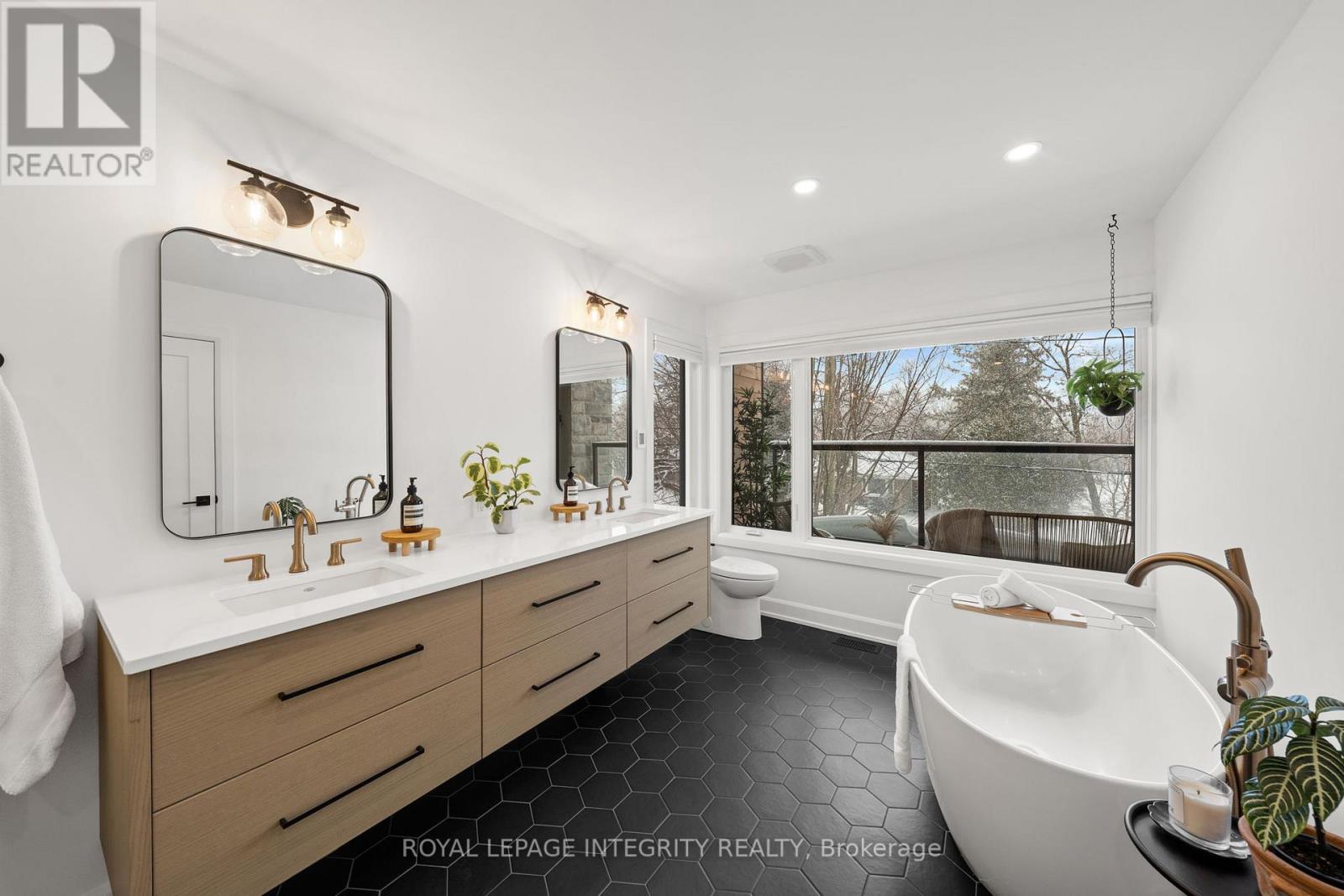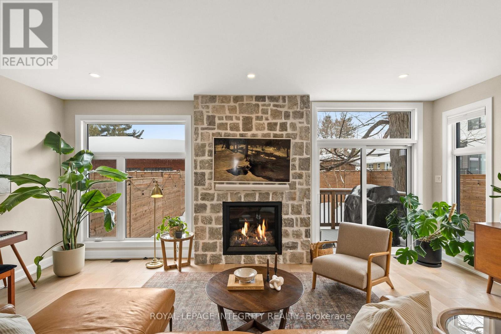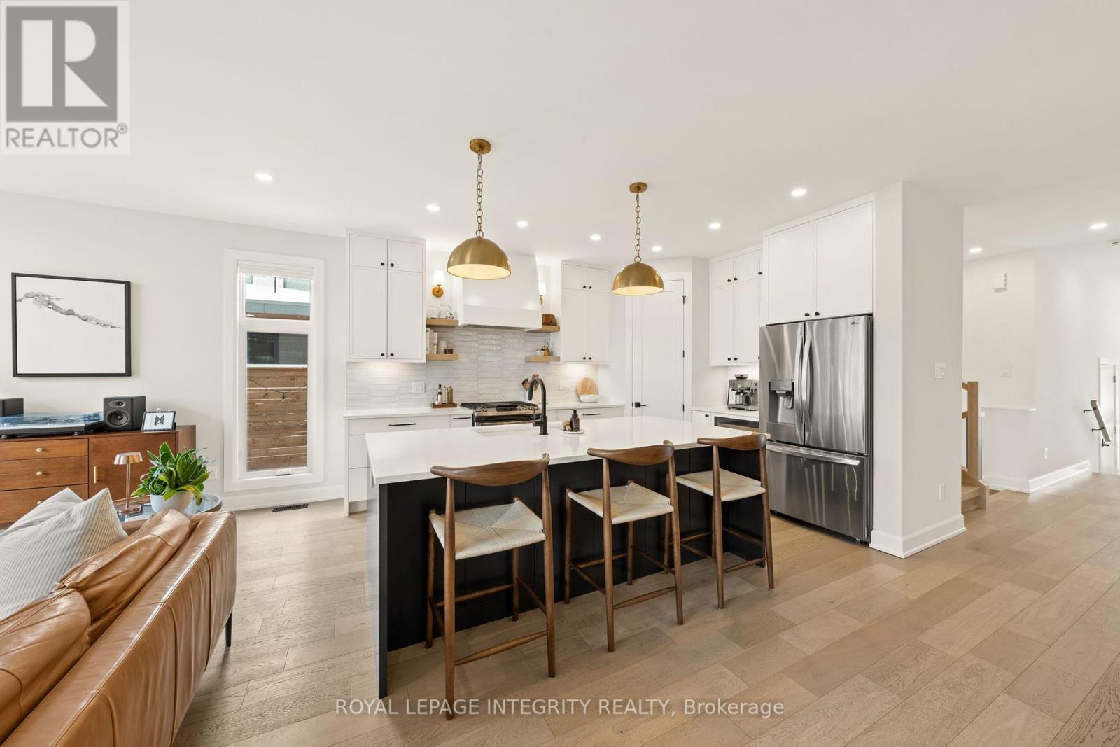 Situated in the heart of Westboro Village and directly overlooking Clare Gardens Park, this exceptional 2022-built semi offers over 3,200 sq ft of beautifully finished living space and an oversized South facing backyard. Thoughtfully designed for modern living with future flexibility in mind, the home features a separate side entrance to the lower level which is fully roughed-in for a legal secondary dwelling - offering excellent potential for multi-generational living or rental income. The main floor is both functional and refined, featuring a dedicated home office, a generous walk-in foyer closet for clutter-free living, and a striking custom gas stone fireplace that anchors the family room. Wide-plank European oak flooring and Hunter Douglas blinds add warmth and texture throughout. At the heart of the home, the custom Deslaurier kitchen showcases quartz countertops, premium appliances, designer lighting, and a walk-in pantry complete with custom millwork. The adjacent dining area is enhanced by an oversized bar with built-in wine fridge - perfectly suited for entertaining. Upstairs, the primary retreat offers an oversized balcony with durable composite flooring and a spa-inspired ensuite with heated floors. Custom millwork continues throughout every closet, maximizing both function and style, while a full upper-level laundry room adds everyday convenience. The fully finished lower level features high ceilings, a bright bedroom and full bathroom, and is fully roughed-in for a secondary dwelling unit - well-suited for guests or future suite configuration. All just steps to Richmond Road's boutiques and cafés, the Ottawa River Pathway, and Westboro Beach - an exceptional opportunity in one of Ottawa's most sought-after neighbourhoods. Exterior wooden posts will be sanded & stained. Tarion warranty will transfer. Irregular lot (27 ft frontage, 35 ft at rear). Incredible sound-proofing between the properties. This wonderful home awaits its new owner! (id:64974)