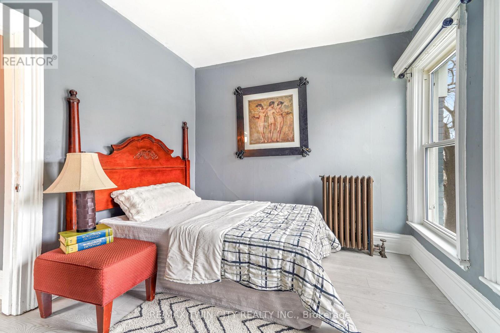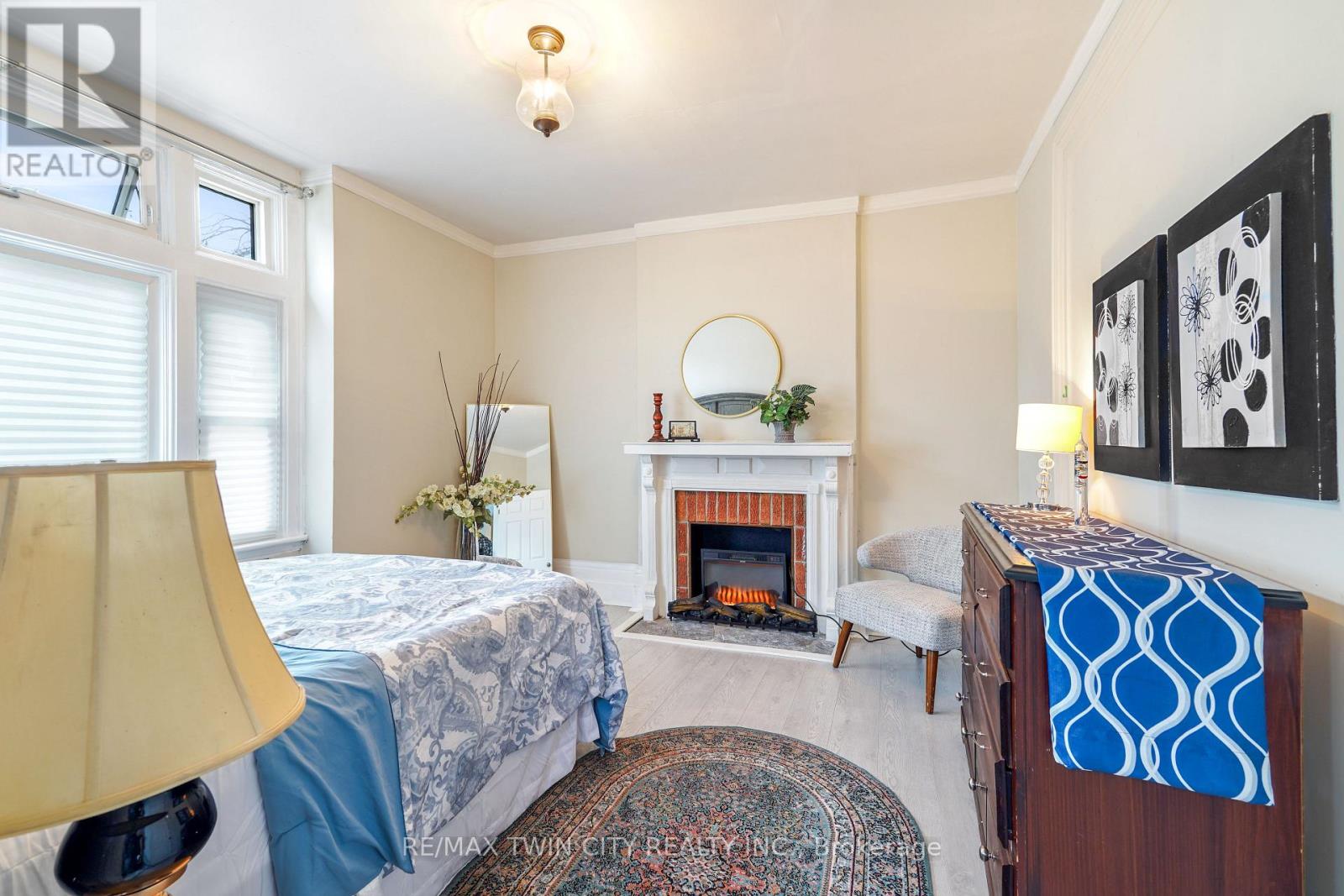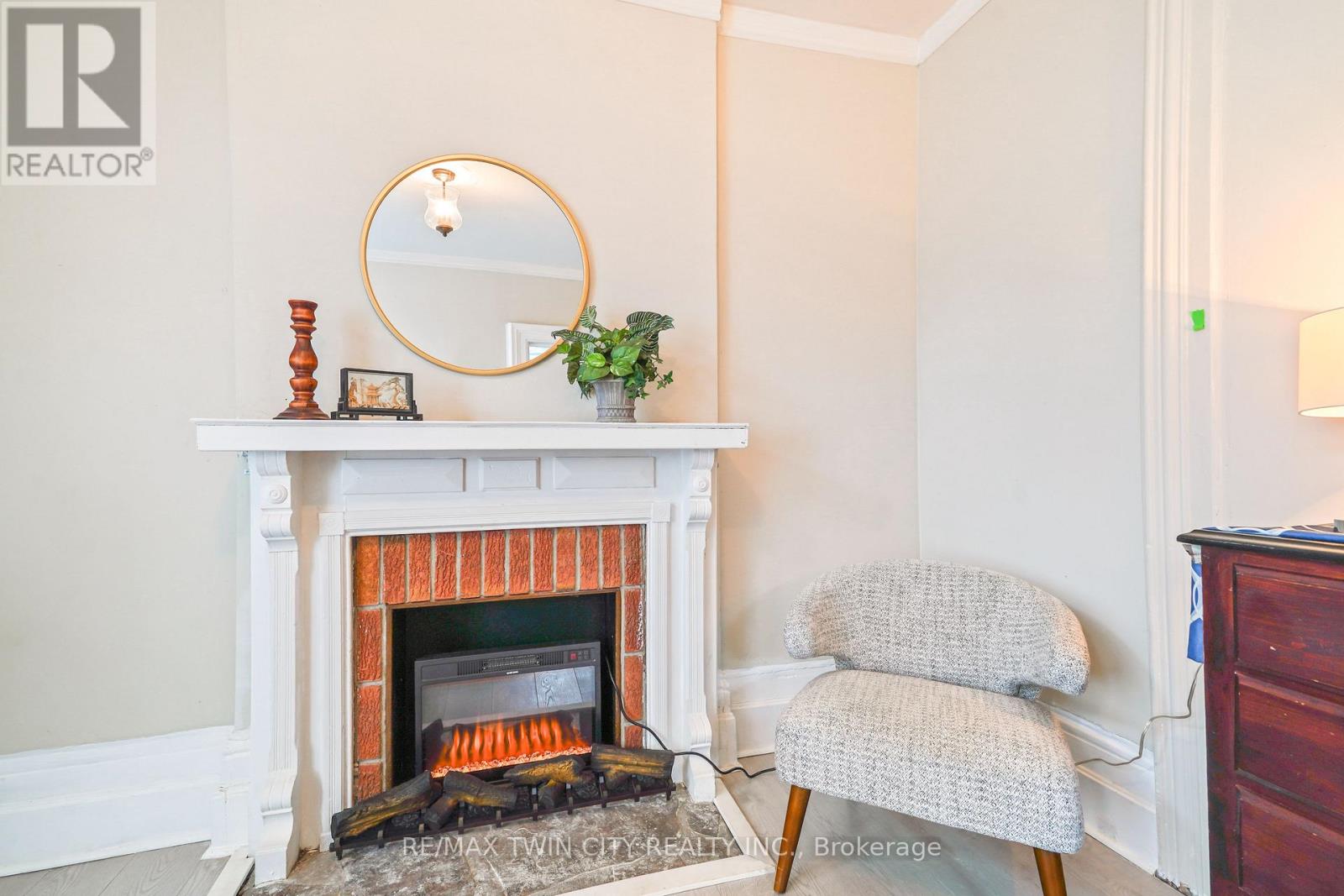 Perfect Opportunity for First-Time Buyers & Savvy Investors! Welcome to this charming all-brick 2-storey home ideally located just a short walk to downtown Brantford and Wilfrid Laurier University-making it an excellent option for homeowners, students, or rental income potential. This spacious 3+1 bedroom, 2 bathroom home offers a flexible layout to suit a variety of lifestyles. The main floor features a bright and inviting living room with high ceilings and crown moulding, creating a warm and welcoming space to relax or entertain. A main floor bedroom with a decorative fireplace adds character and versatility-perfect for guests, a home office, or rental use. The eat-in kitchen provides ample space for everyday living, while the adjoining den offers additional room for entertaining or study space. Upstairs, you'll find generously sized bedrooms filled with natural light, ideal for families or shared accommodations. Recent updates including fresh paint and easy-care laminate flooring throughout make this home move-in ready while still offering room to add your own personal touch. Step outside to enjoy a private backyard with a covered porch-perfect for morning coffee or quiet evenings. The property also includes convenient driveway parking. Situated on a transit route and just steps to parks, schools, churches, shopping, and the downtown core, this location is unbeatable for accessibility and lifestyle. Whether you're looking to get into the market or expand your investment portfolio, this property offers incredible value, space, and potential in a prime location. Don't miss this opportunity! Book a viewing for this lovely home! (id:64974)