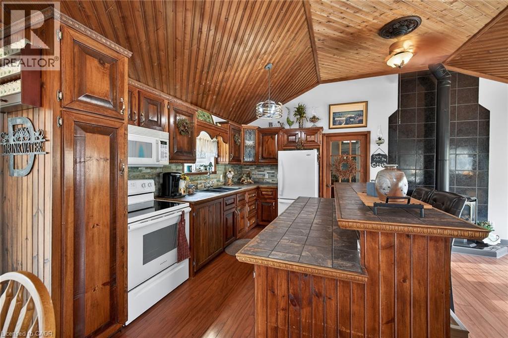 Welcome to 277 Bluewater Parkway! A stunning, beautifully updated Bungalow with partial Lakeview’s situated on sought after 100’ x 100’ lot. Great curb appeal with vinyl sided exterior, circular driveway with ample parking, expansive deck with gazebo area which makes it the perfect entertaining spot, fire pit, & oversized shed providing ample storage. The flowing, open concept interior layout features valuated ceilings throughout, eat in kitchen with updated cabinetry, raised breakfast bar & stylish backsplash, dining area with patio door walk out to back deck, spacious living room with freestanding gas fireplace, large primary bedroom, & 4 pc bathroom with granite countertops & stacker washer / dryer combo. Extensively updated in 2010. Minutes to beaches, Selkirk Provincial Park & local amenities, Hoover’s Marina, & Port Dover. Rarely do turn key – move in ready properties come available in the price range. Ideal for the first time Buyer, those looking to downsize, or perfect cottage retreat. Experience the Lake Lifestyle! (id:64974)