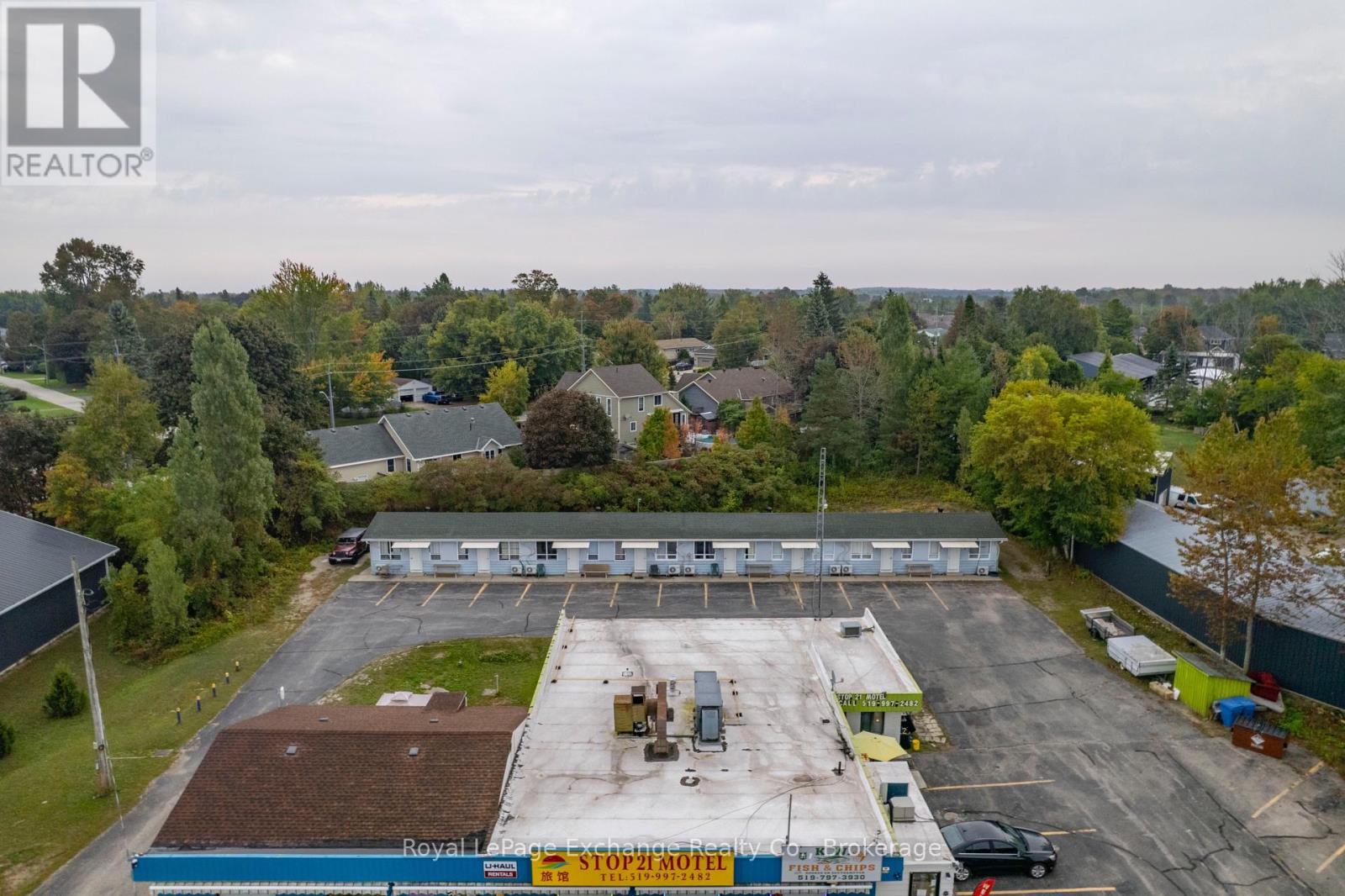 Highway Commercial Opportunity | Motel + Restaurant + Residential Units | 1 Acre Lot. Turnkey HC investment on 1 acre in the heart of Saugeen Shores. This property offers multiple income streams: a motel with independent heat pumps (4 units with kitchenettes, 8 Studio Units + full basement with laundry potential), plus a main building with 4 separate units: Unit 1; motel check-in office, Unit 2; 2-bedroom apartment, Unit 3; 4-bedroom apartment, and Unit 4; restaurant with full basement. High-visibility frontage on Hwy 21 ensures consistent traffic flow and being top of mind with customers. With Saugeen Shores ranked as one of Ontarios fastest-growing communities, demand is fueled by Bruce Powers ongoing expansion and the areas popularity with retirees and seasonal residents. A rare opportunity to own, operate, or expand in a thriving market! (id:64974)