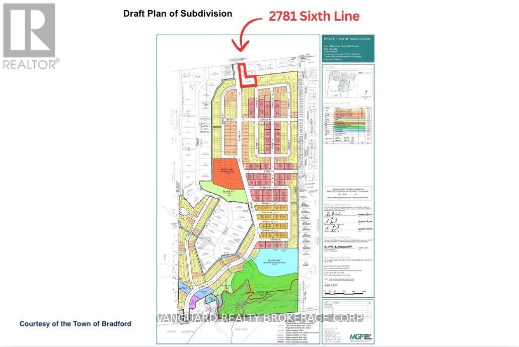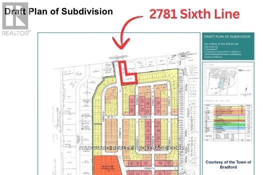 A prime investment opportunity to acquire 1.631 acres of land located at the main entrance of Bradford's largest upcoming residential subdivision with 998 homes, the Bradford Highlands(former Bradford Highlands Golf Course). This exceptional corner lot boasts over 110 feet of frontage on Sixth Line and over 427 feet along the future main entrance of the subdivision,offering high visibility and exposure. Strategically positioned within a rapidly growing community, this property presents endless potential for future development, including commercial use, a small plaza, gas station, or residential projects (subject to approvals). With ongoing residential expansion and a surging local population, this parcel offers outstanding potential for investors and developers seeking to establish a presence in one of Bradford's most desirable growth areas.Its size, location, and direct adjacency to new subdivision lands make it a valuable long-term addition to any real estate portfolio. A 5 bedroom, 2-storey home with over 2,300 sq. ft. of above-ground living space adds further value to the property ideal for rental income or as a comfortable residence while capitalizing on future development potential. (id:64974)