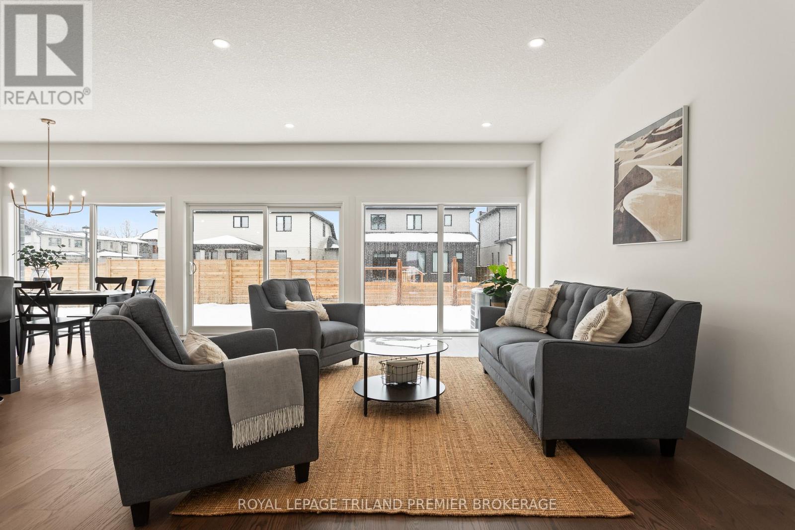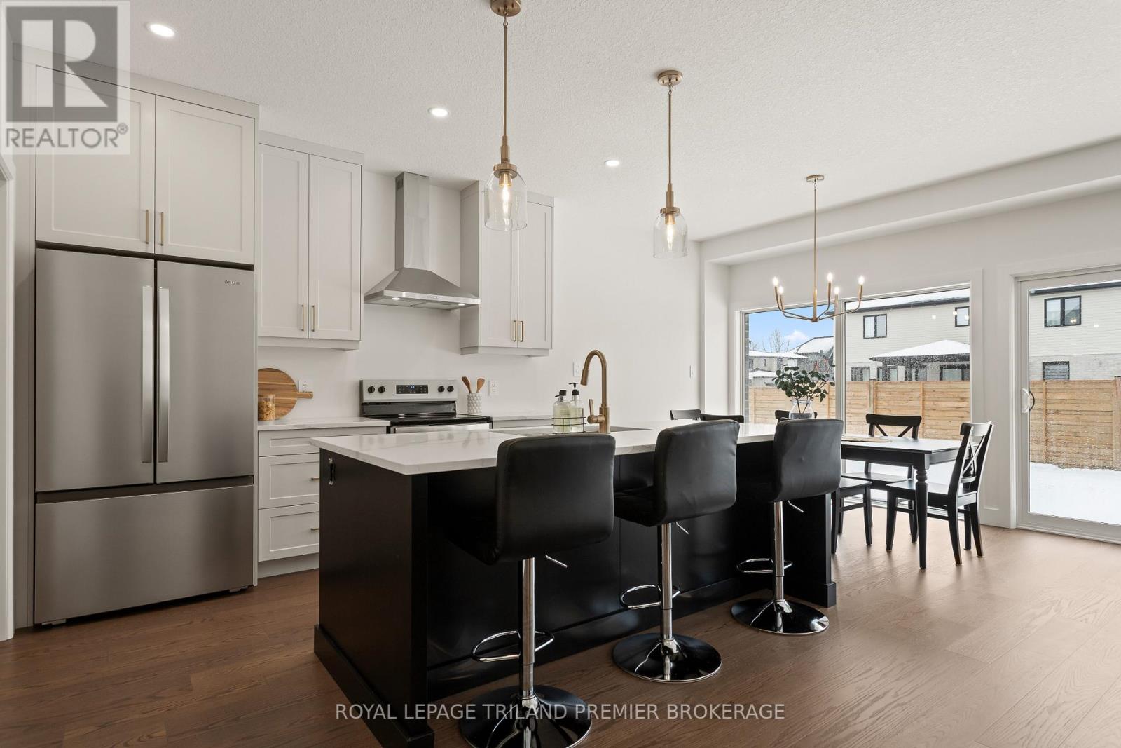 NEWLY CONSTRUCTED AND MOVE IN READY! Hazzard Homes presents The Kerry, featuring 2366 sq ft of expertly designed, premium living space in desirable Foxfield subdivision. Enter through the double front doors through to the bright open concept main floor featuring Hardwood flooring throughout main level; staircase with black metal spindles; kitchen with custom cabinetry, quartz/granite countertops, island with breakfast bar, stainless steel chimney style range hood, stainless steel appliances and pantry with sink and cabinetry; expansive bright great room with 7' high windows/patio slider; generous mudroom; and convenient bright den. There are 4 bedrooms on the second level including primary suite with 5-piece ensuite (tiled shower with glass enclosure, quartz countertops, double sinks) and walk in closet; convenient second primary suite and 3rd and 4th bedrooms sharing a Jack and Jill bathroom. Hardwood flooring on upper hallway and wooden staircase. The expansive unfinished basement haas a separate entrance and is ready for your personal touch/development. Other features include: Hardwood flooring throughout main level, 9' ceilings on main level, poplar railing with black metal spindles, under-mount sinks, pot lights, upgraded lighting, rough-ins for security system, rough-in bathroom in basement, A/C, paver stone driveway and path to front door and more! Other lots and plans to choose from. (id:64974)
