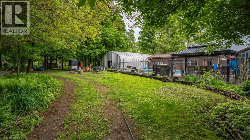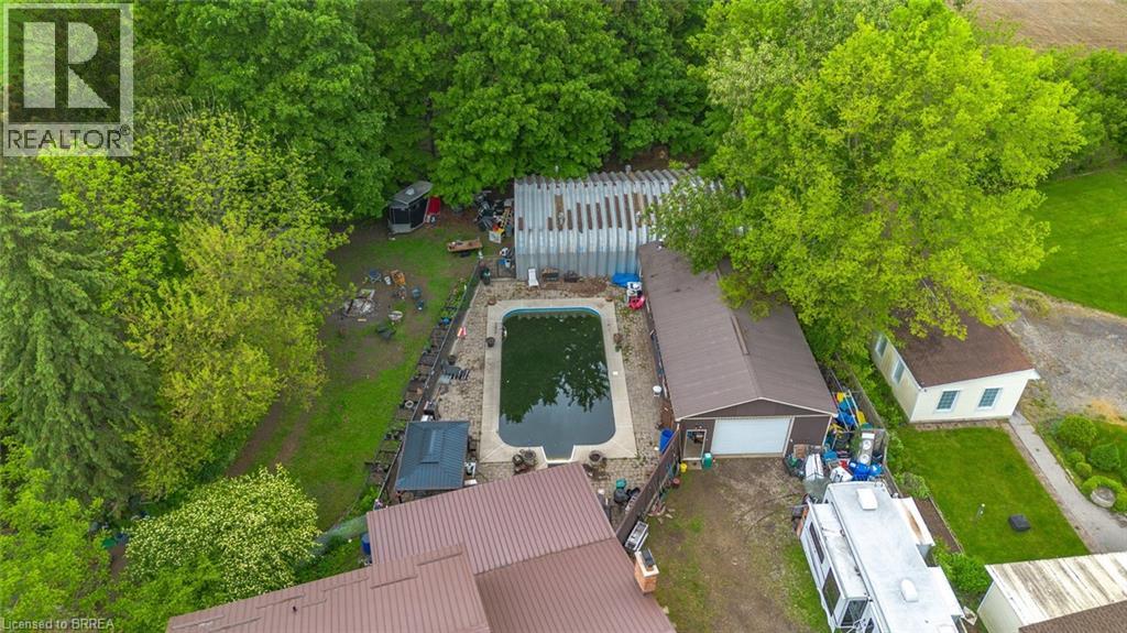 Welcome to 279 Cockshutt Road in Brantford — a charming and spacious 2-storey home nestled on a beautifully landscaped 0.92-acre lot in a tranquil rural setting. This property offers approximately 3,507 sq ft of living space, including 3 bedrooms and 2 full bathrooms, making it perfect for families or multi-generational living. The main floor features blonde hardwood and tile flooring, a bright and inviting layout with a formal living room, a cozy family room with wood burning fireplace, a separate dining area, and a well-appointed kitchen filled with natural light and ample cabinetry. Upstairs, you'll find 3 bedrooms and 2 full bathrooms, while the partially finished basement offers flexible space for a rec room, office, or additional guest quarters with a walk-up back entrance. Outside, enjoy the peaceful surroundings, mature trees, and a large yard, covered porch with bar and hot tub, and oversized in-ground pool ideal for entertaining or relaxing. The home also includes a heated detached 6-car garage, additional large insulated/ heated Quonset, and parking for 10+ vehicles. Recent updates include roof shingles (2016) and a natural gas forced-air heating and central A/C system. With a private well and septic system, this home offers self-sufficient living just minutes from Brantford’s conveniences, schools, and highways. Zoned residential and located near the corner of Cockshutt Road and Campbell Farm Road, this property is a rare opportunity to enjoy country living with modern comforts. (id:64974)